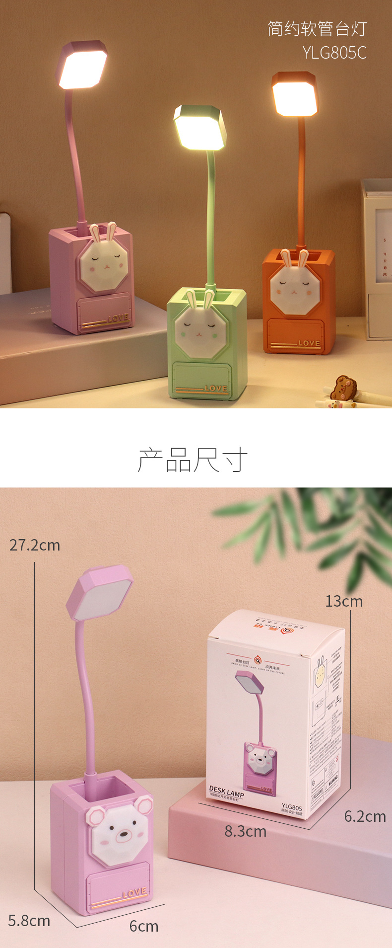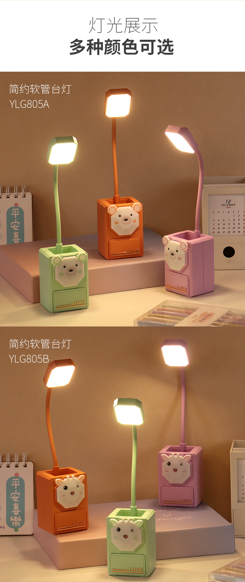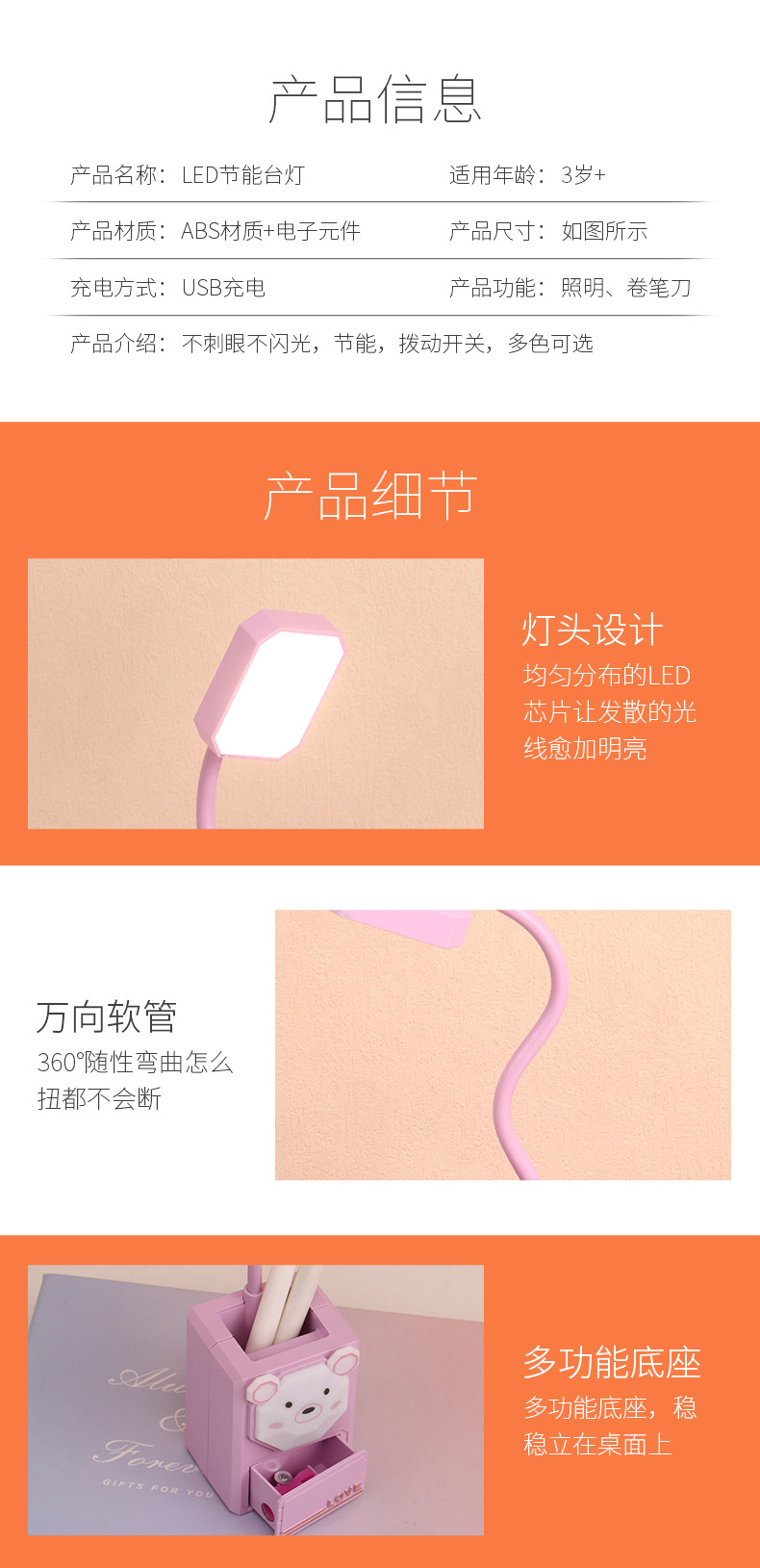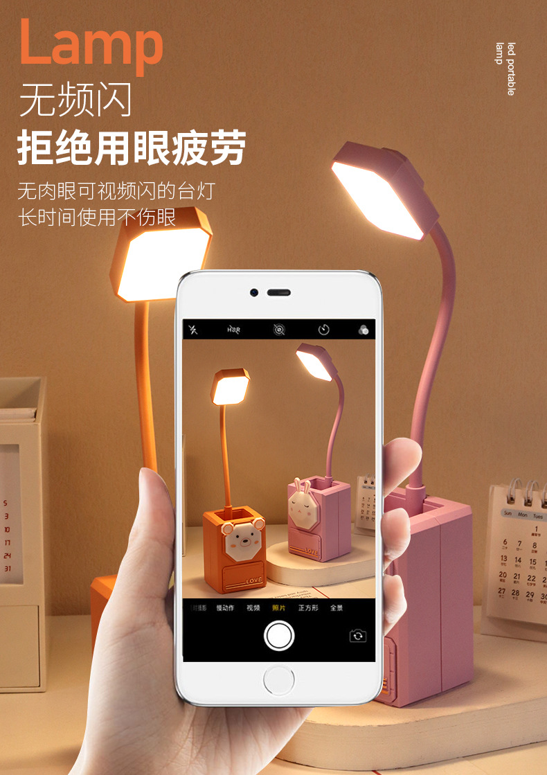多功能卡通LED护眼小夜灯USB充电台灯学生文具小摆件铅笔削小台灯