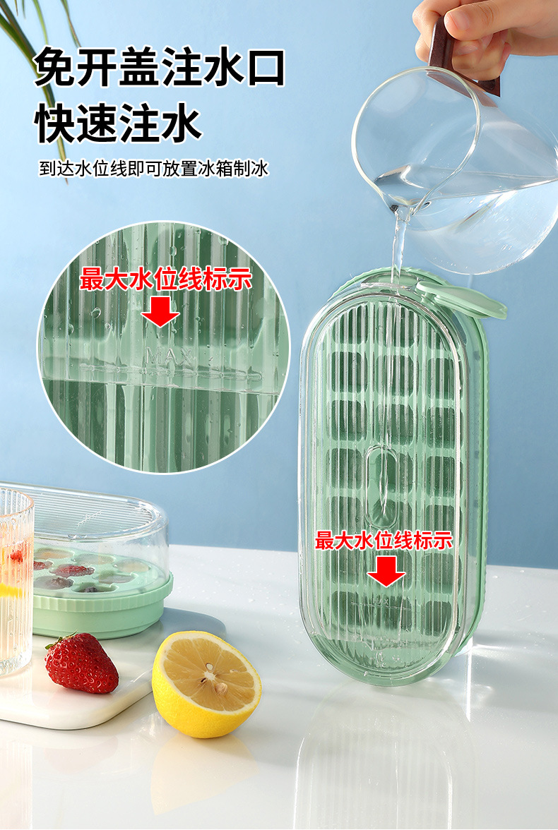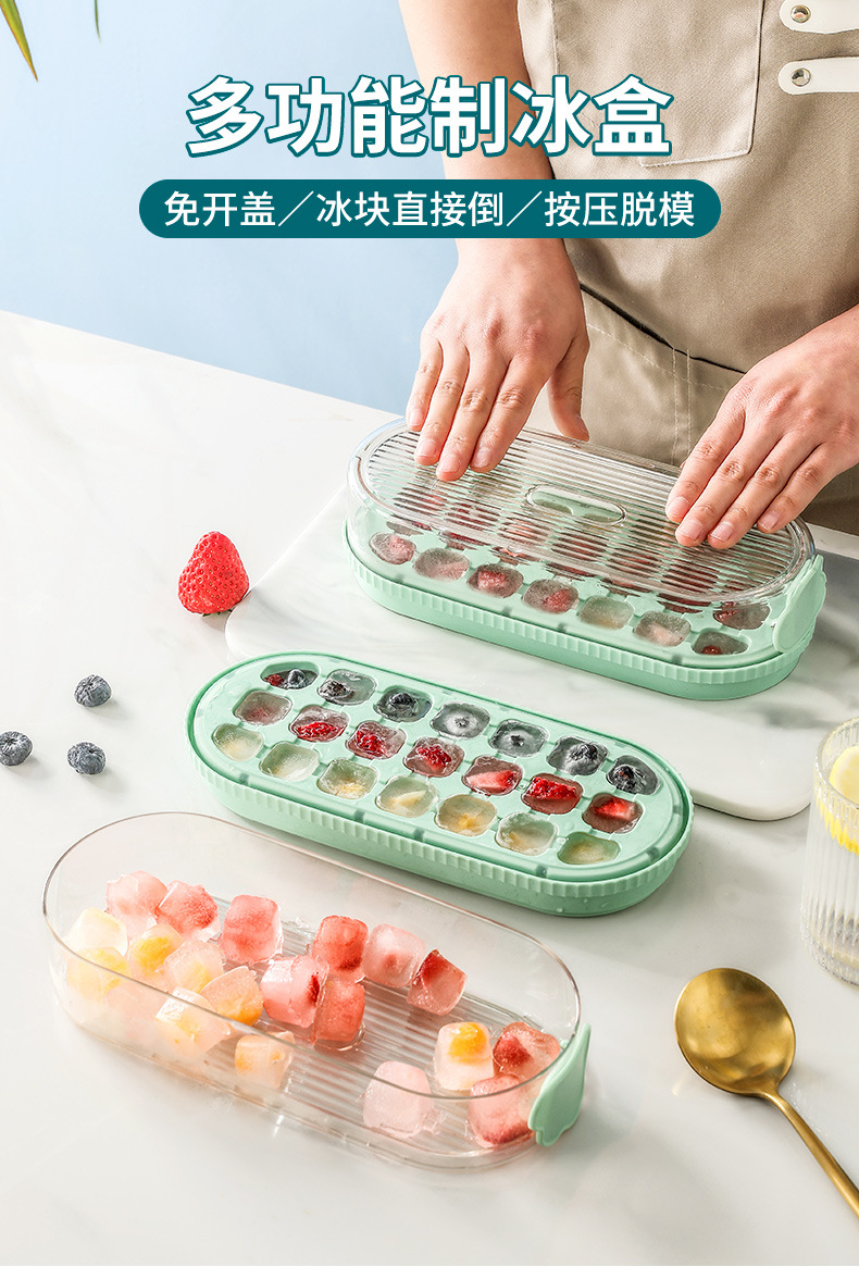 塑料冰格冰块模具食品级按压冰格家用制冰盒带盖易脱模冻冰块神器