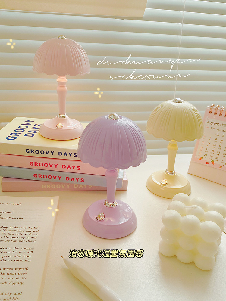 可爱纽扣电池奶油胶DIY手工水母台灯ins少女心浪漫卧室小夜灯礼品