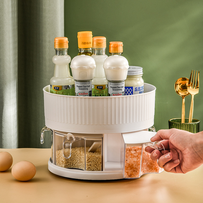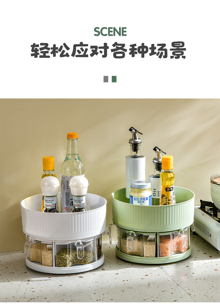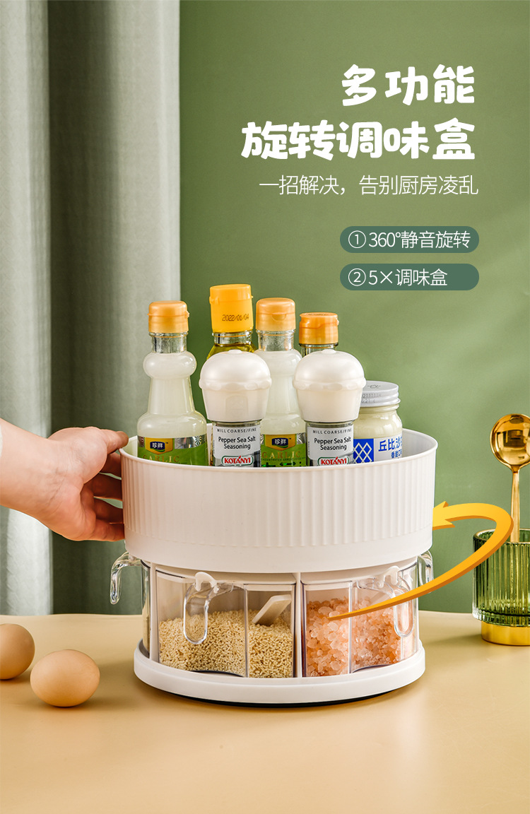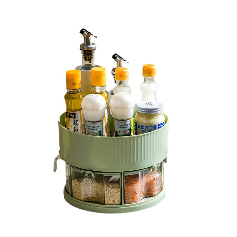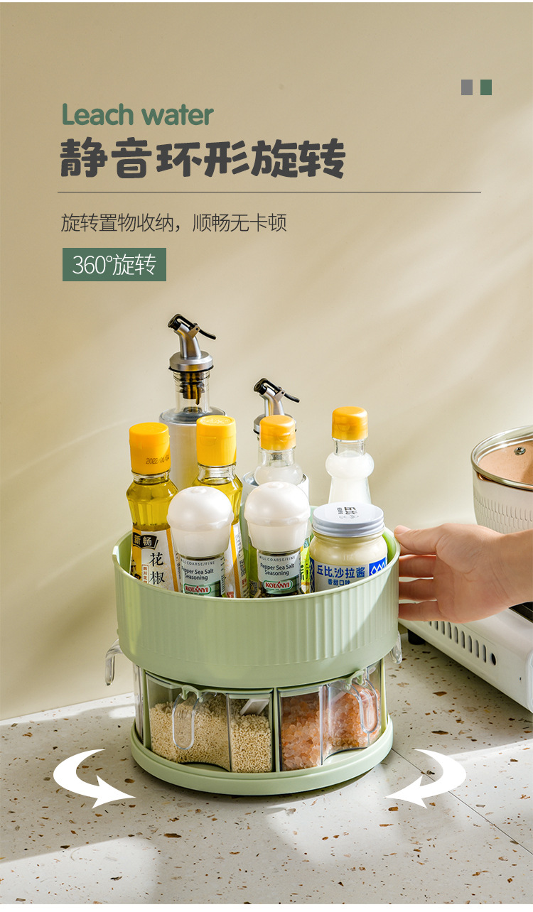 厨房收纳多功能旋转置物架双层透明调味料调料盒用品家用置物转盘