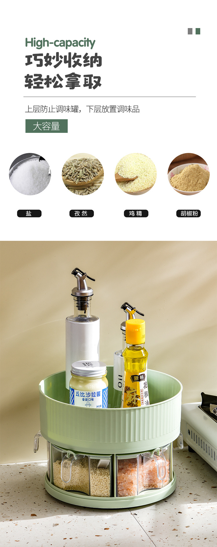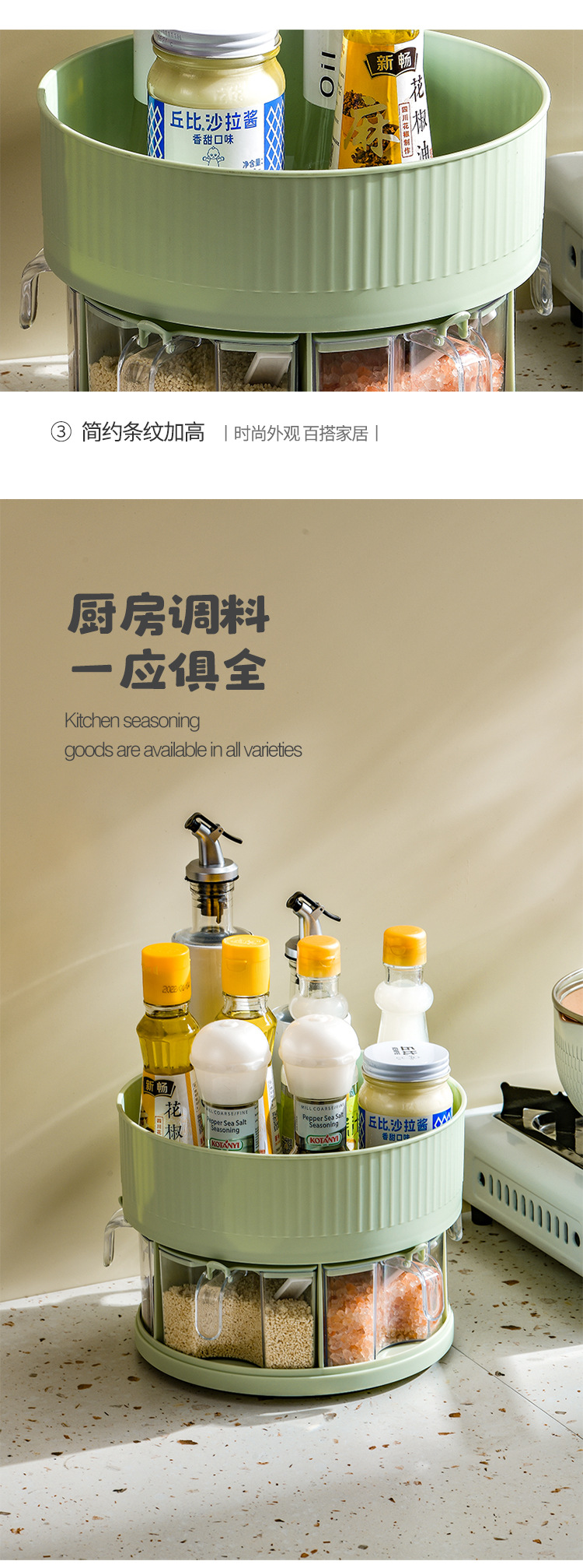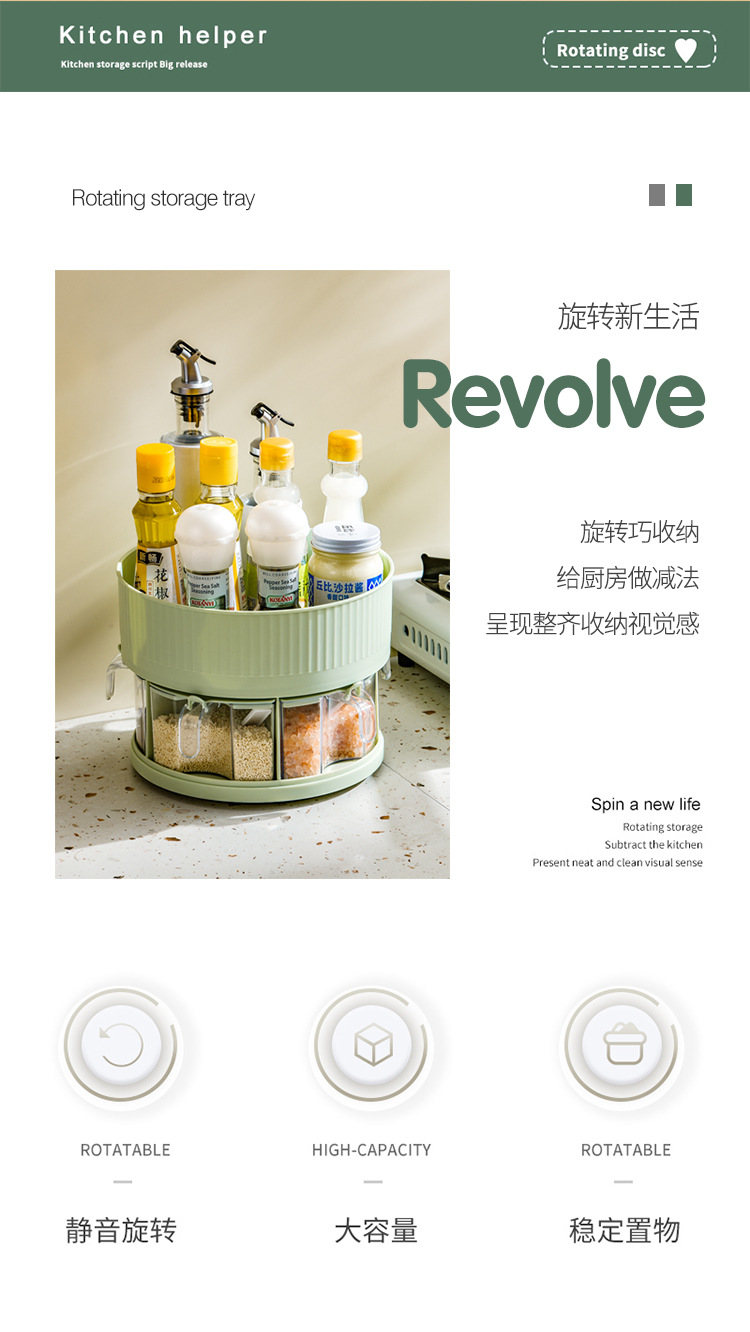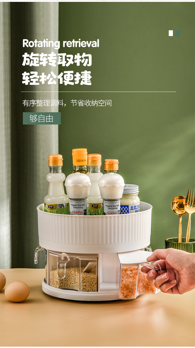 厨房收纳多功能旋转置物架双层透明调味料调料盒用品家用置物转盘