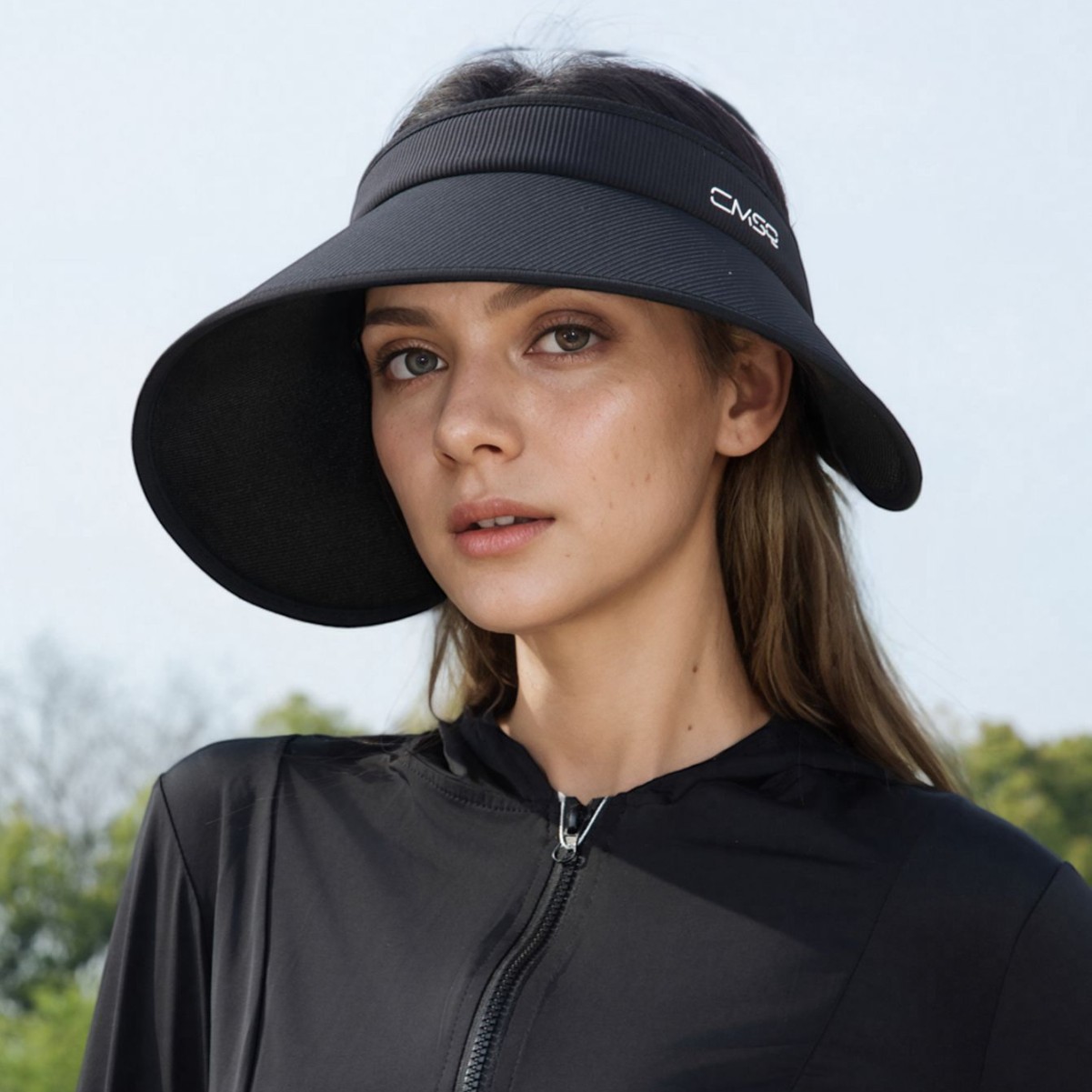 户外大檐防晒帽新款折叠女通勤百搭空顶黑胶太阳帽防紫外线帽子