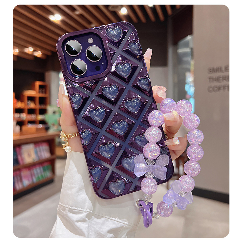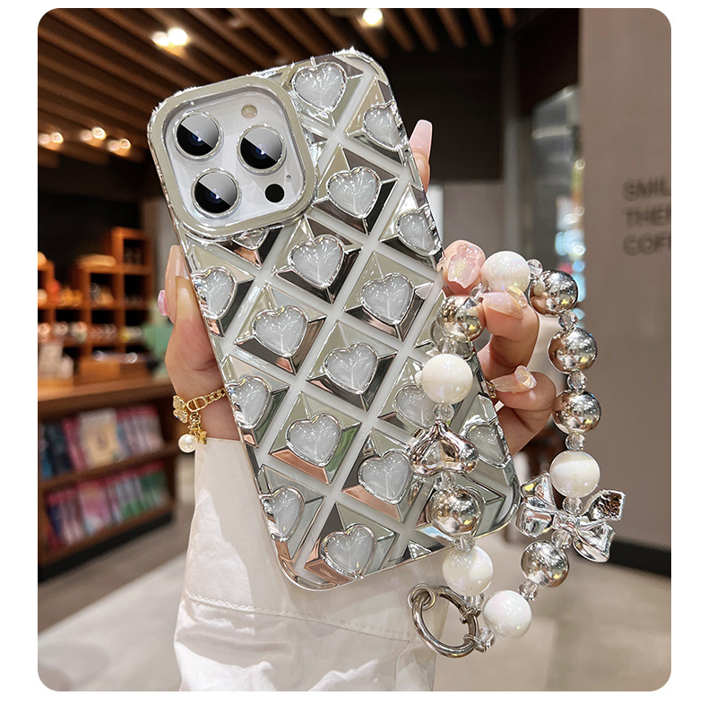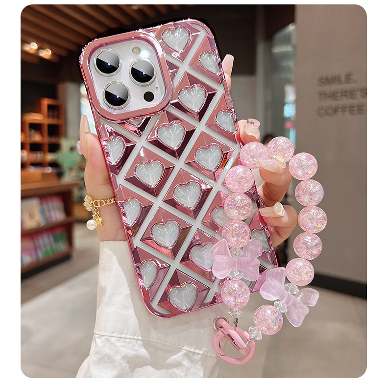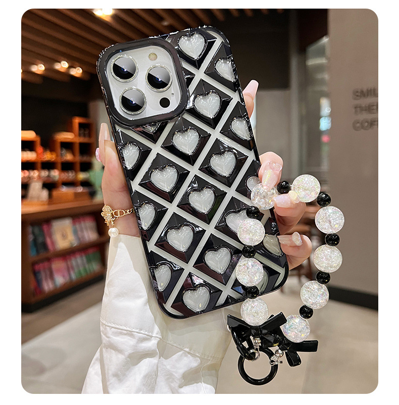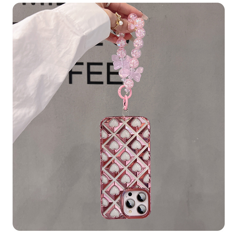 爱心镂空适用苹果14promax手机壳iphone15硅胶13全包手链12简约新