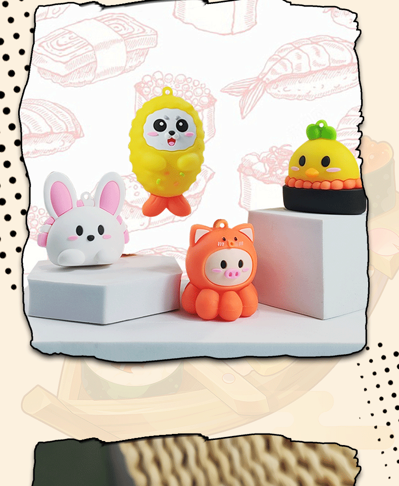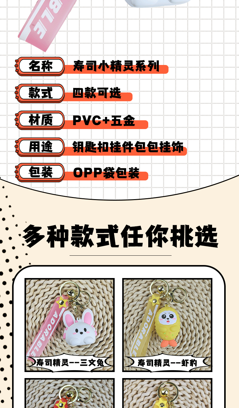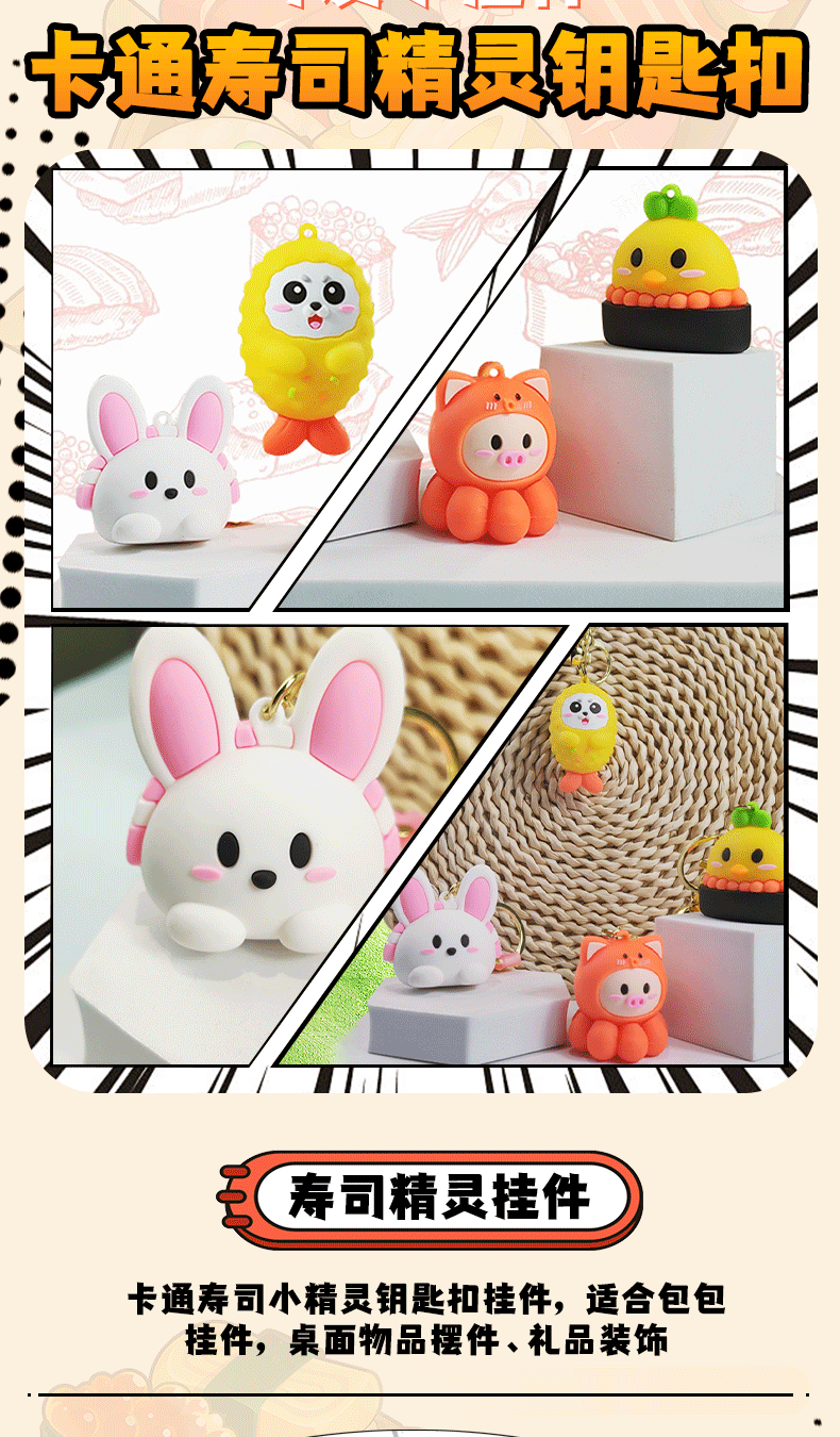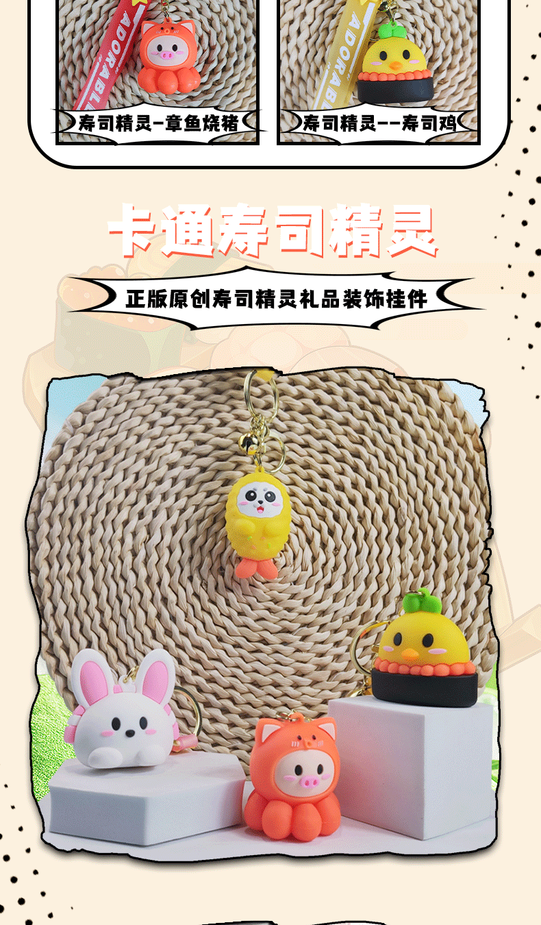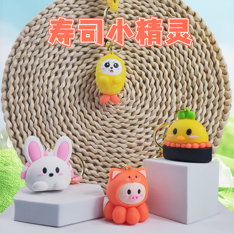 原创寿司小精灵PVC钥匙扣可爱包包挂件桌面小摆件钥匙挂件定