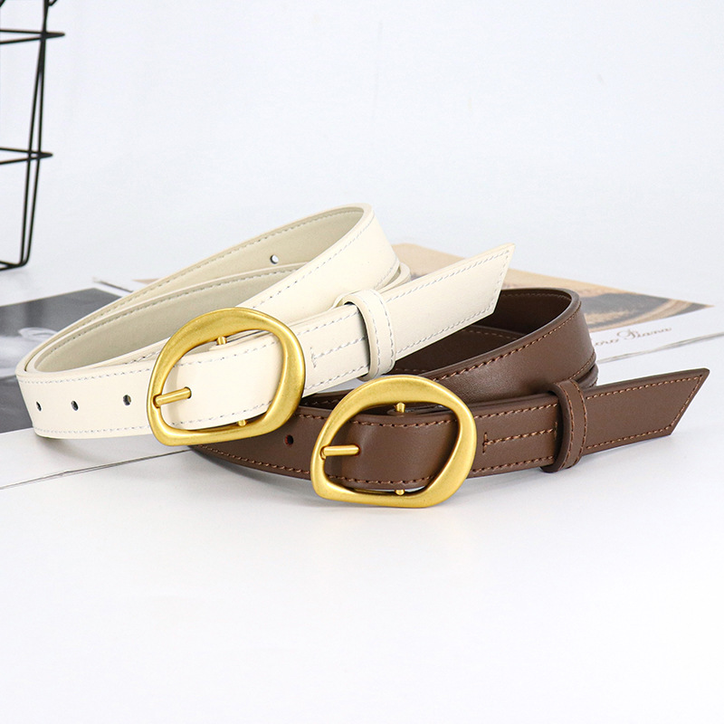 2024秋上新金色合金针扣女士皮带搭配正装短裙牛仔裤女腰带