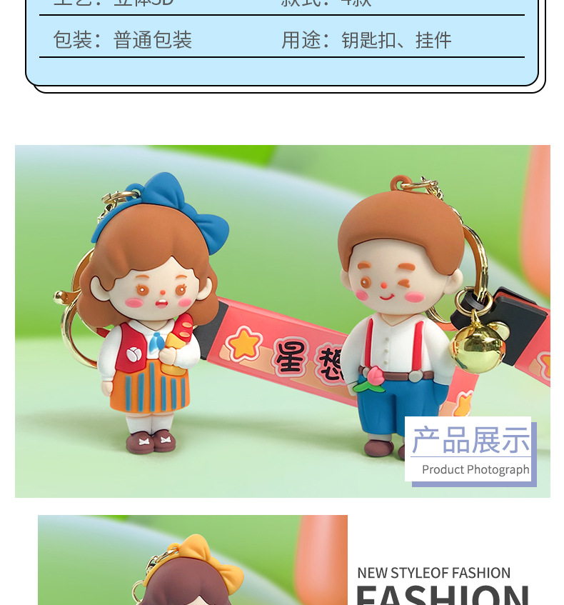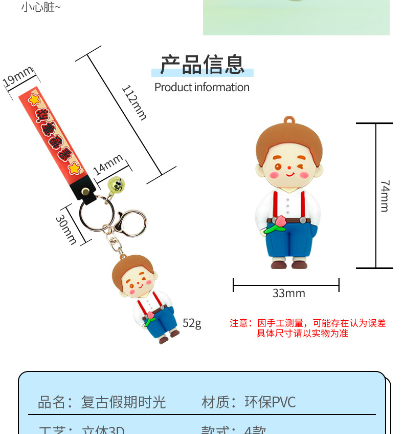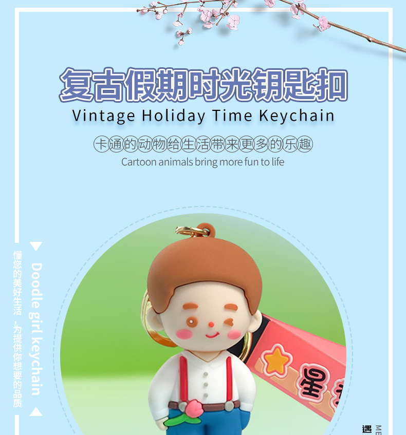 原创可爱复古假期时光滴胶PVC钥匙扣车载挂件广告福利礼品批发
