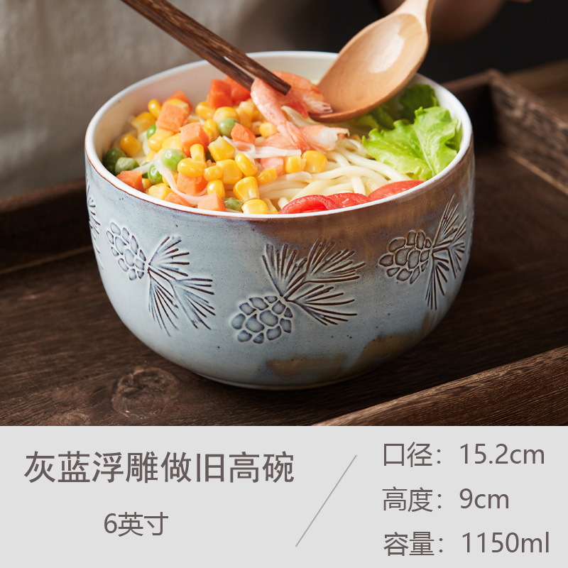 创意复古做旧6寸陶瓷碗家用汤面早餐碗菜碗泡面碗沙拉学生宿舍碗