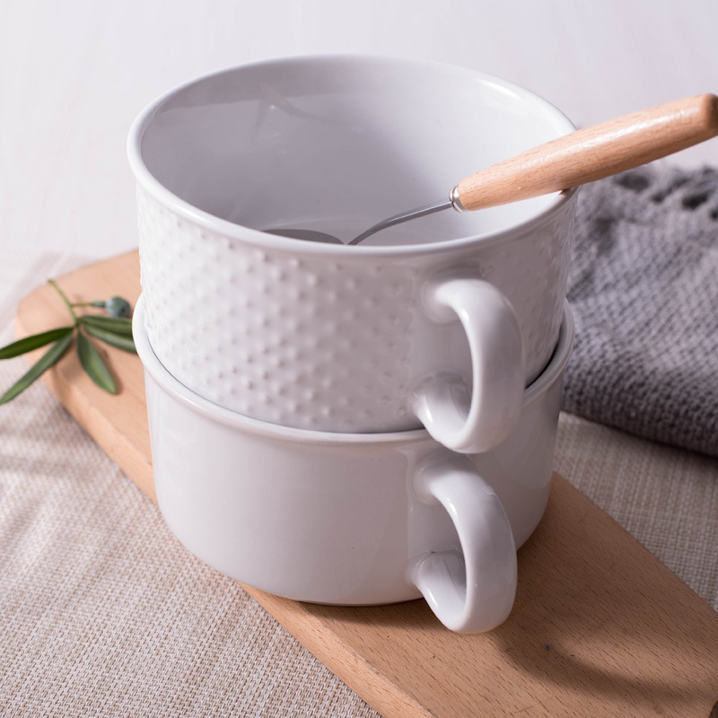 创意陶瓷汤杯早餐牛奶杯泡粥燕麦杯大容量创意杯碗家用带柄碗汤碗