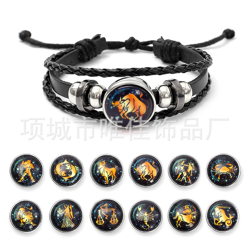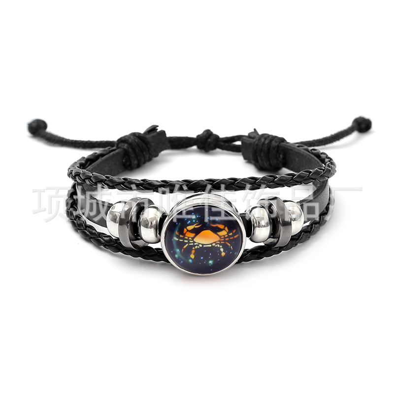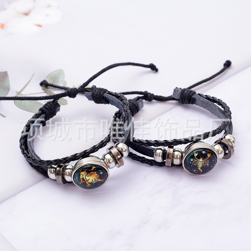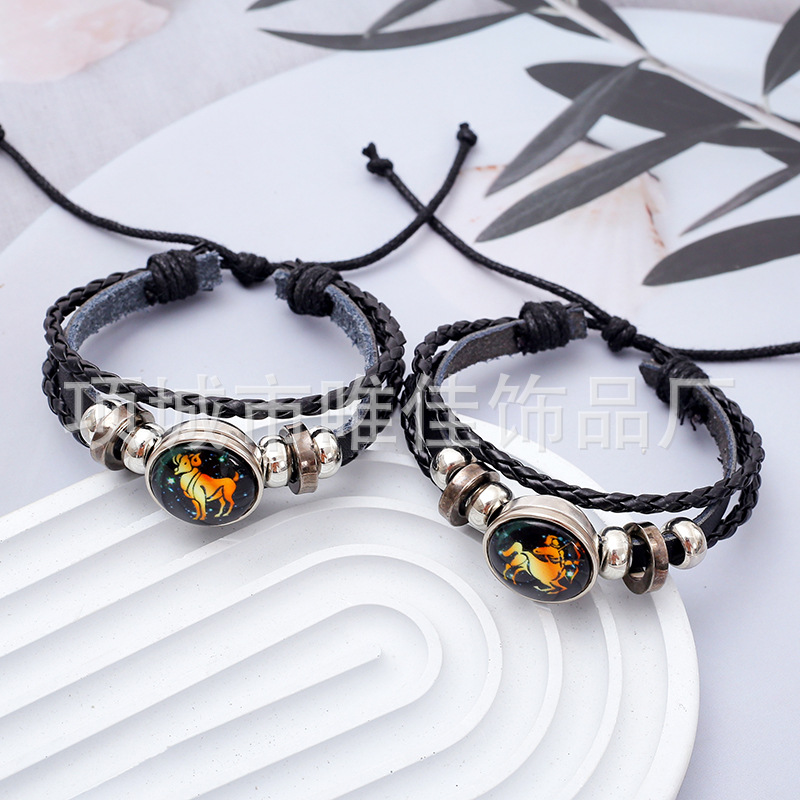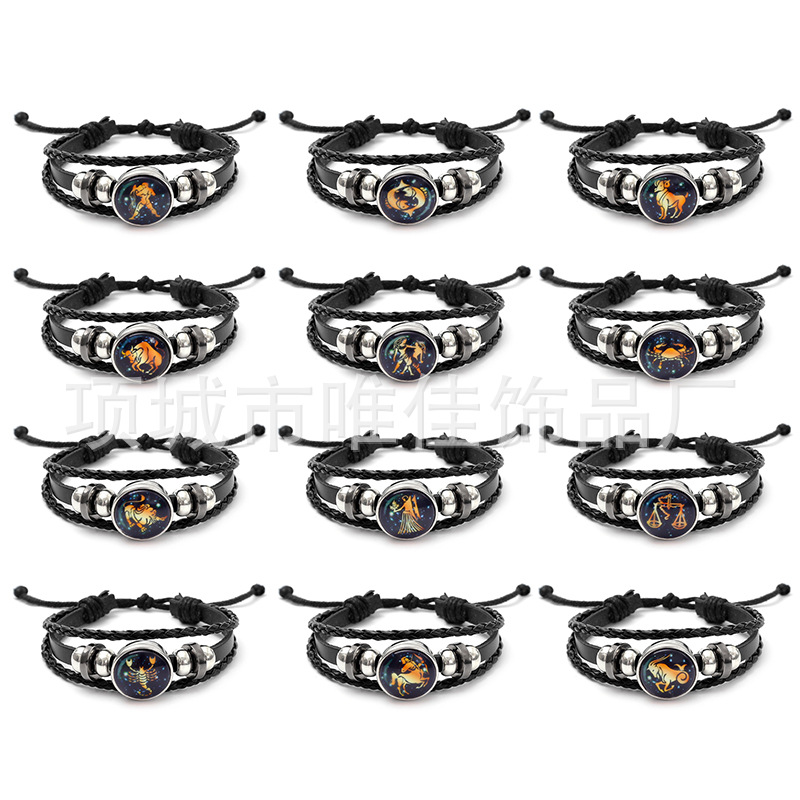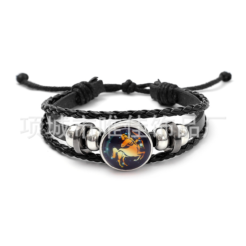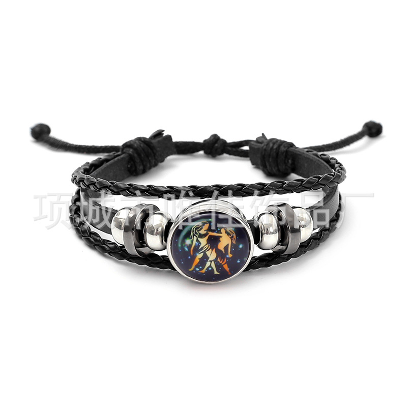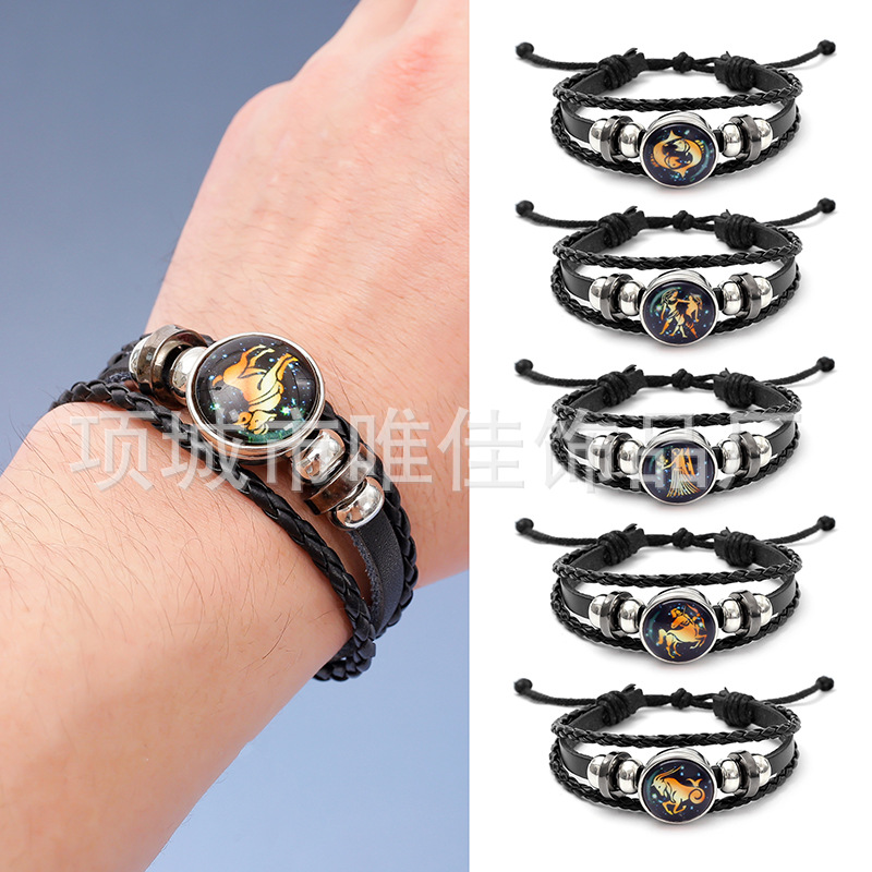 跨境新品欧美12十二星座夜光时光宝石皮革编织手链手环手镯学生