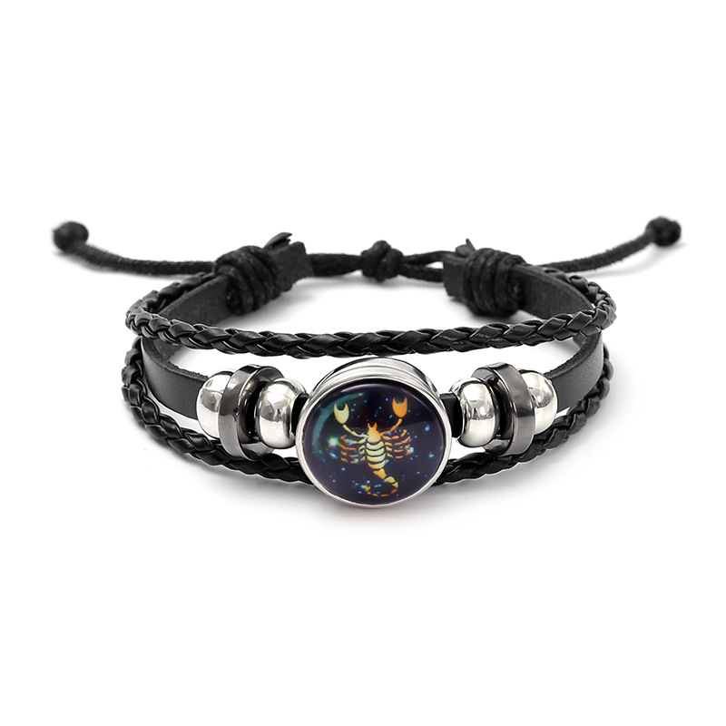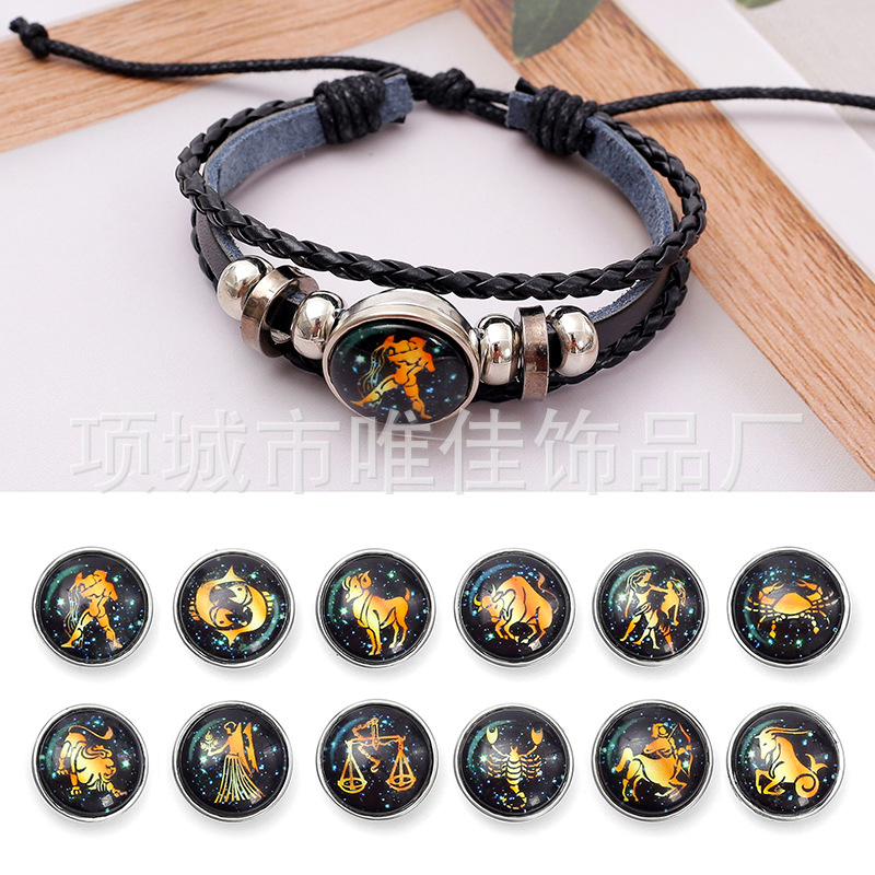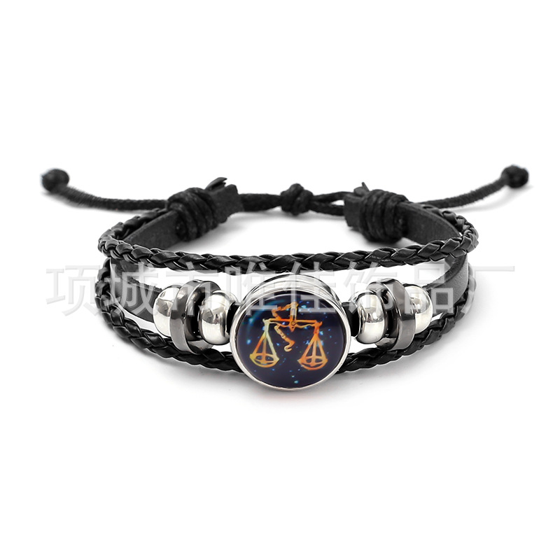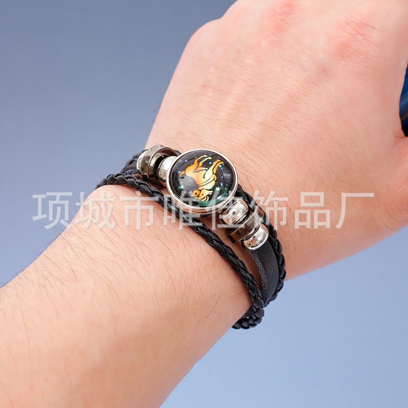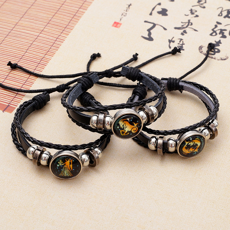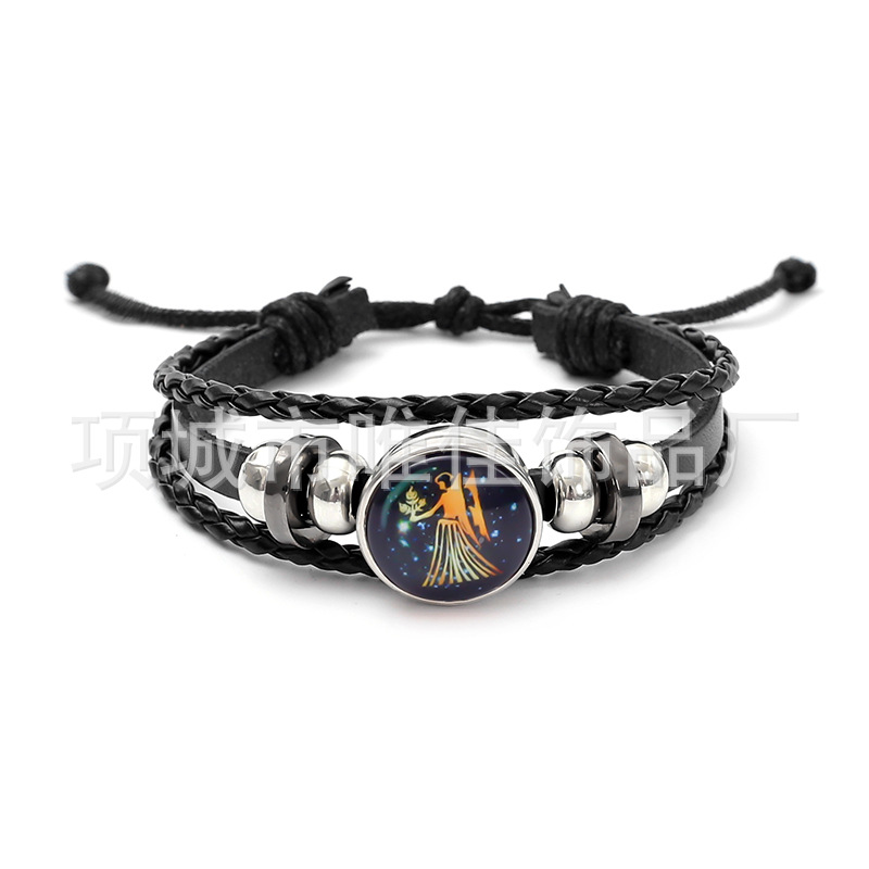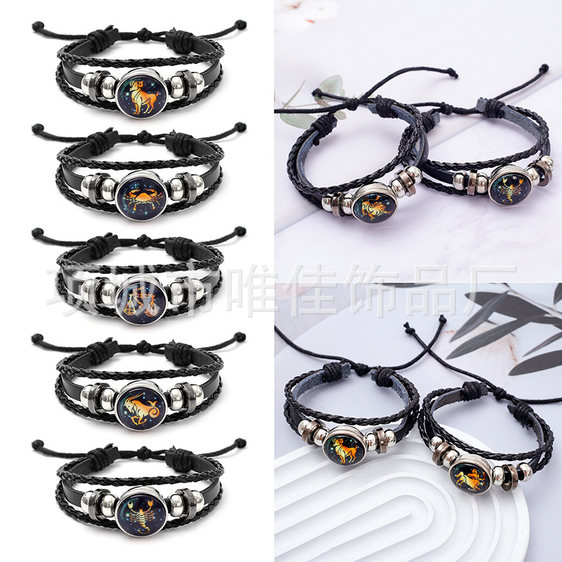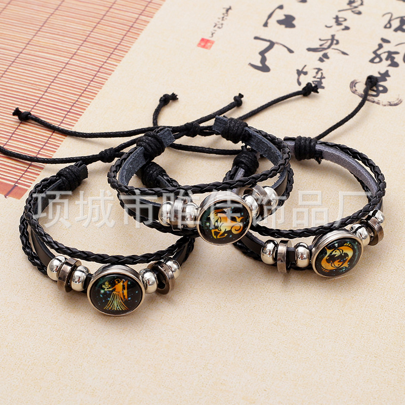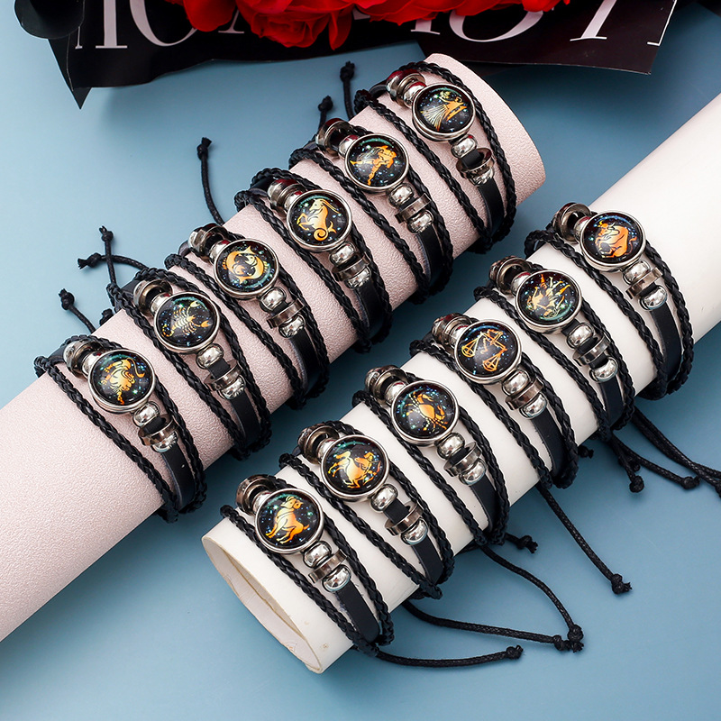 跨境新品欧美12十二星座夜光时光宝石皮革编织手链手环手镯学生