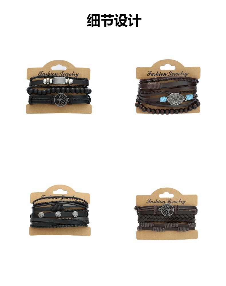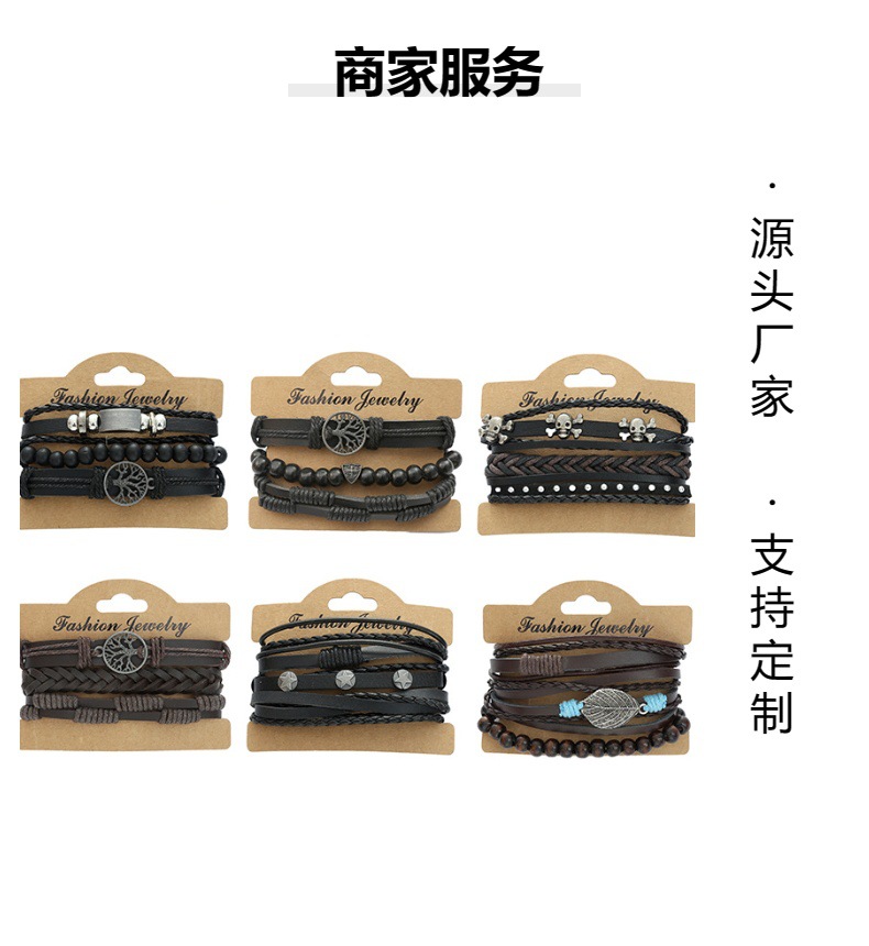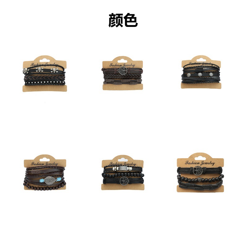 跨境生命树多层手链套装diy创意个性朋克手环欧美复古编织手链