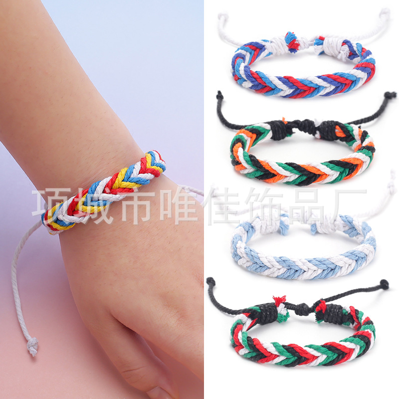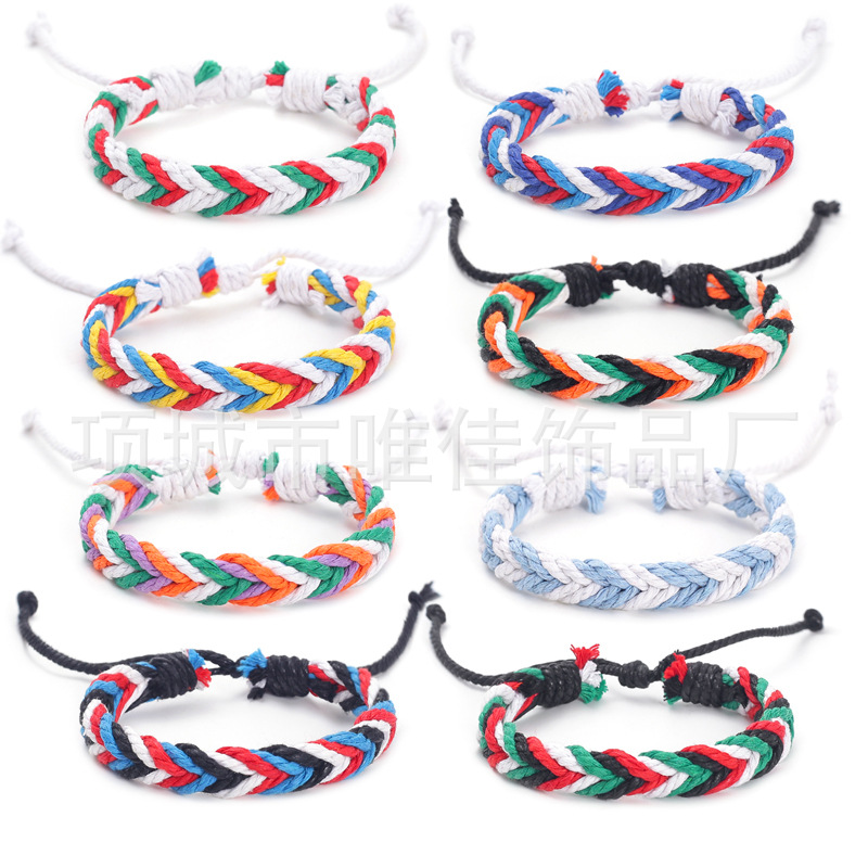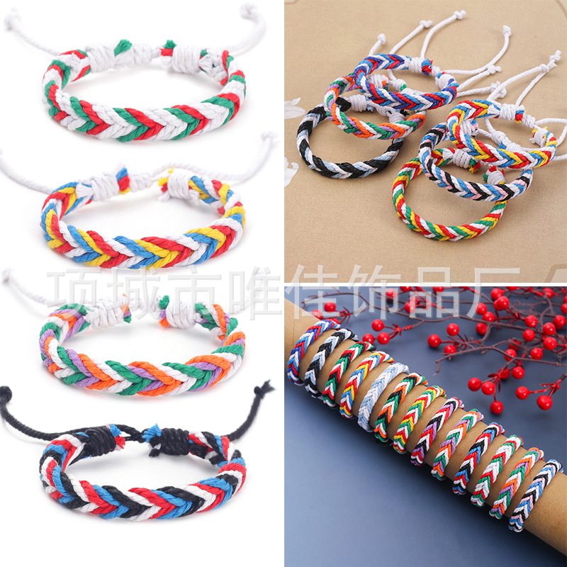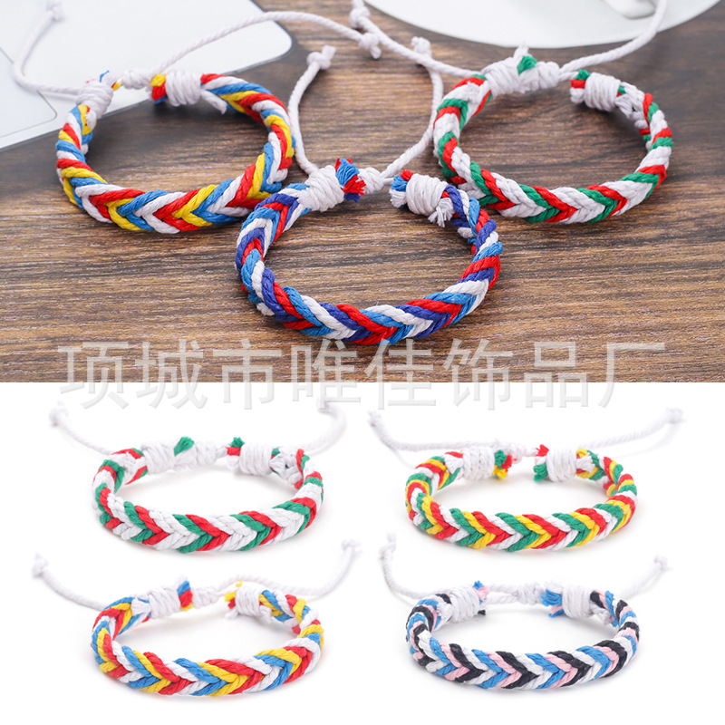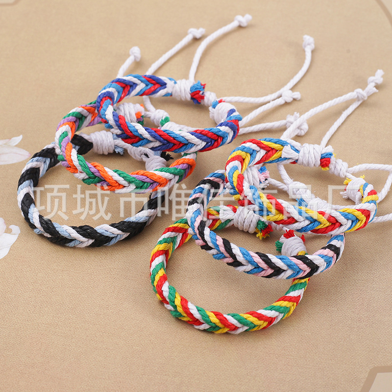 新款跨境彩色麻绳手工编织手链原创设计波西米亚民族风沙滩手环