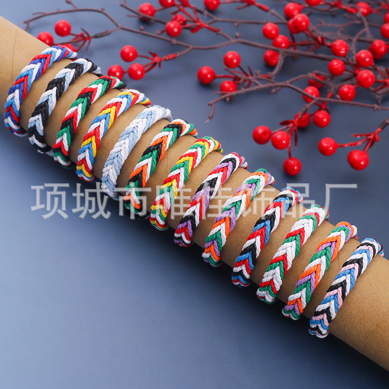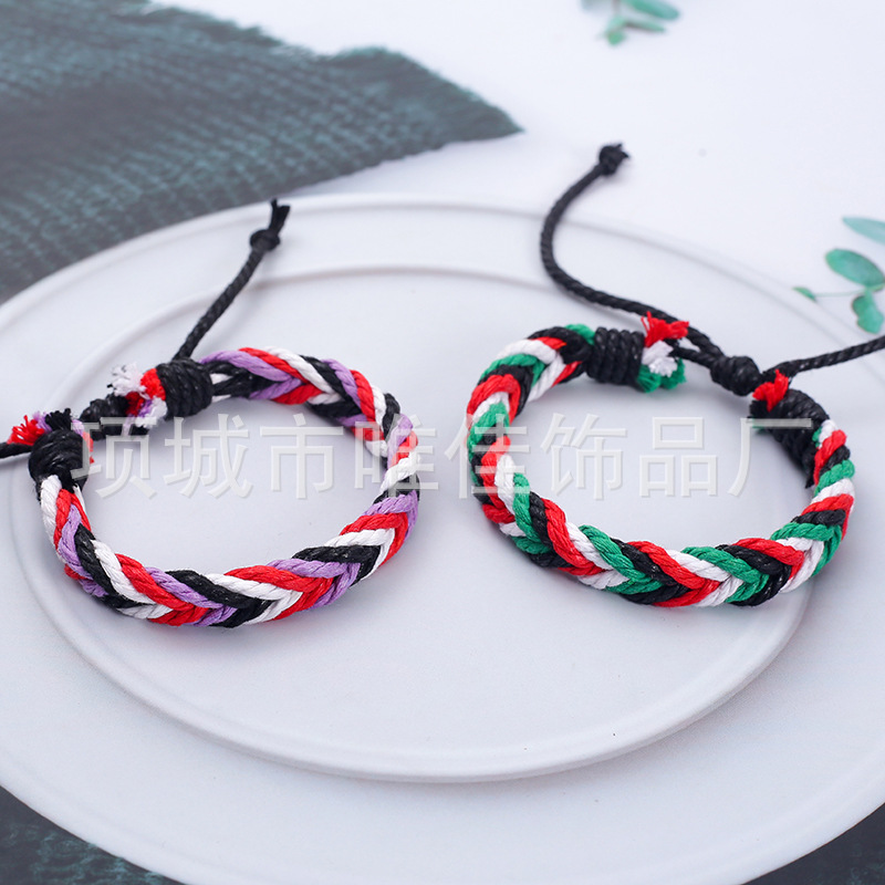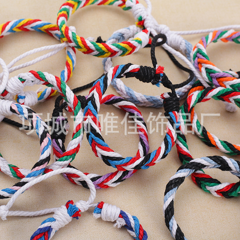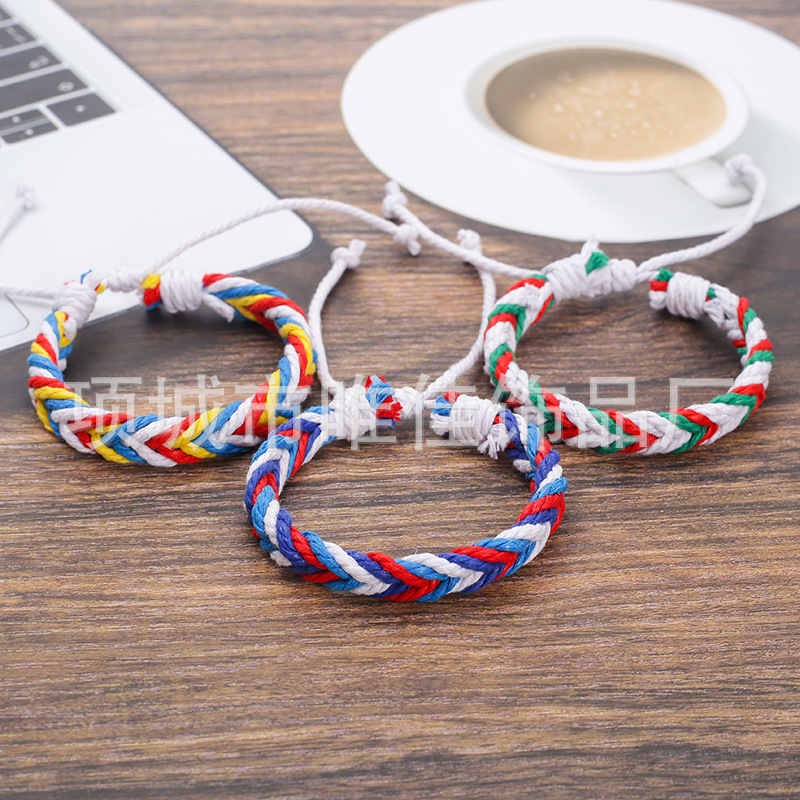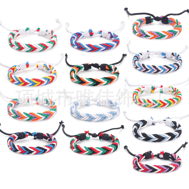 新款跨境彩色麻绳手工编织手链原创设计波西米亚民族风沙滩手环