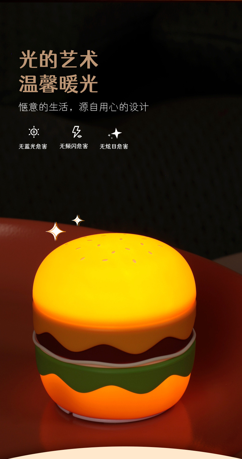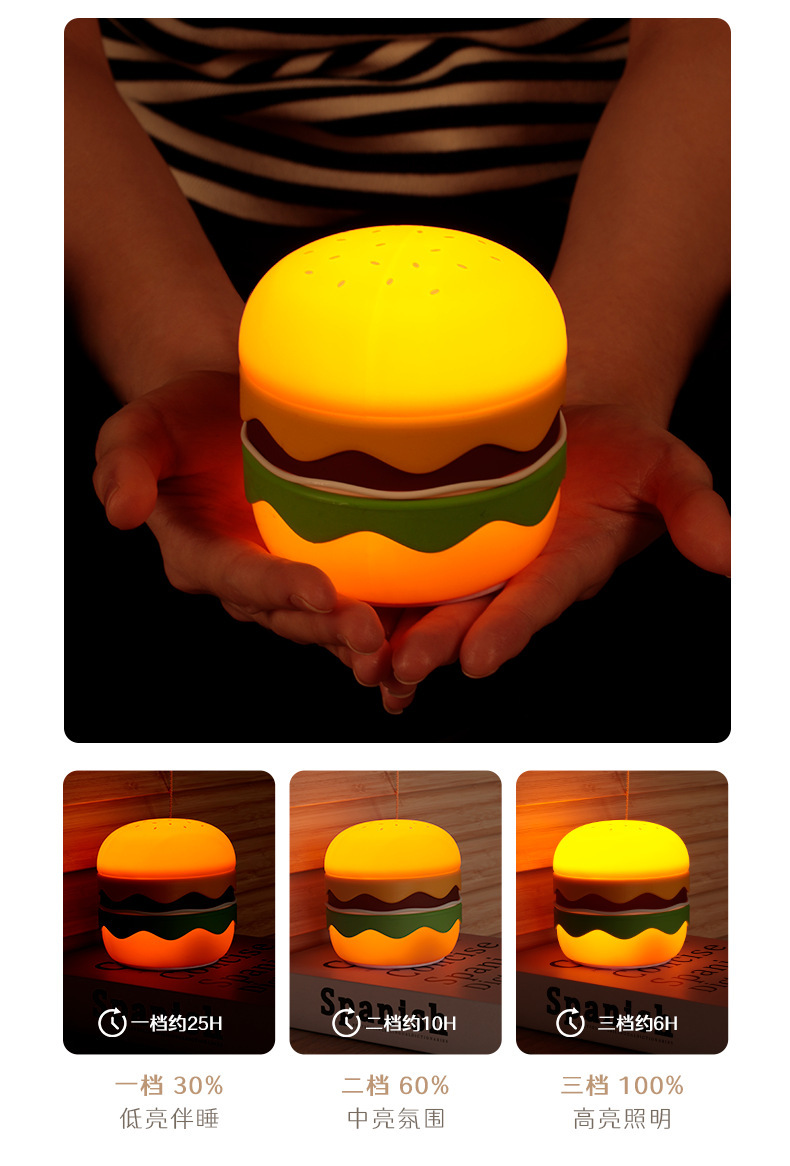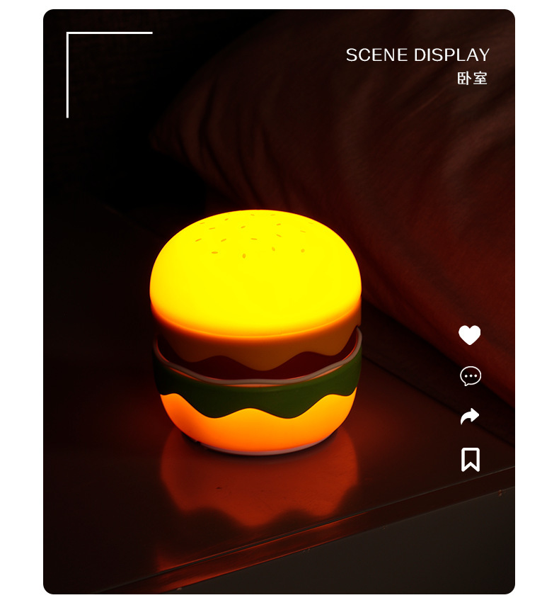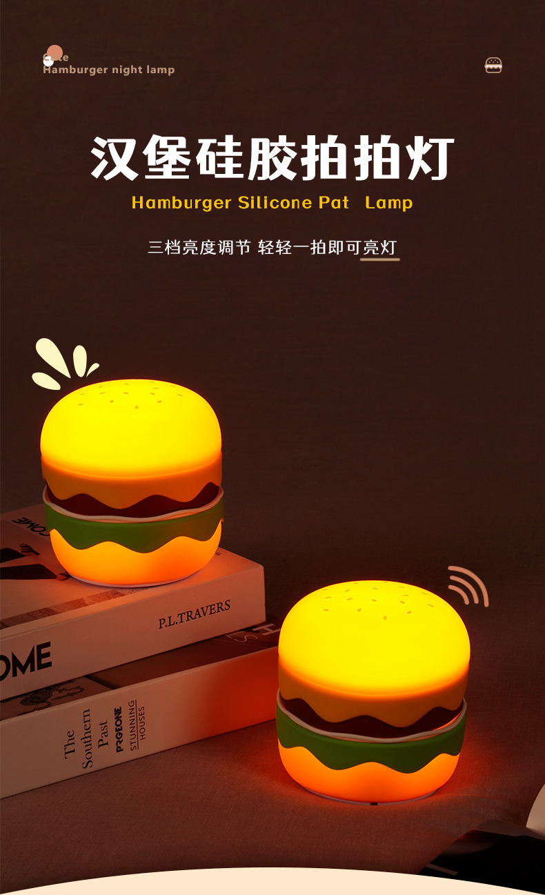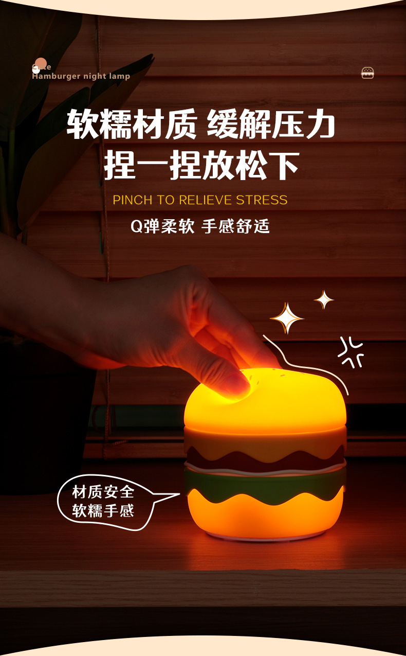 创意汉堡小夜灯仿真捏捏解压神器减压慢回弹玩具汉堡拍拍灯床头灯