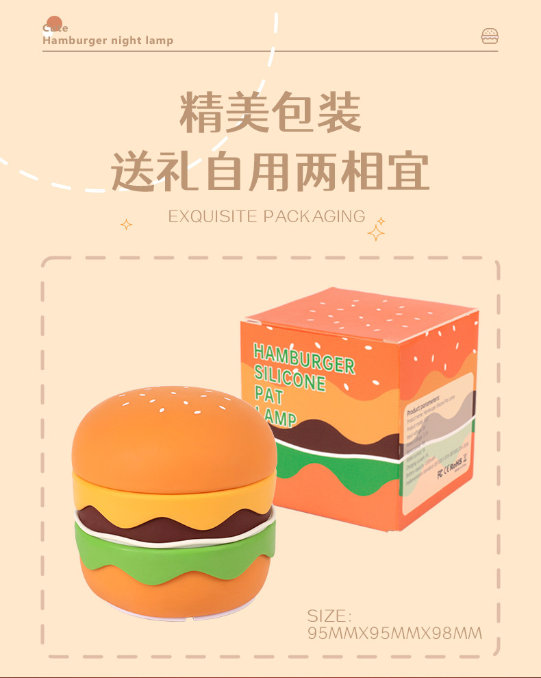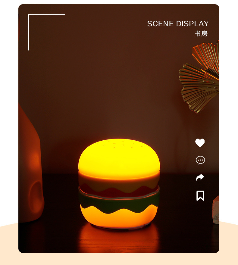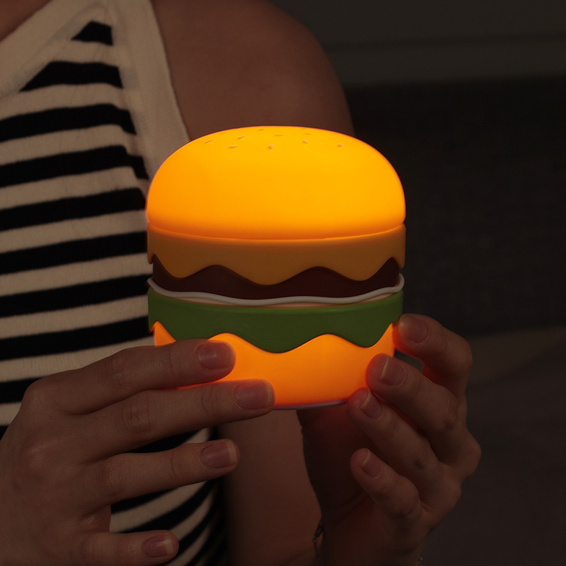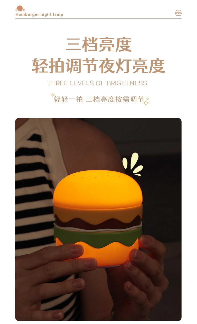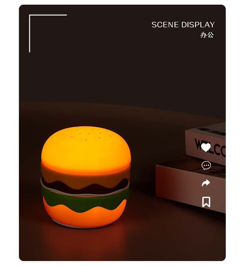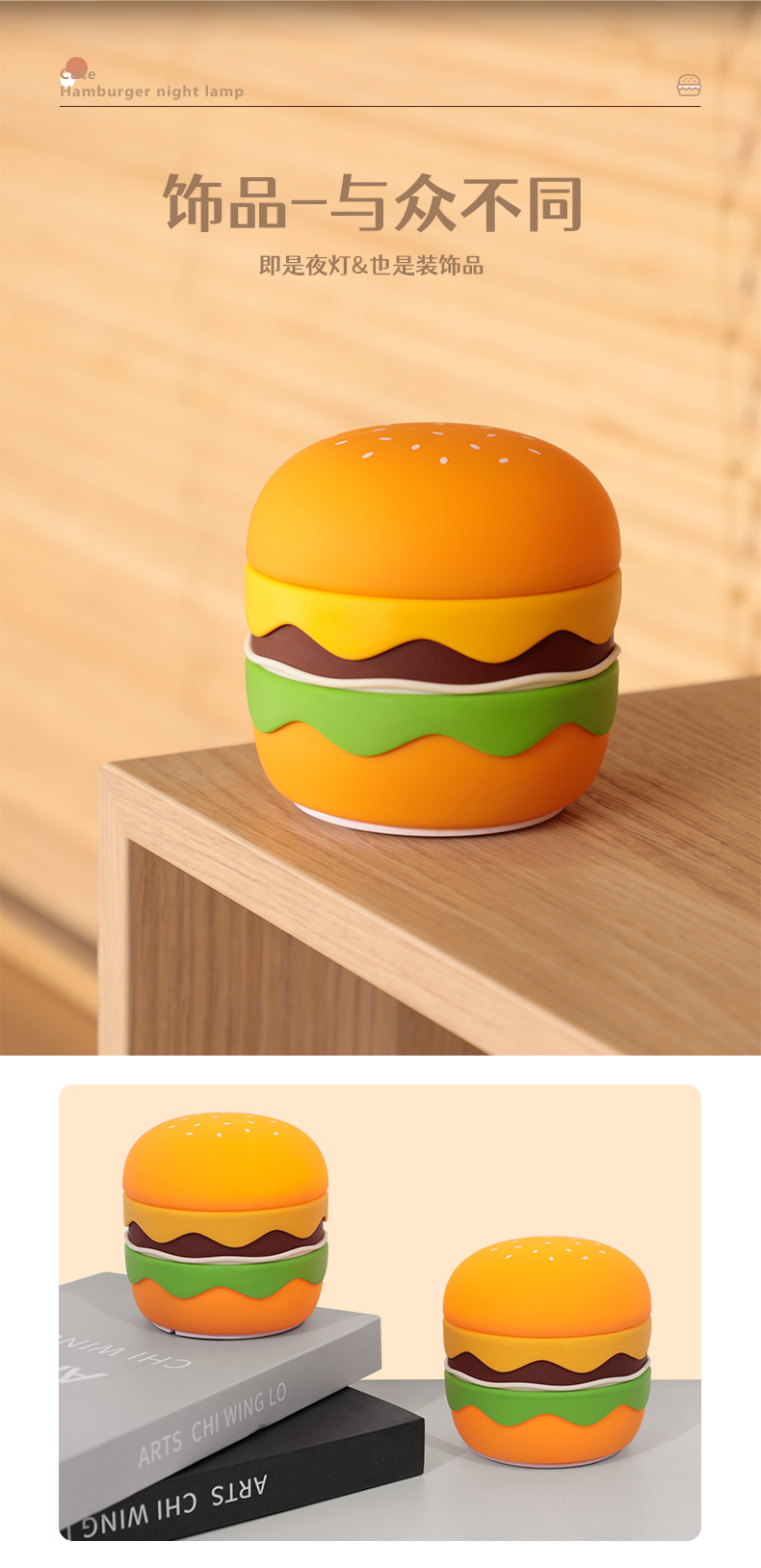 创意汉堡小夜灯仿真捏捏解压神器减压慢回弹玩具汉堡拍拍灯床头灯