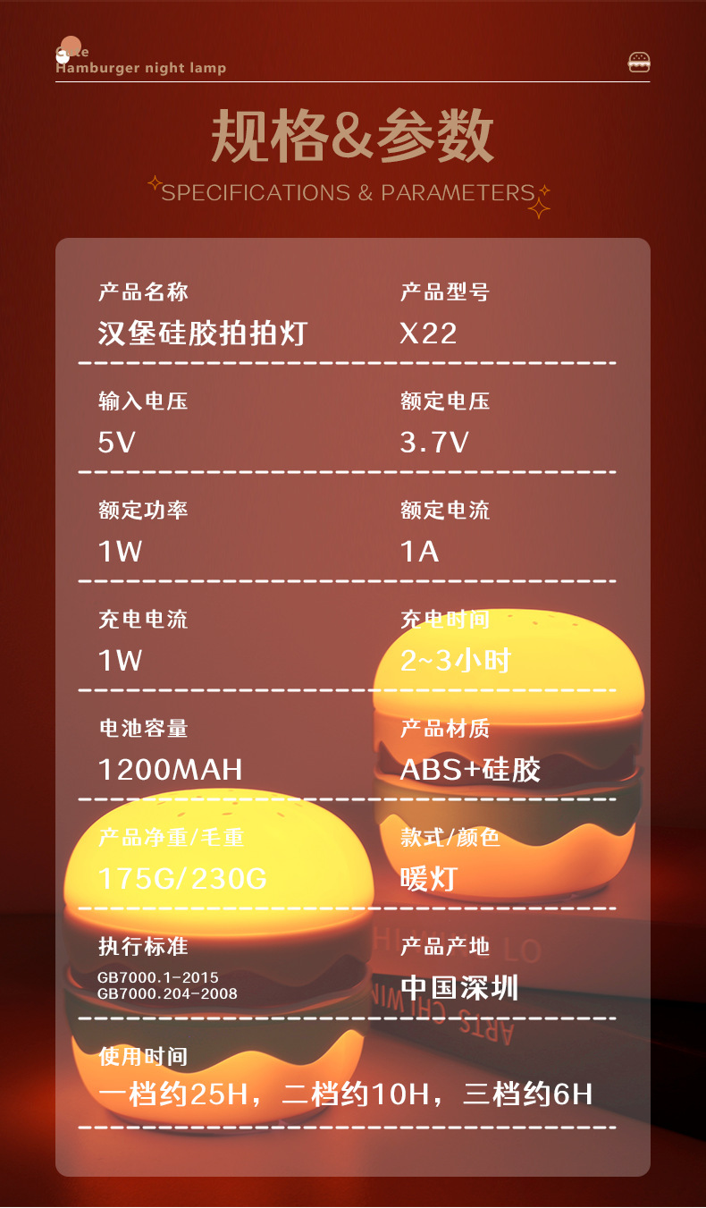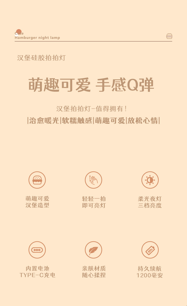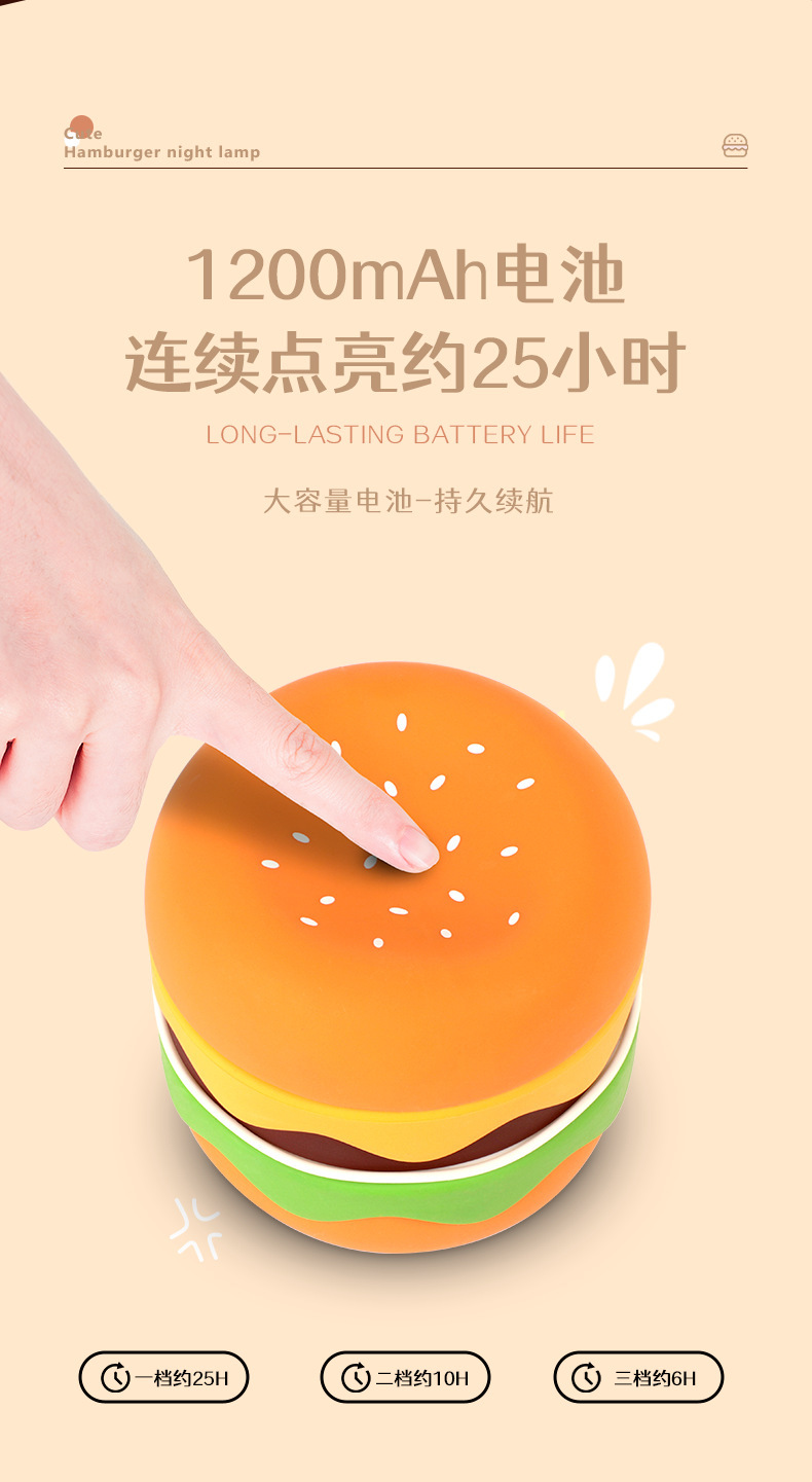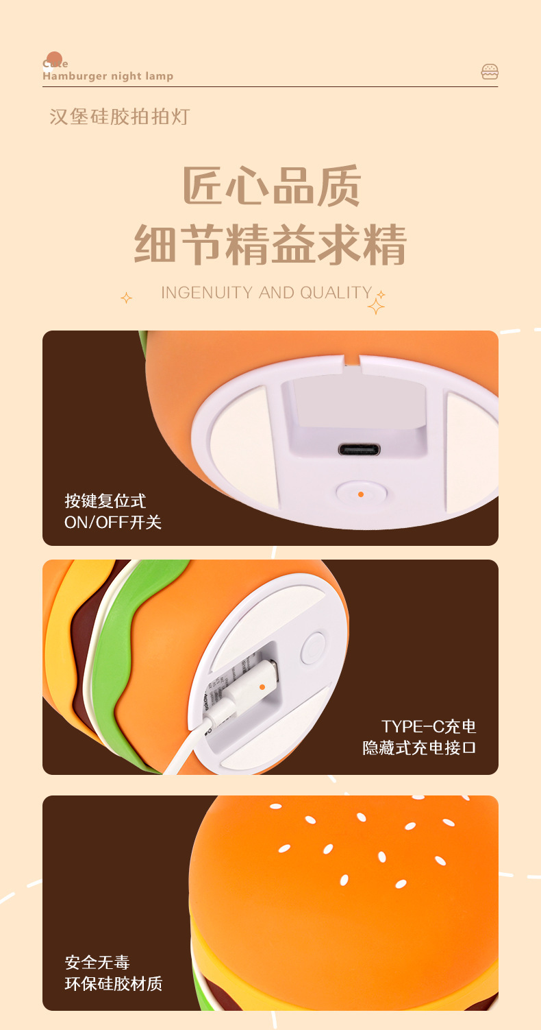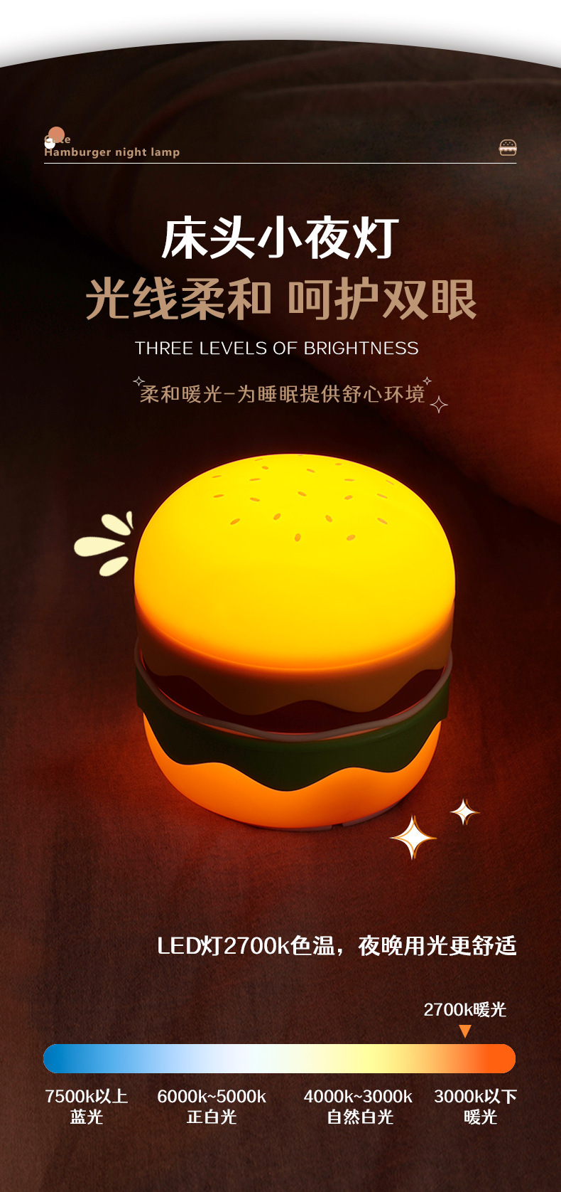 创意汉堡小夜灯仿真捏捏解压神器减压慢回弹玩具汉堡拍拍灯床头灯