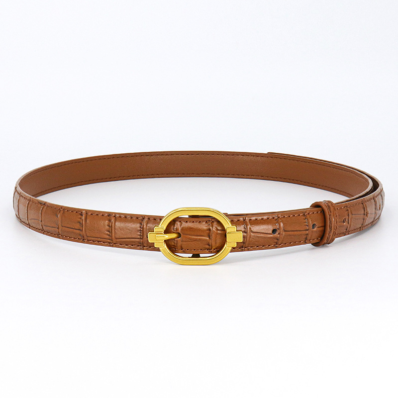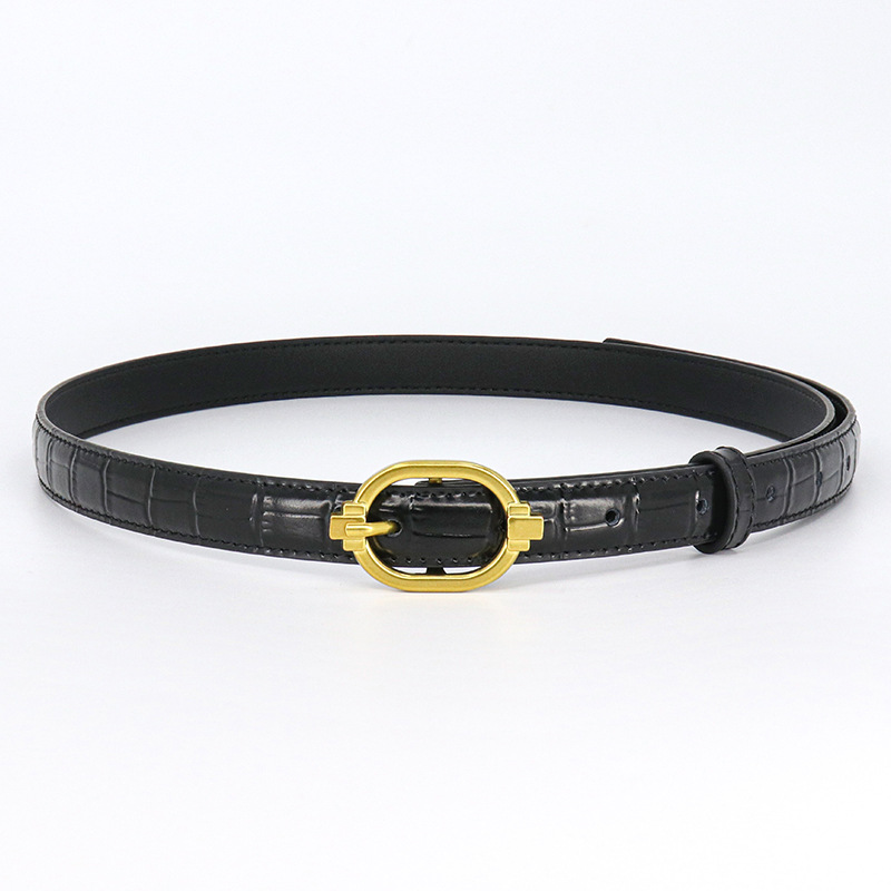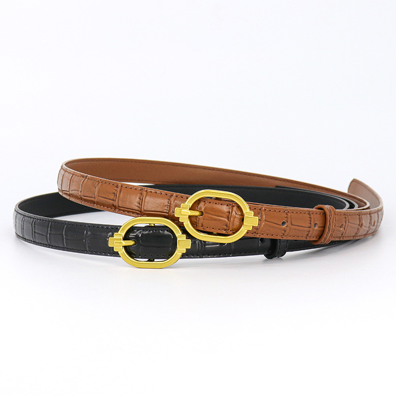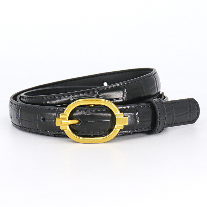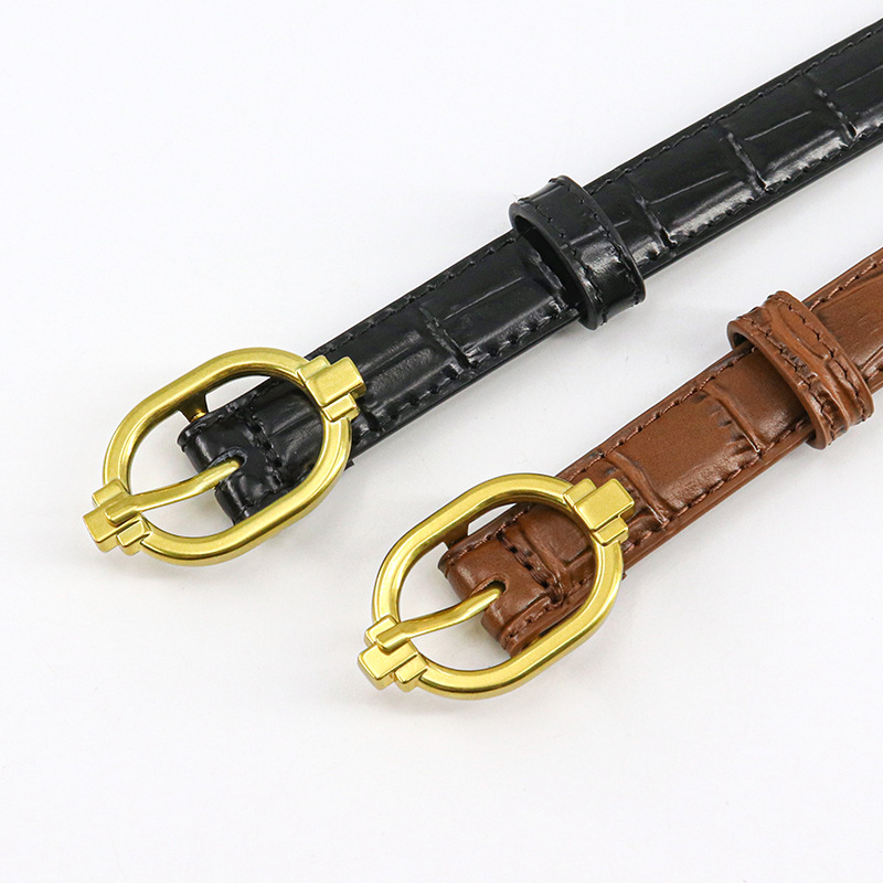 韩版鳄鱼纹腰带女士针扣皮带 金色合金扣百搭牛仔裤女细腰带