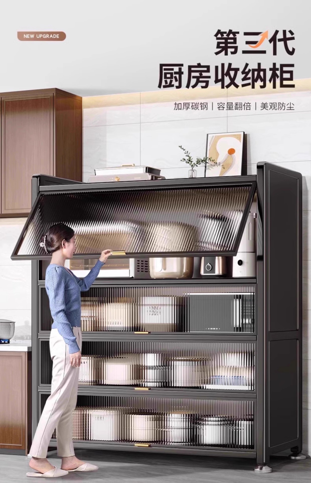 加高厨房置物架落地多层收纳柜子微波炉家用带门多功能橱柜储物柜