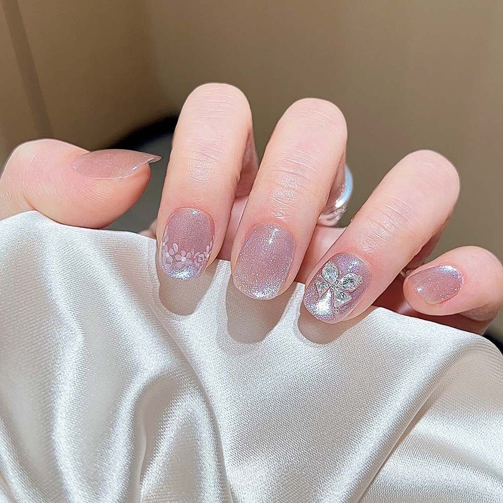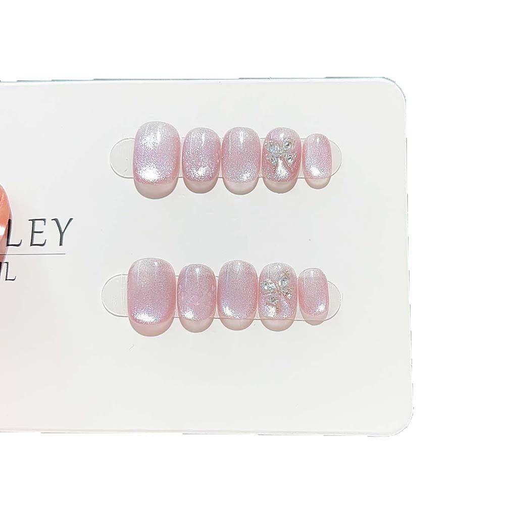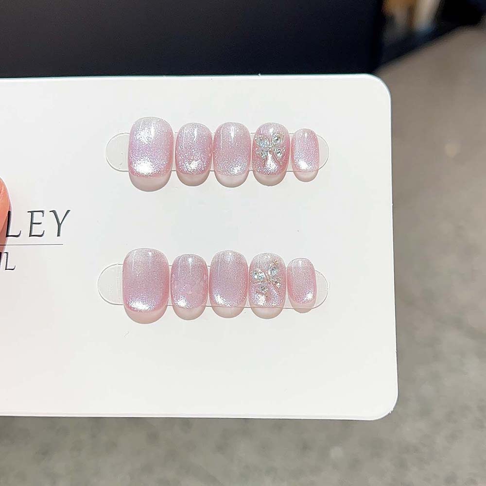 纯手工穿戴甲短款蝴蝶结简约气质猫眼高级感女士美甲可拆卸贴片
