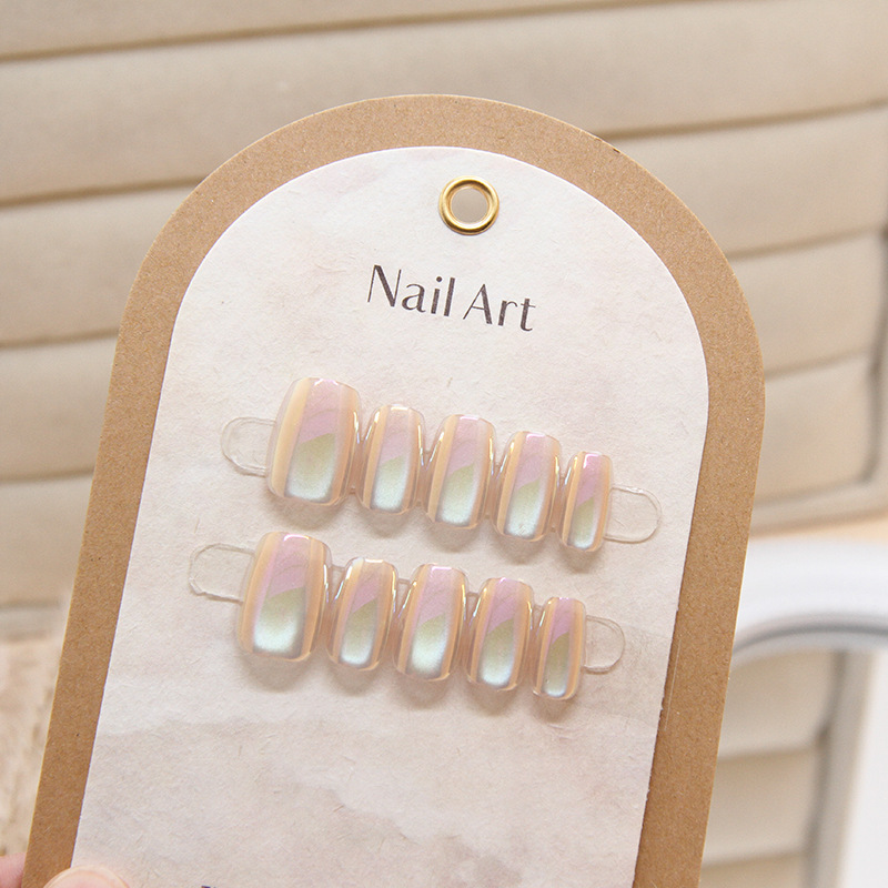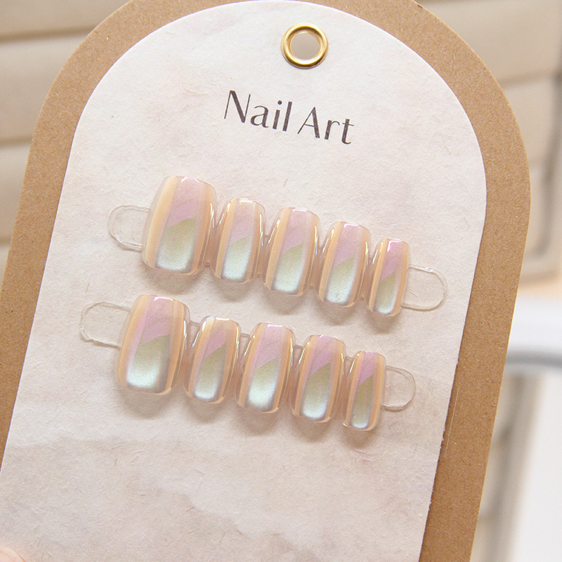 追光猫眼镜面穿戴甲可拆卸分码10片电镀极光美甲片直播甲片指甲片