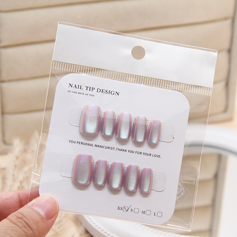 追光猫眼粉紫极光穿戴甲片可拆卸美甲片猫眼美甲贴片指甲片分码