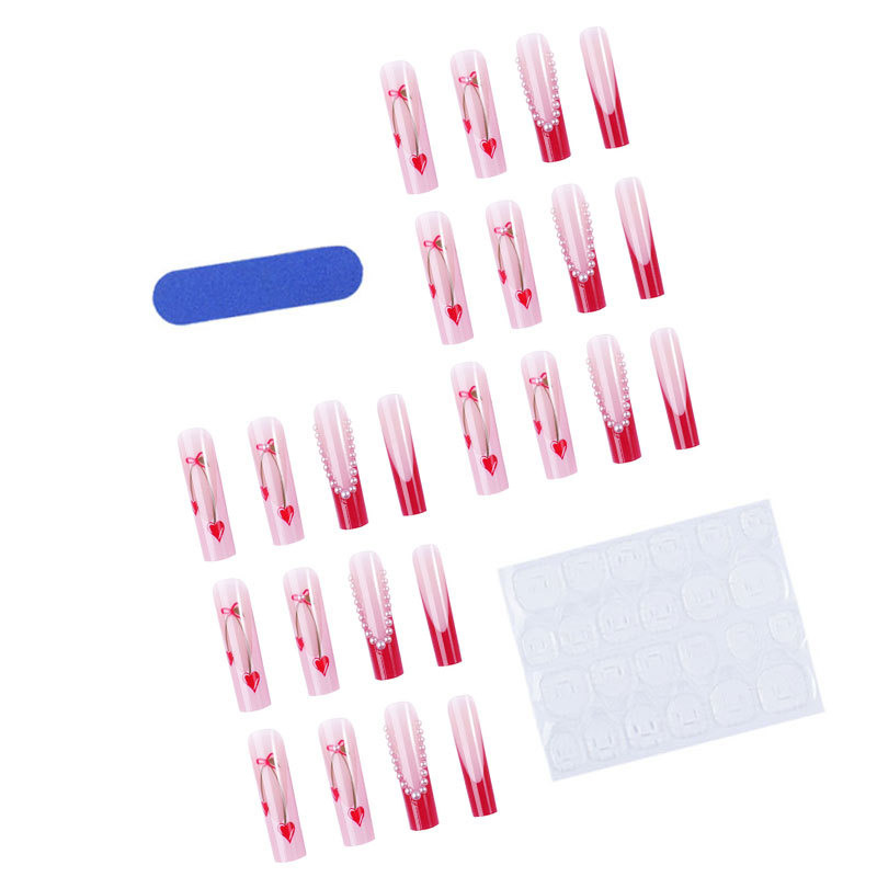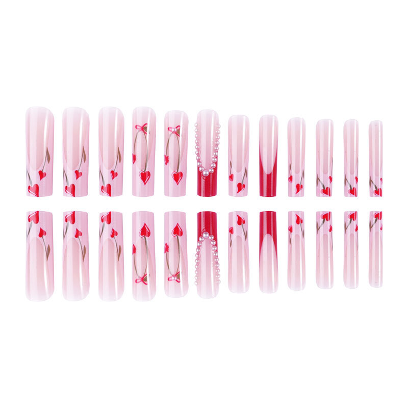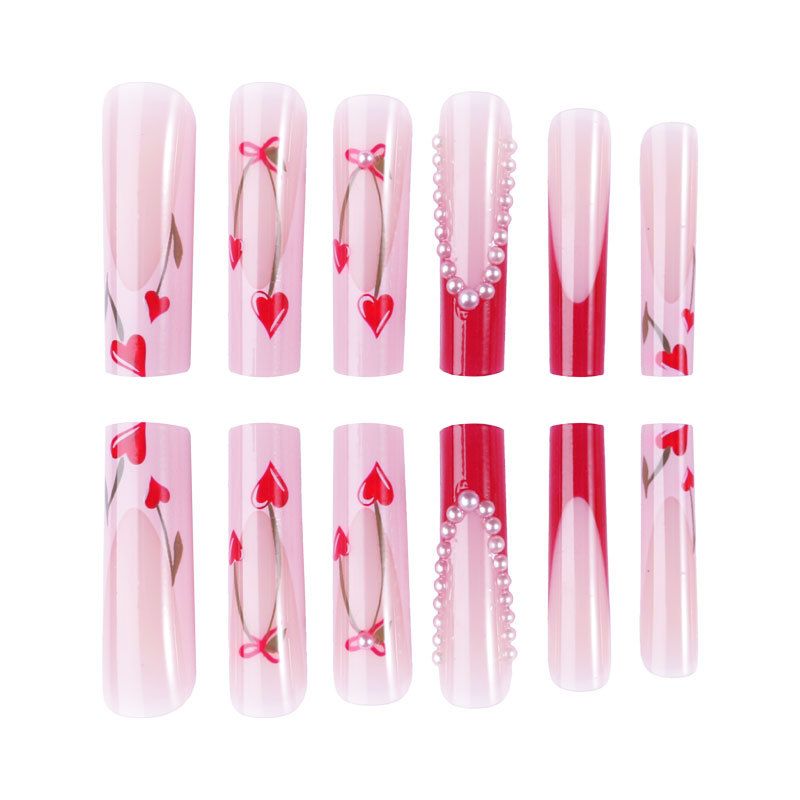 跨境欧美水管美甲甲片跨境热卖爱心珍珠穿戴甲法式假指甲片