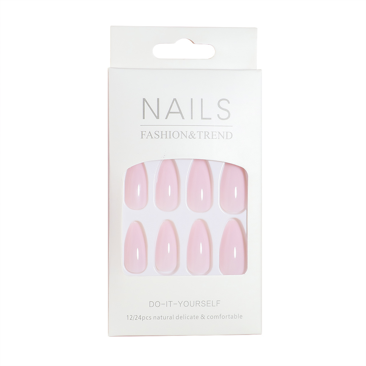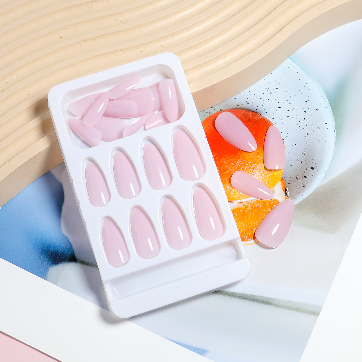 水粉杏仁穿戴甲美甲简约纯色水滴甲假指甲贴片成品可拆卸甲片