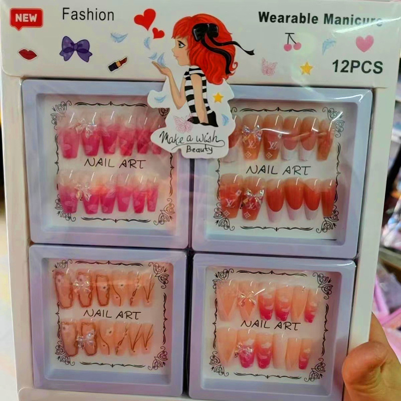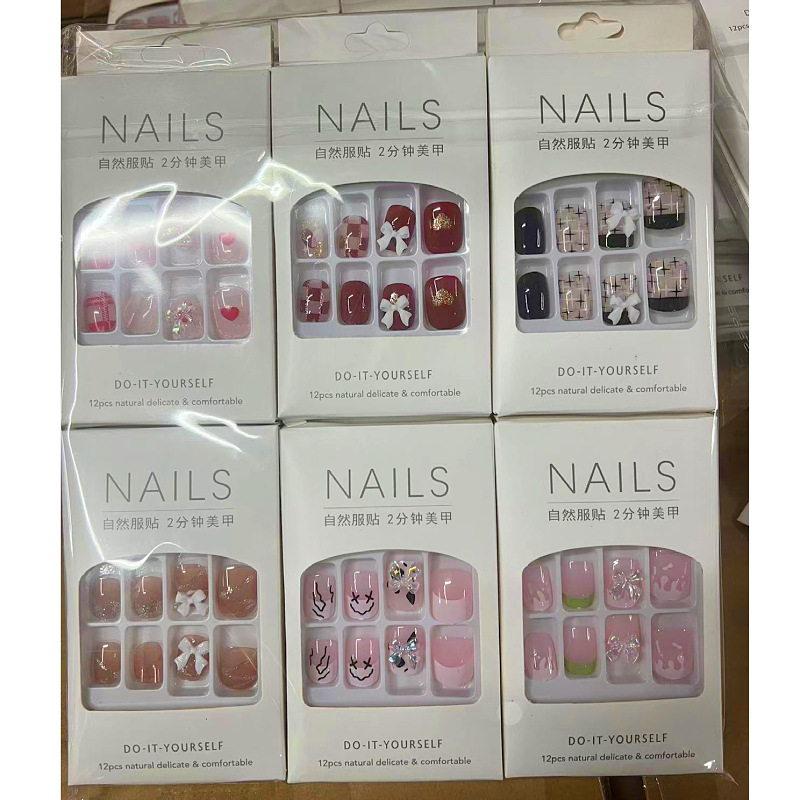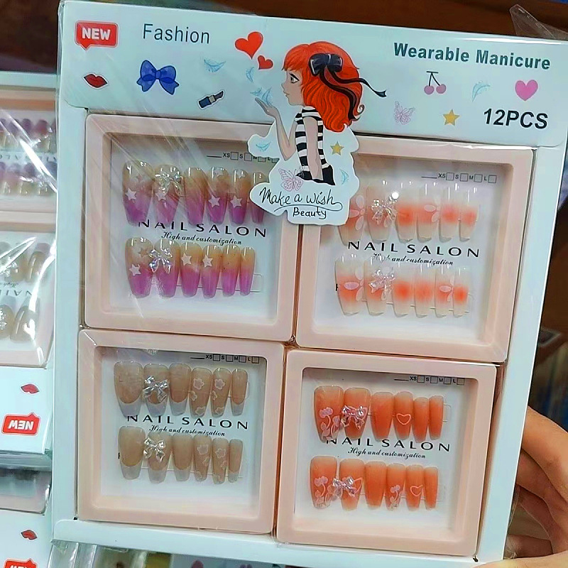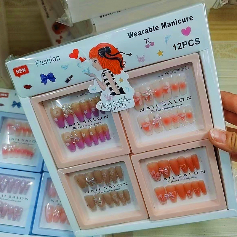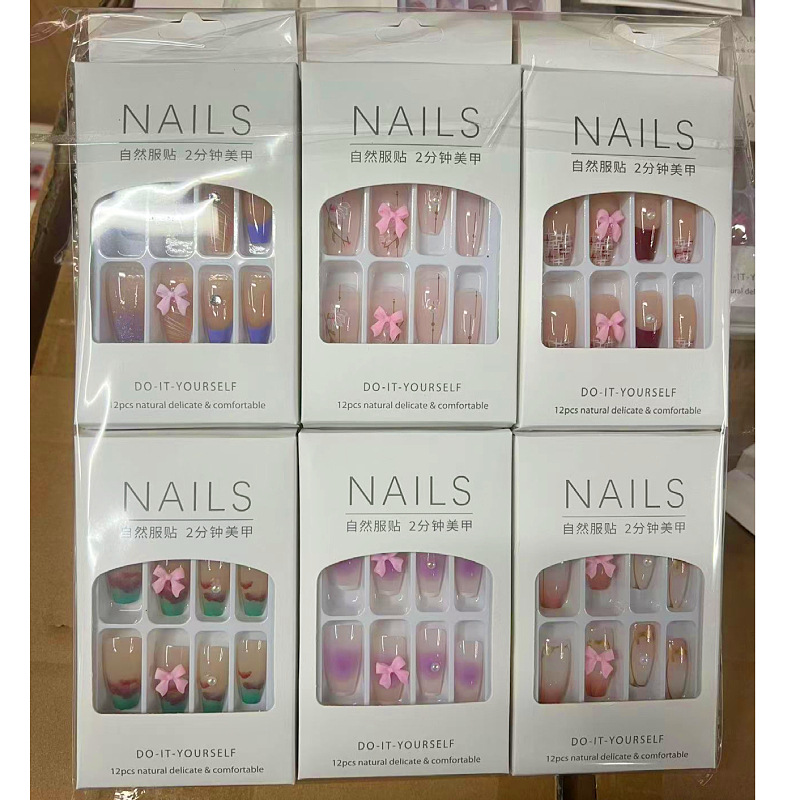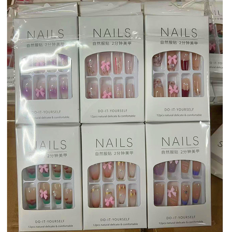 产品美甲穿戴式可拆卸学生美甲贴指甲贴片中长款法式蝴蝶结美甲片