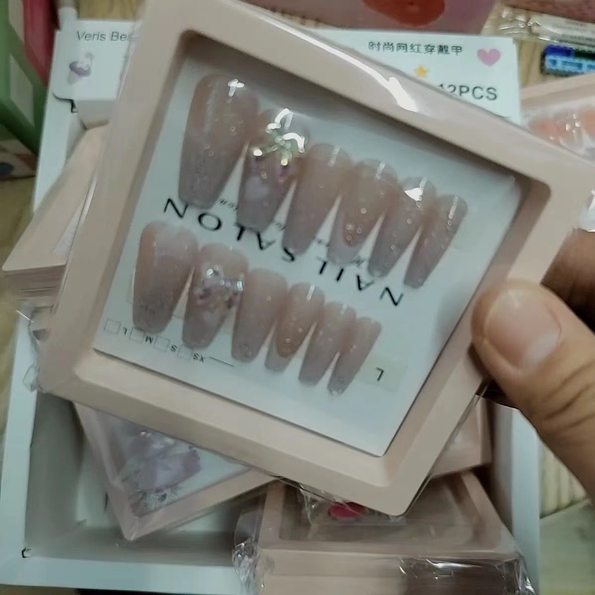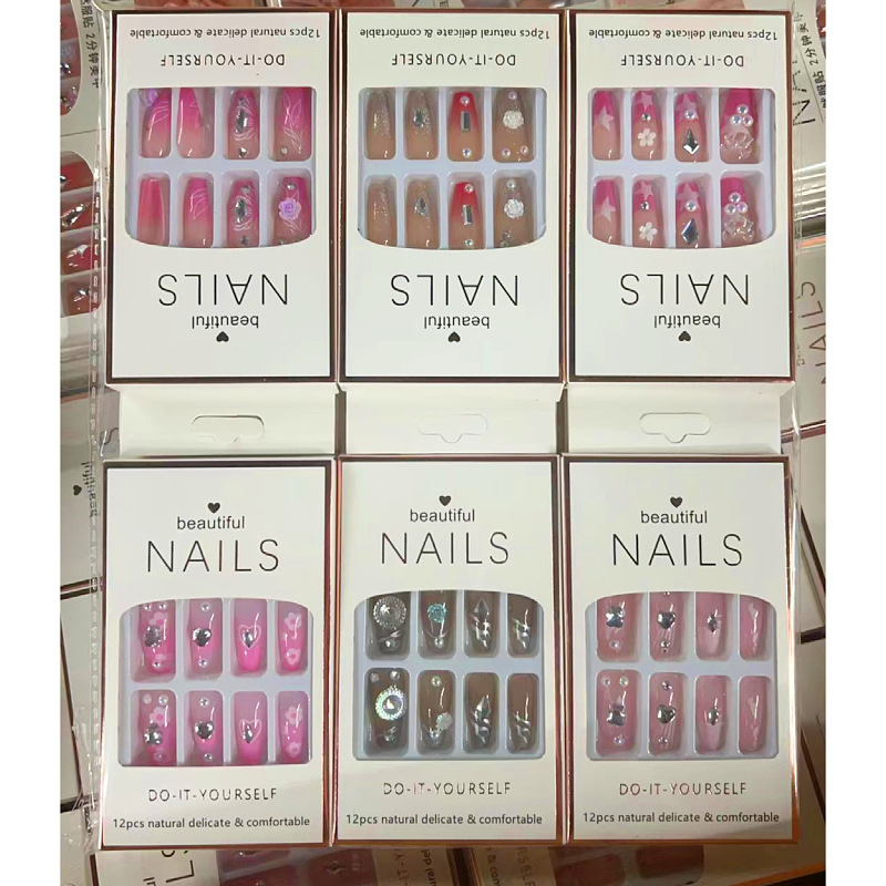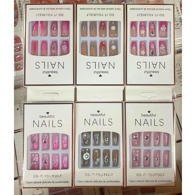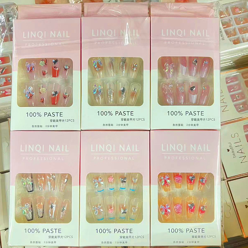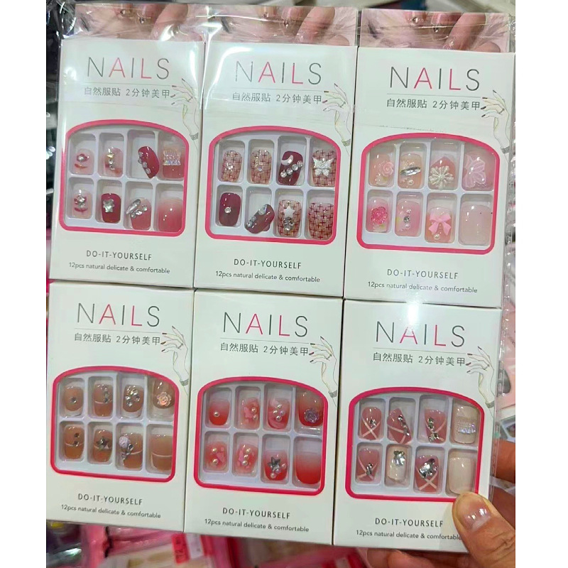 产品美甲穿戴式可拆卸学生美甲贴指甲贴片中长款法式蝴蝶结美甲片