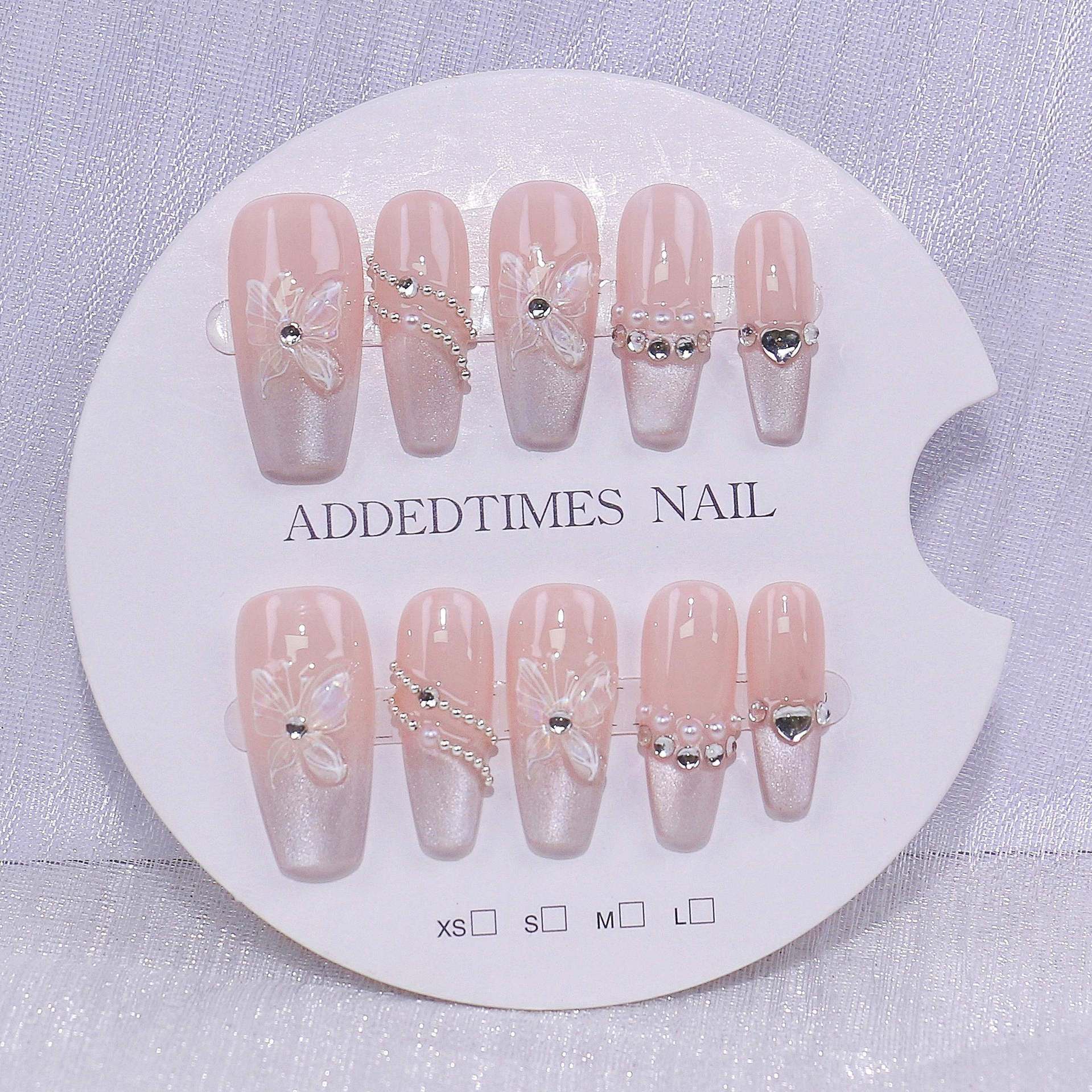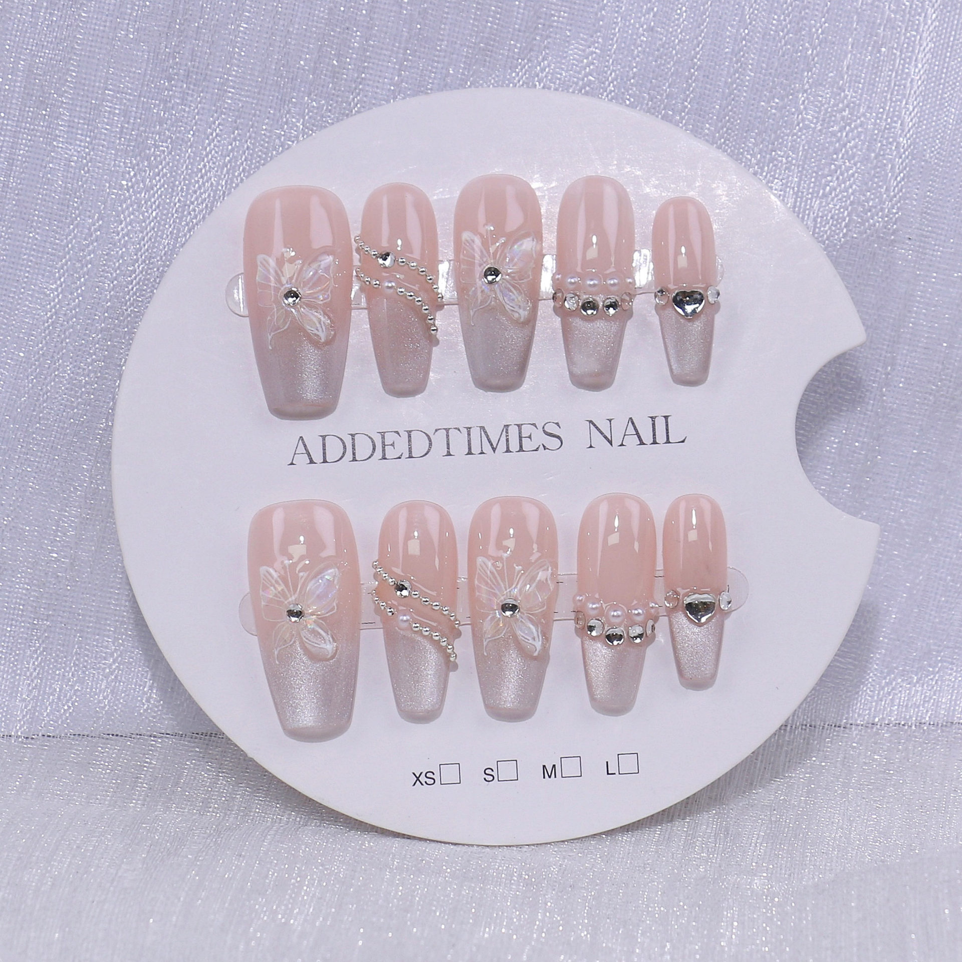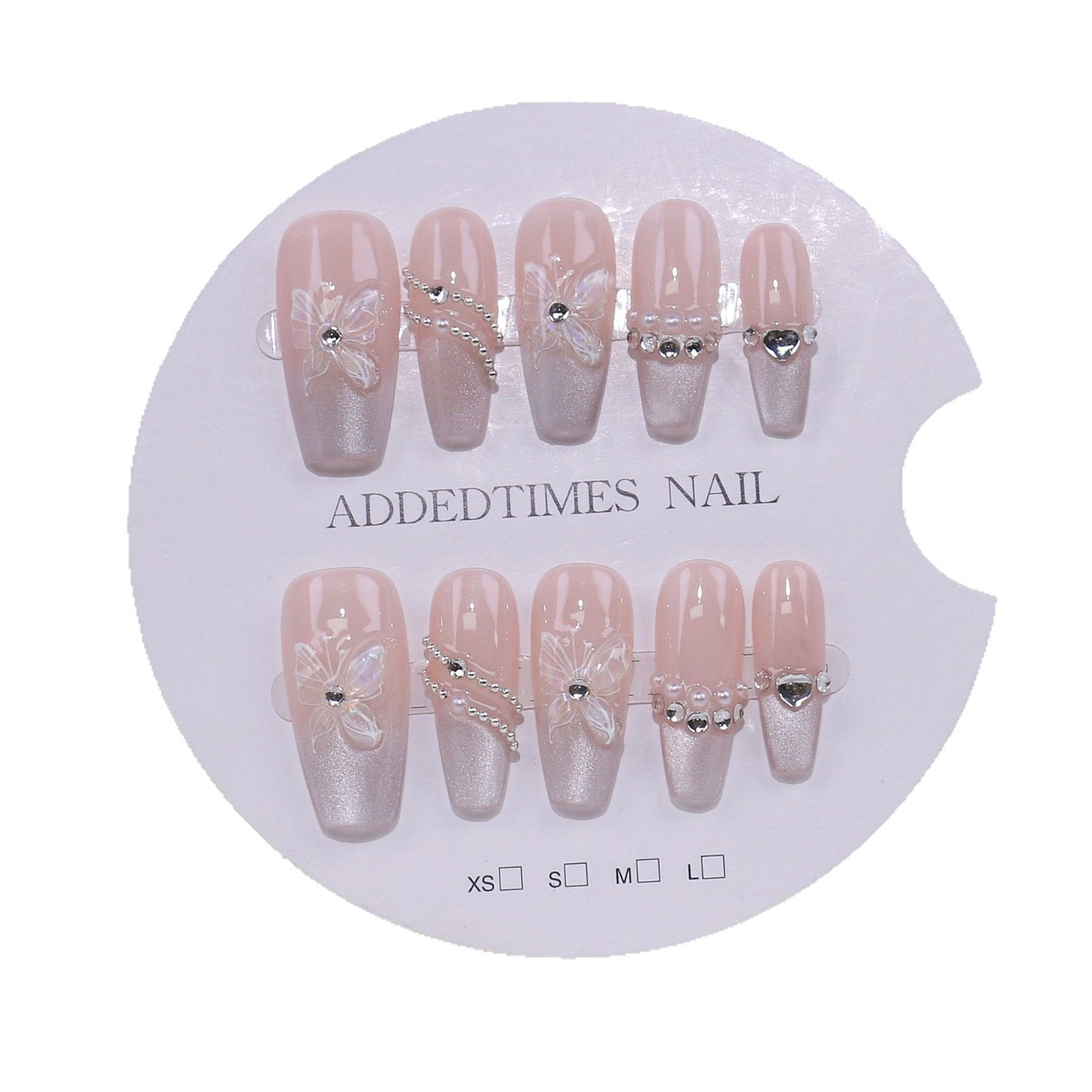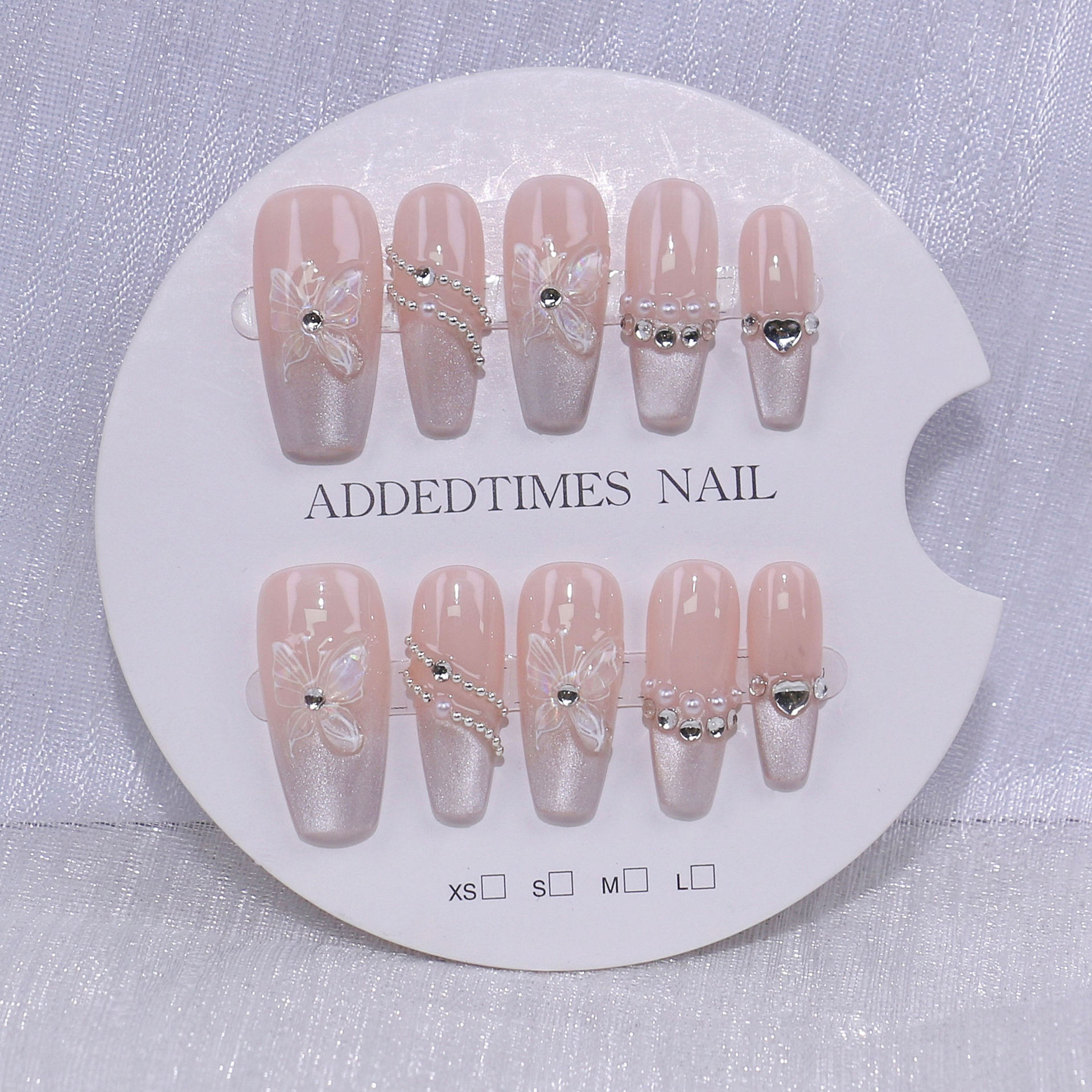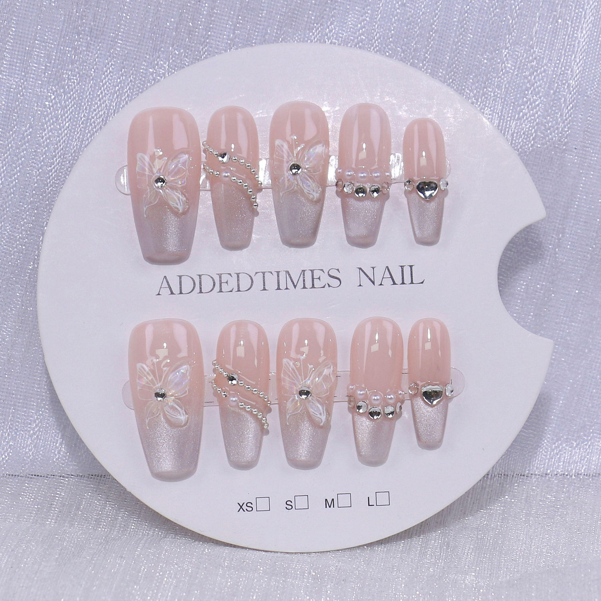 新款纯手工穿戴甲高品爆款美甲贴片成品批发绵密猫眼蝴蝶高级法式