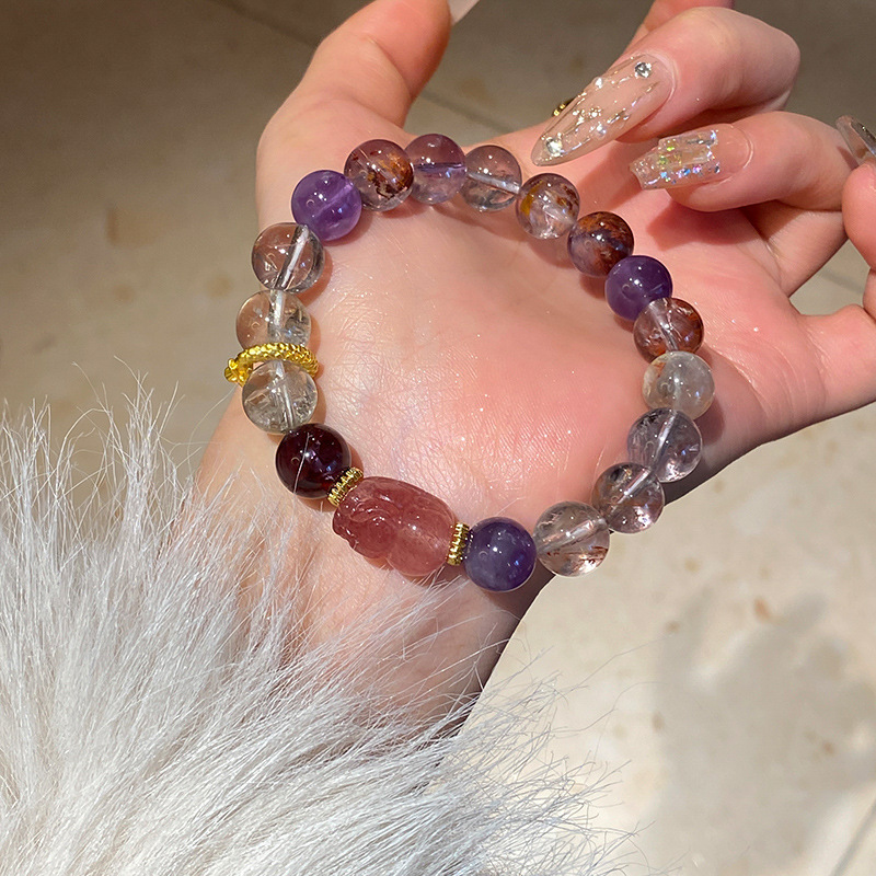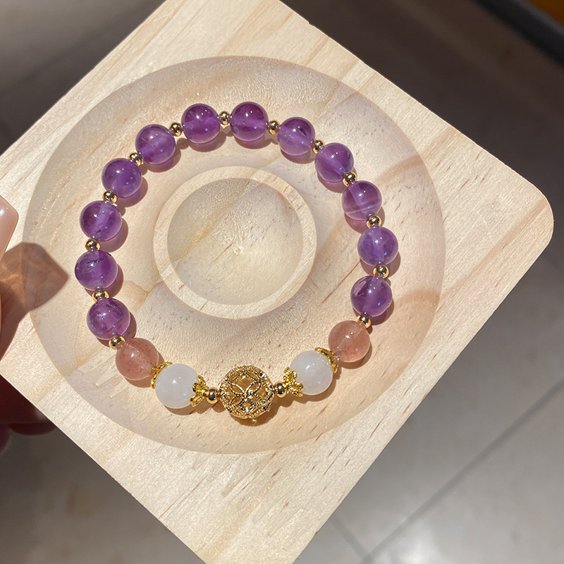 饰品手链气质手串甜美高级感手饰配饰小红书紫幽灵草莓晶叠戴手链