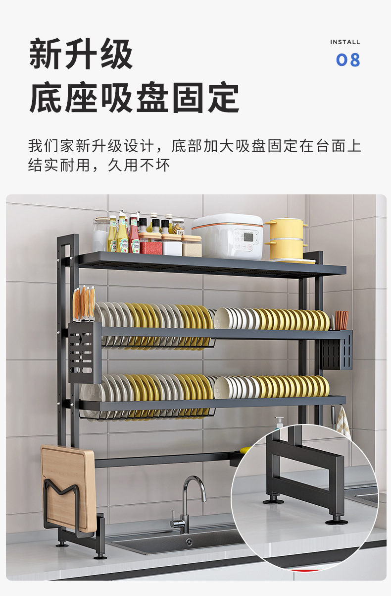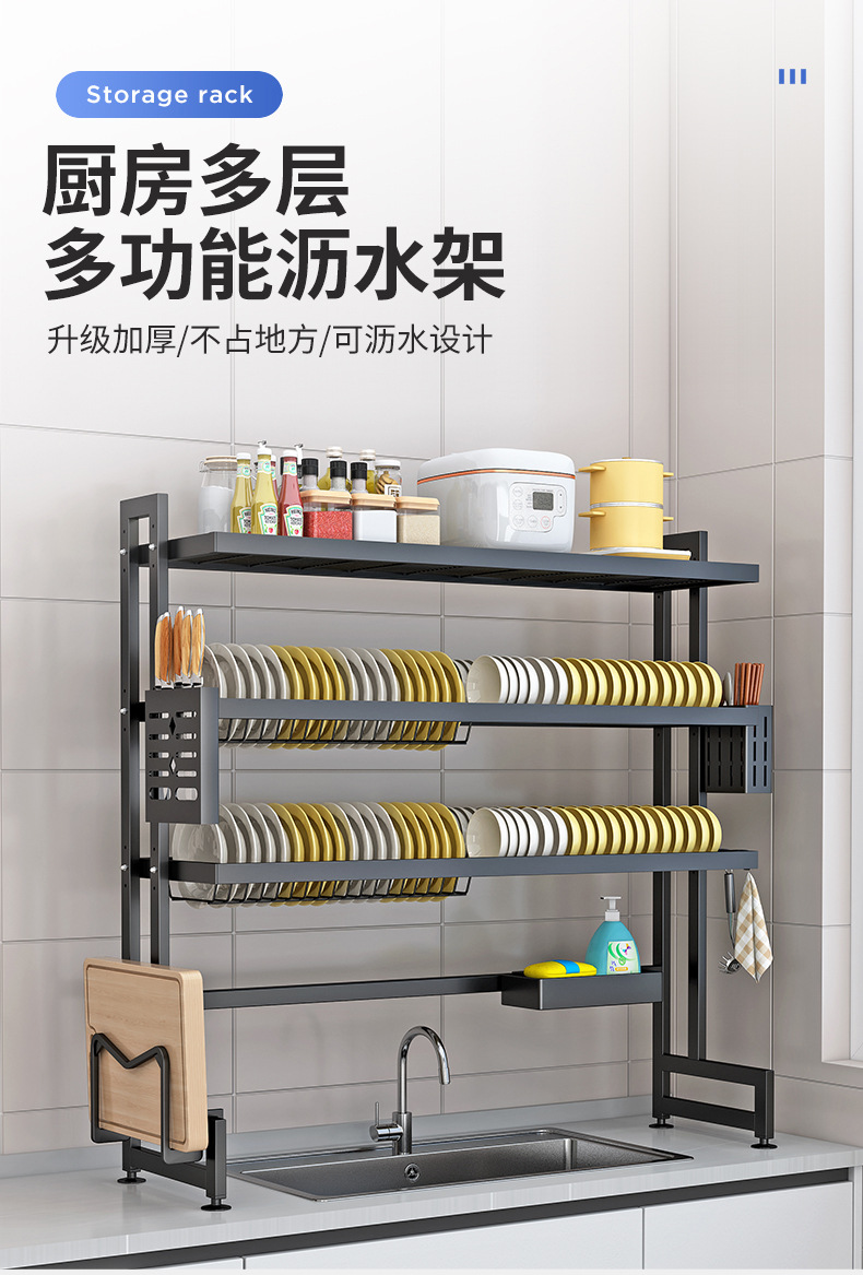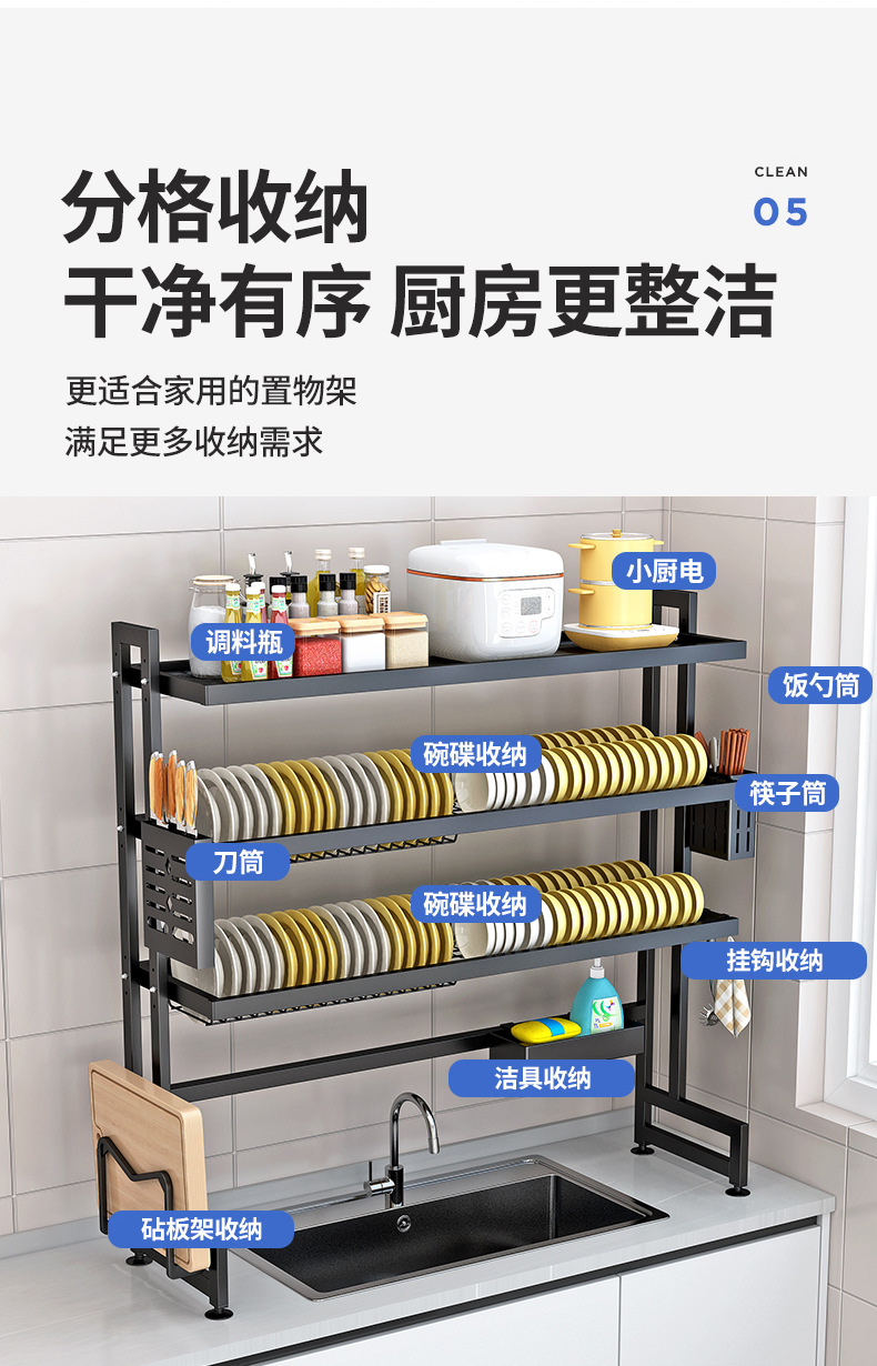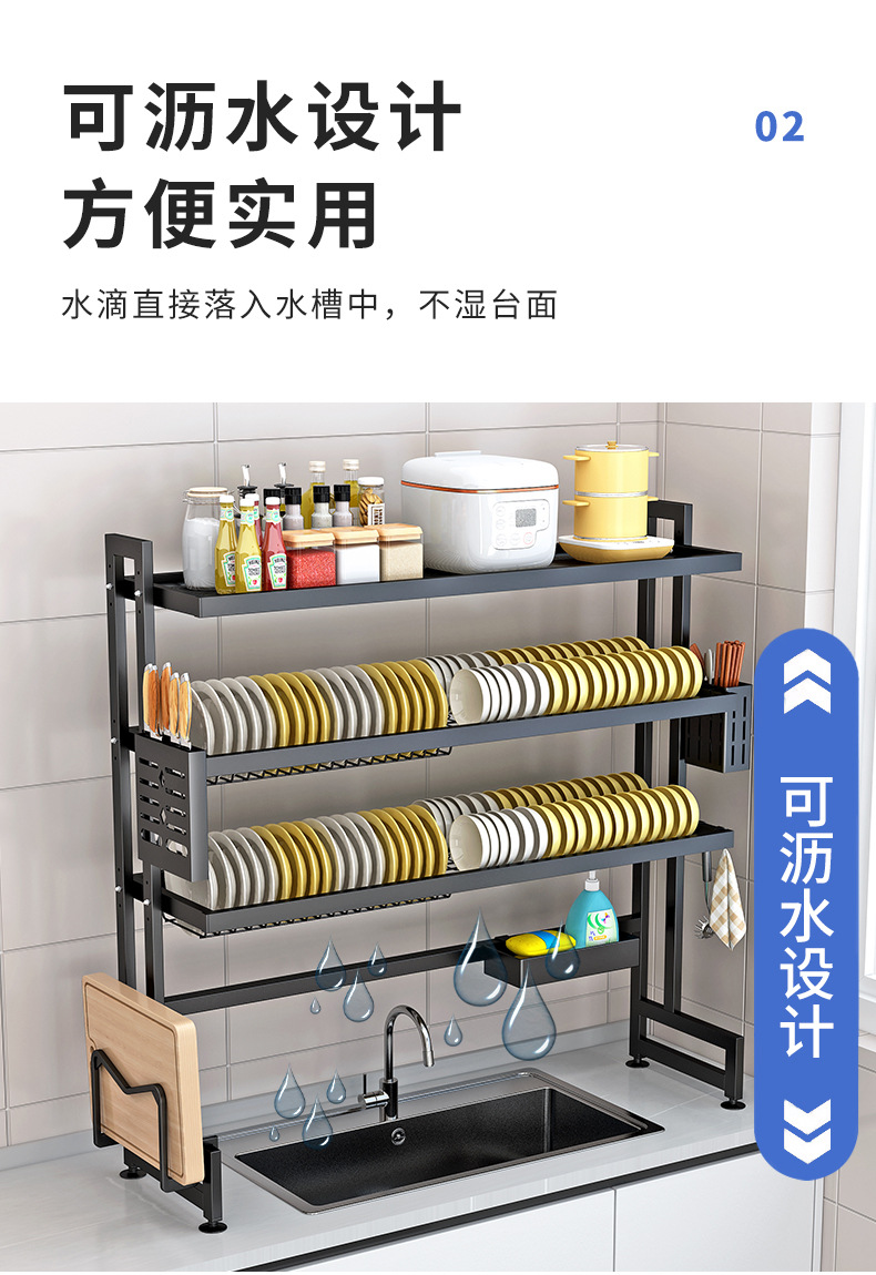 厨房可调节置物架水槽沥水架多层碗碟收纳架台面多功能水池放碗架