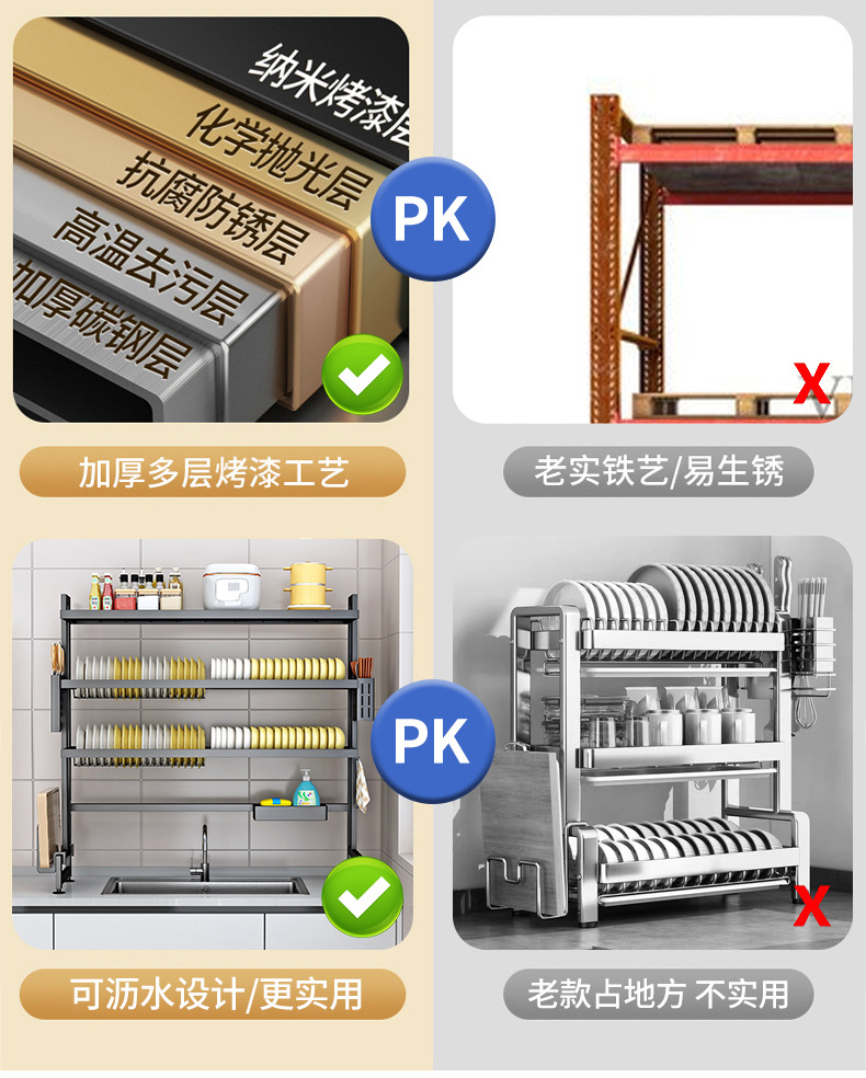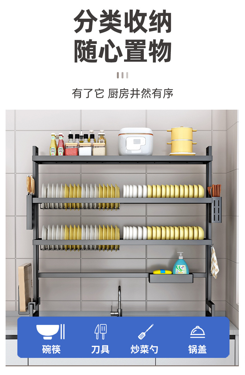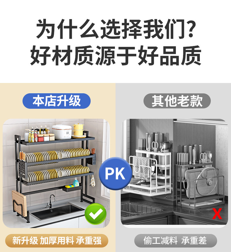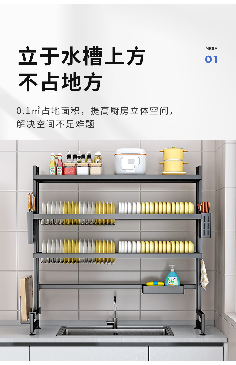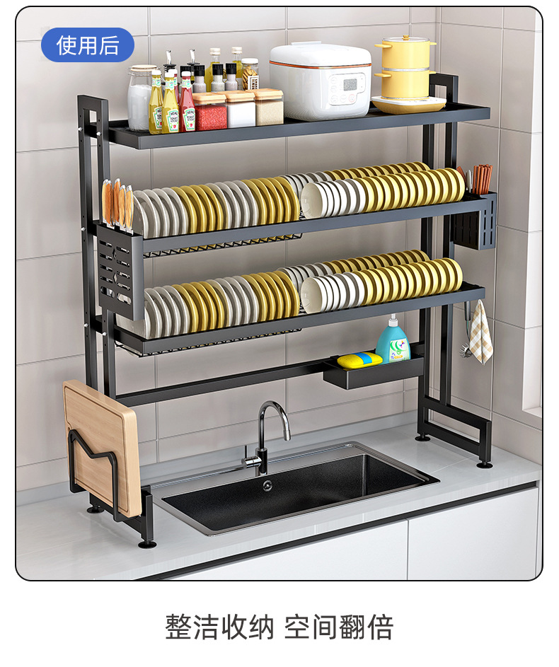 厨房可调节置物架水槽沥水架多层碗碟收纳架台面多功能水池放碗架