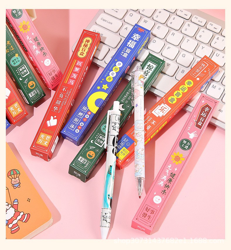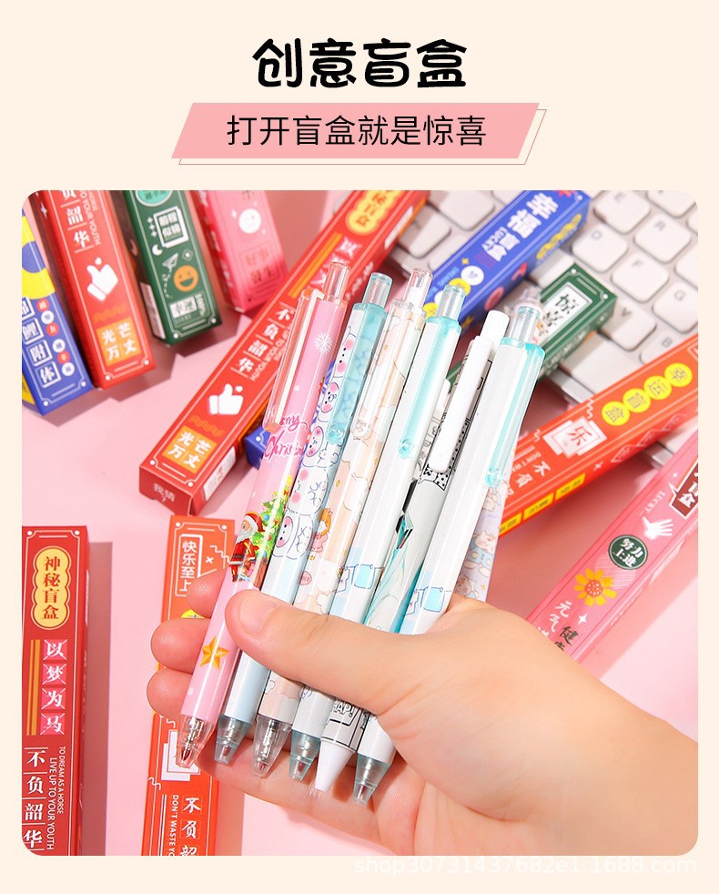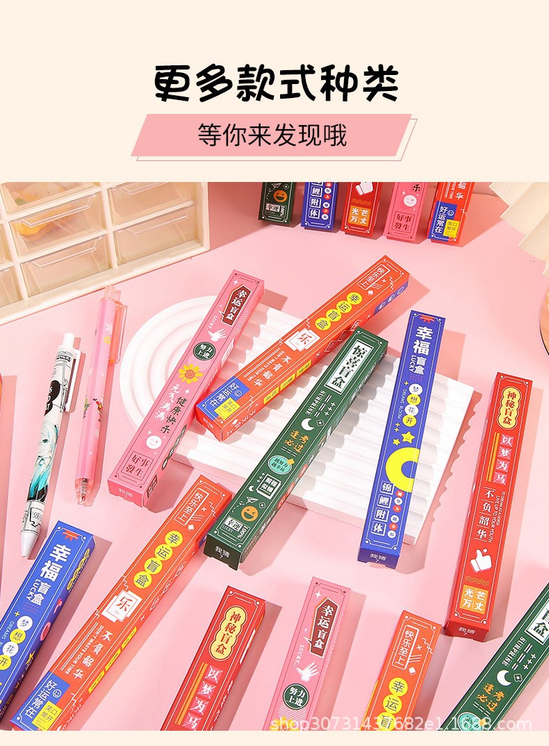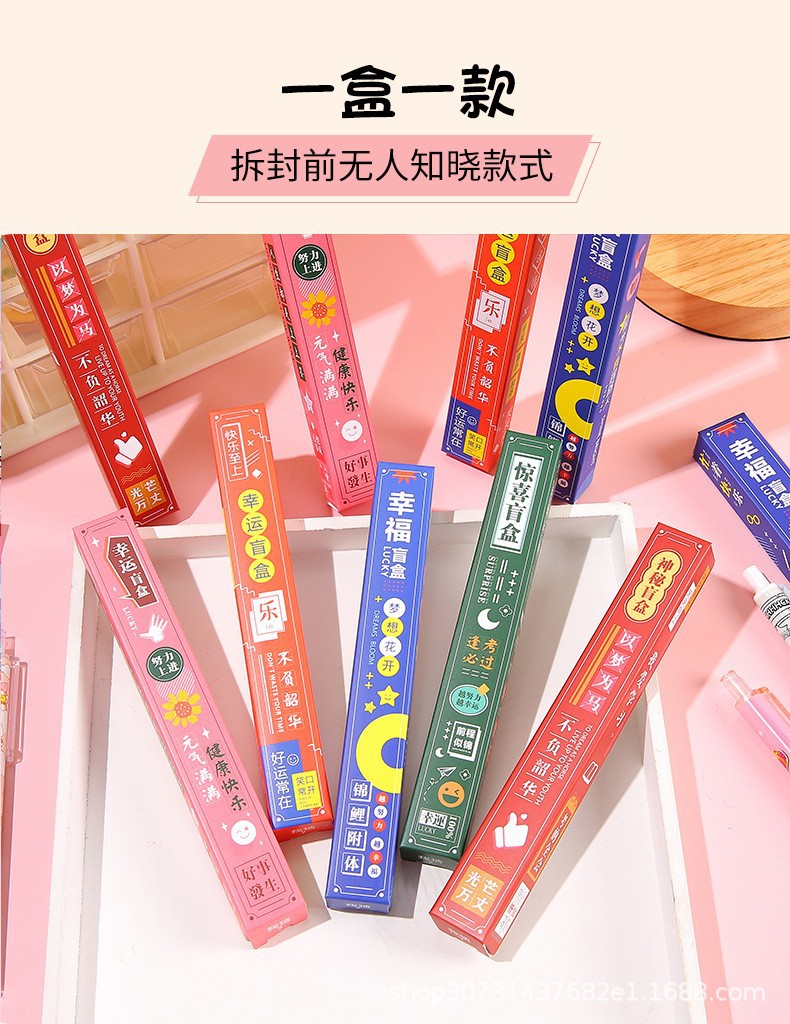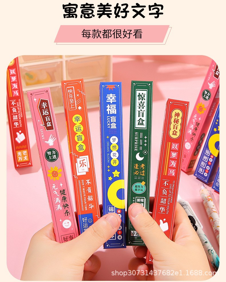 励志文字中性笔创意惊喜盲盒按动笔盲盒儿童可爱惊喜盒小学生奖品