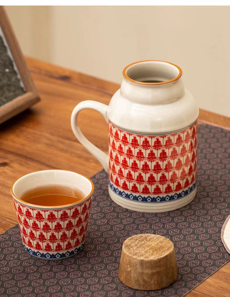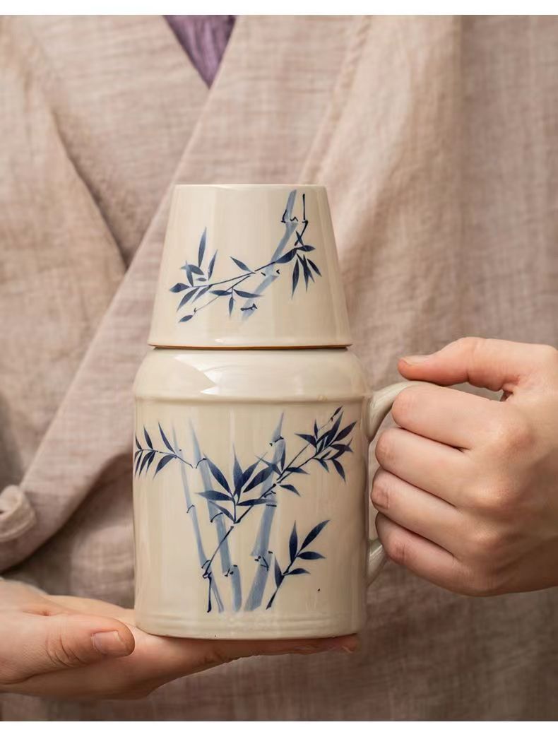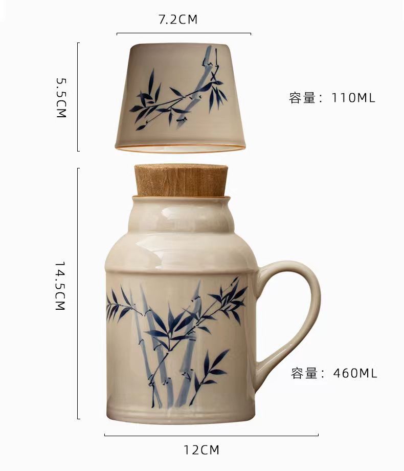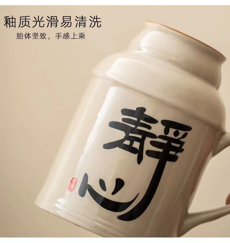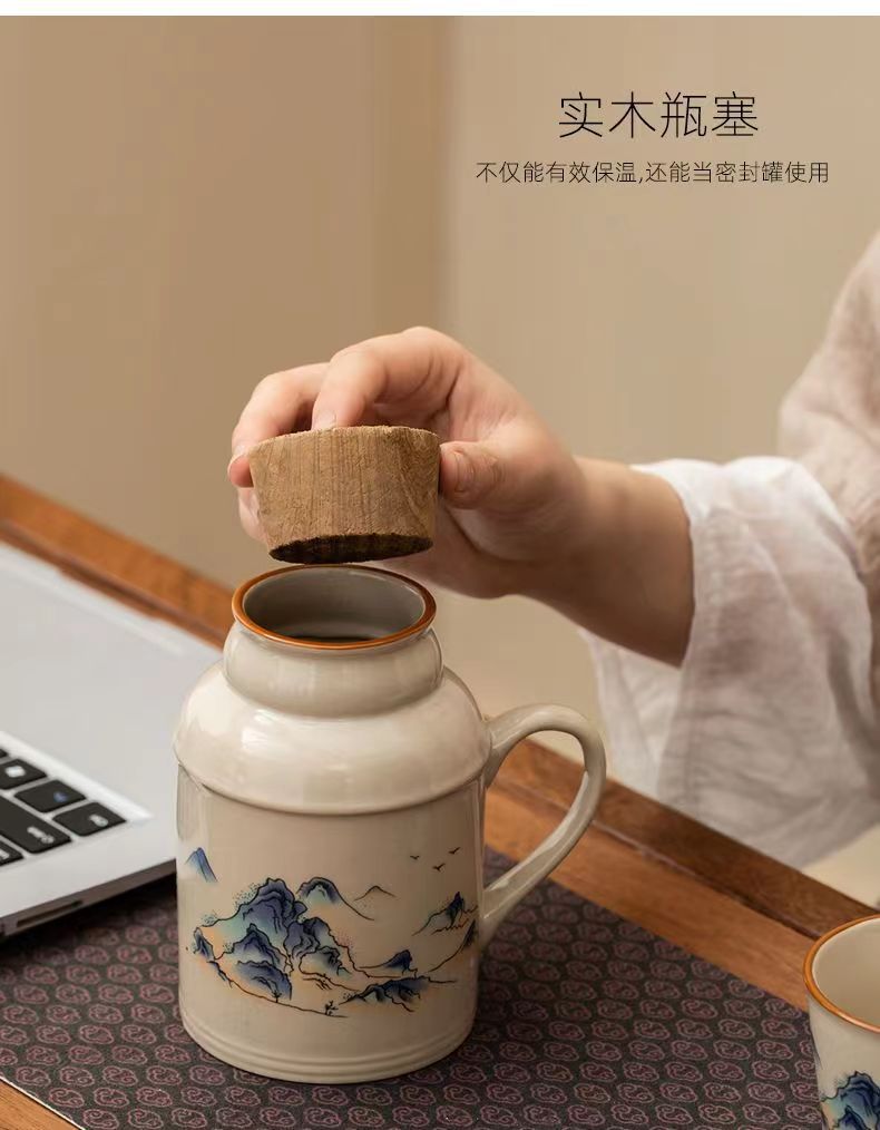汝窑小暖壶 闷茶壶带茶杯陶瓷保温壶大容量马克杯带盖中式办公杯