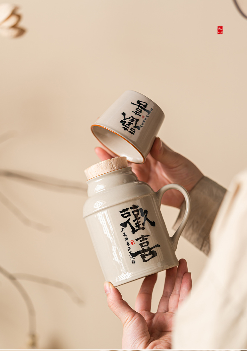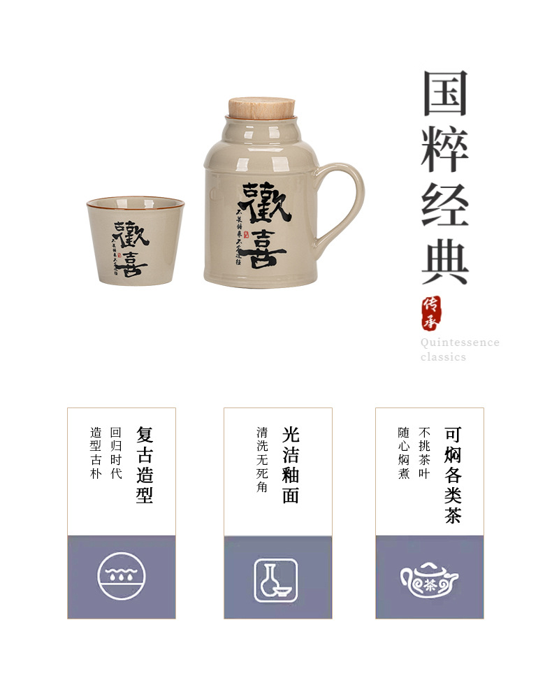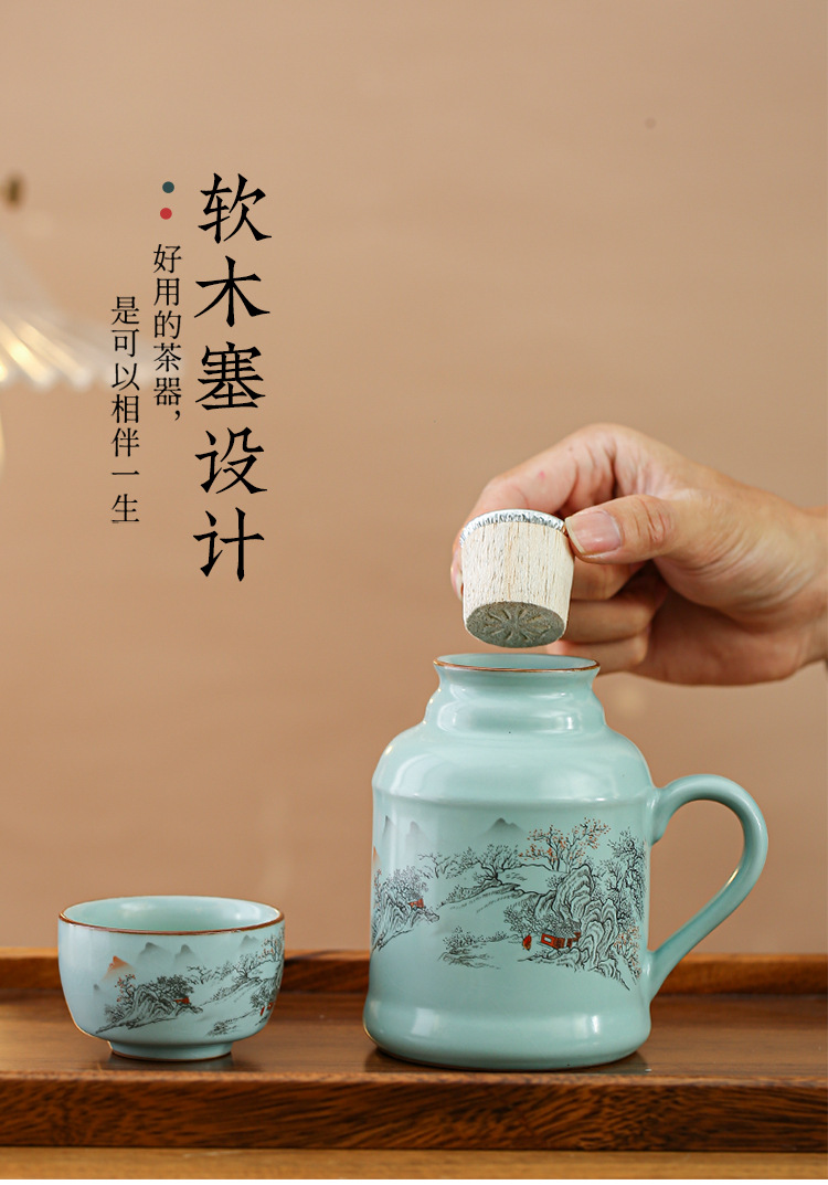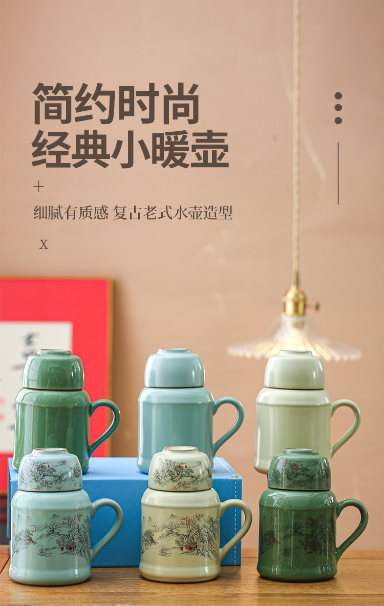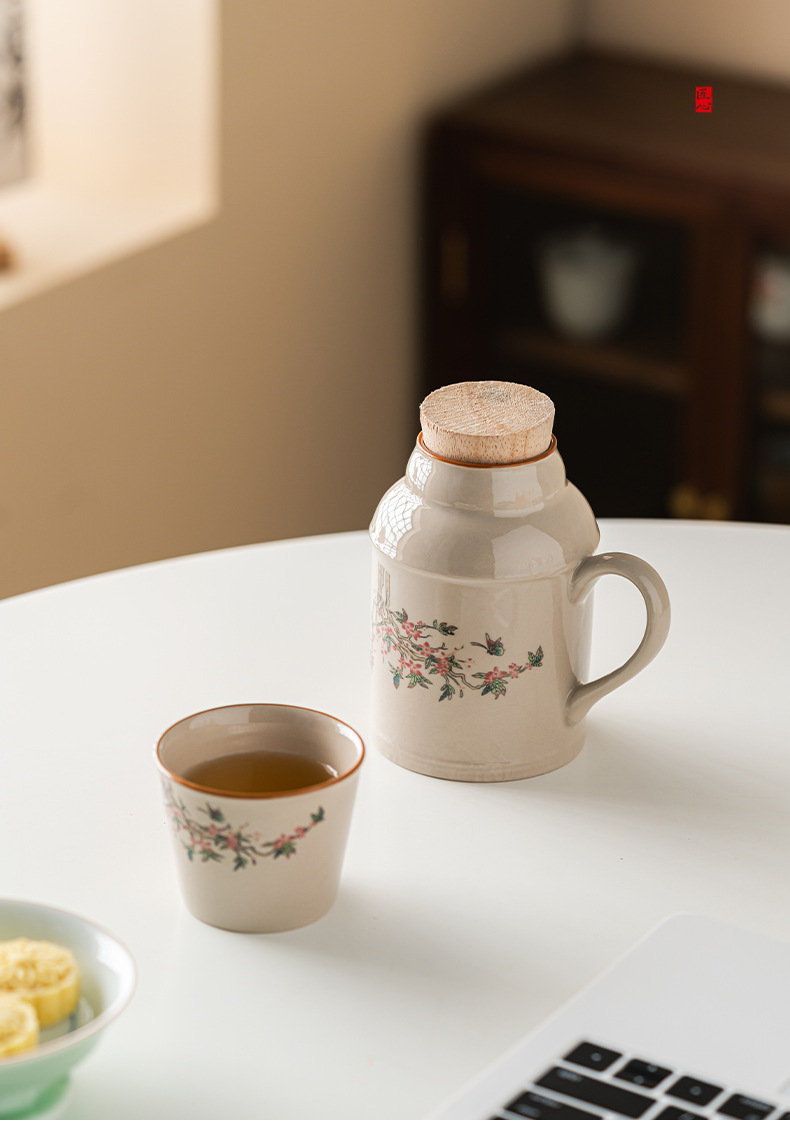 仿古小暖壶陶瓷水壶创意焖茶壶木塞大容量泡茶器茶杯礼品定制logo