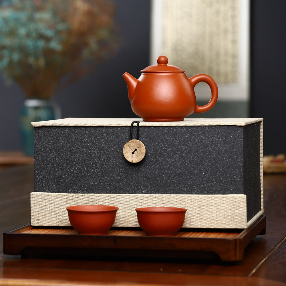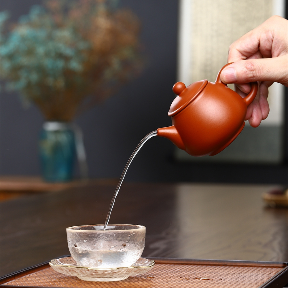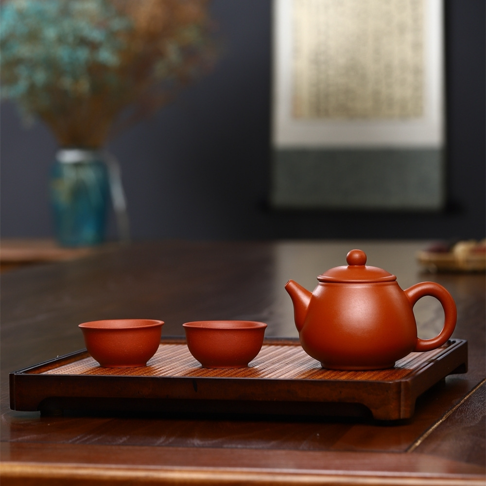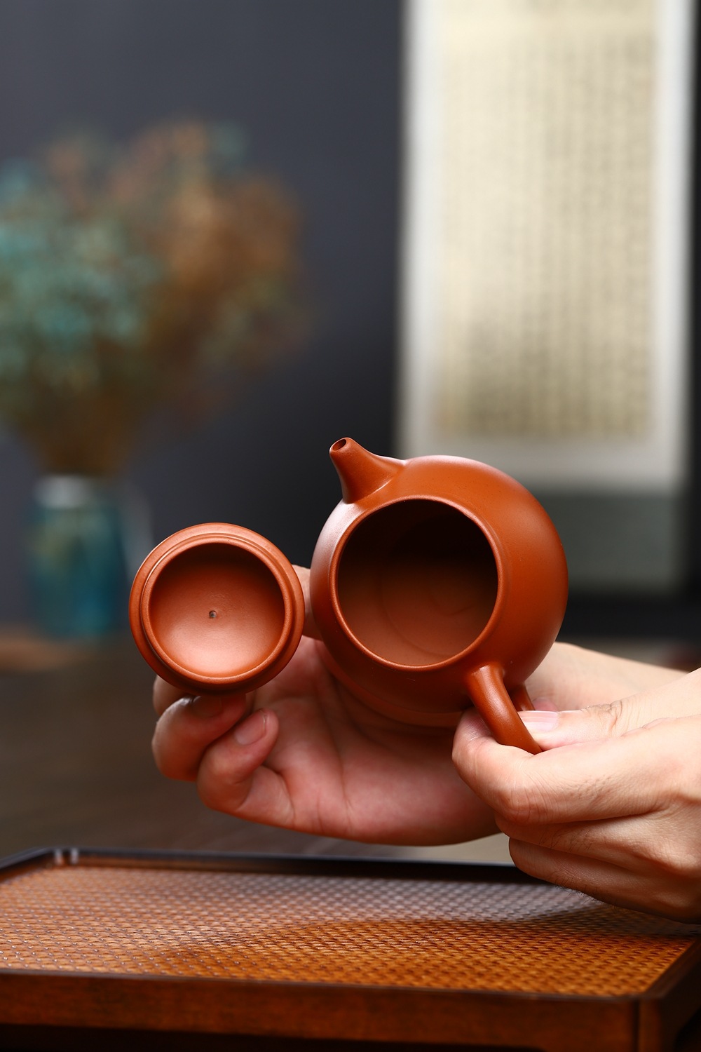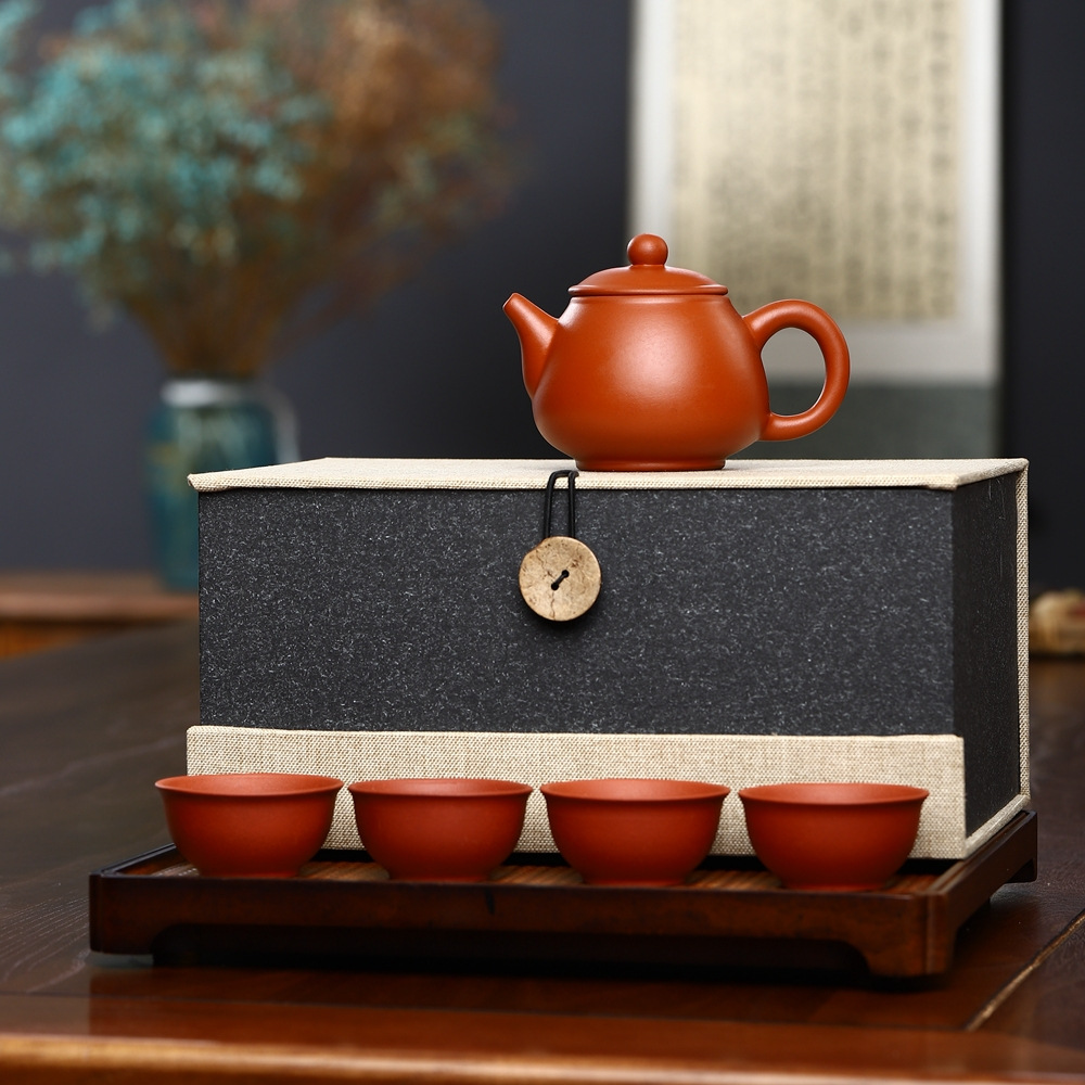 宜兴紫砂壶批发红泥高石瓢壶球孔家用泡茶壶整套茶具带茶杯子
