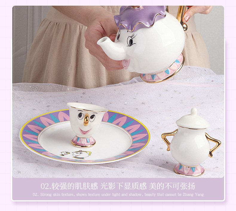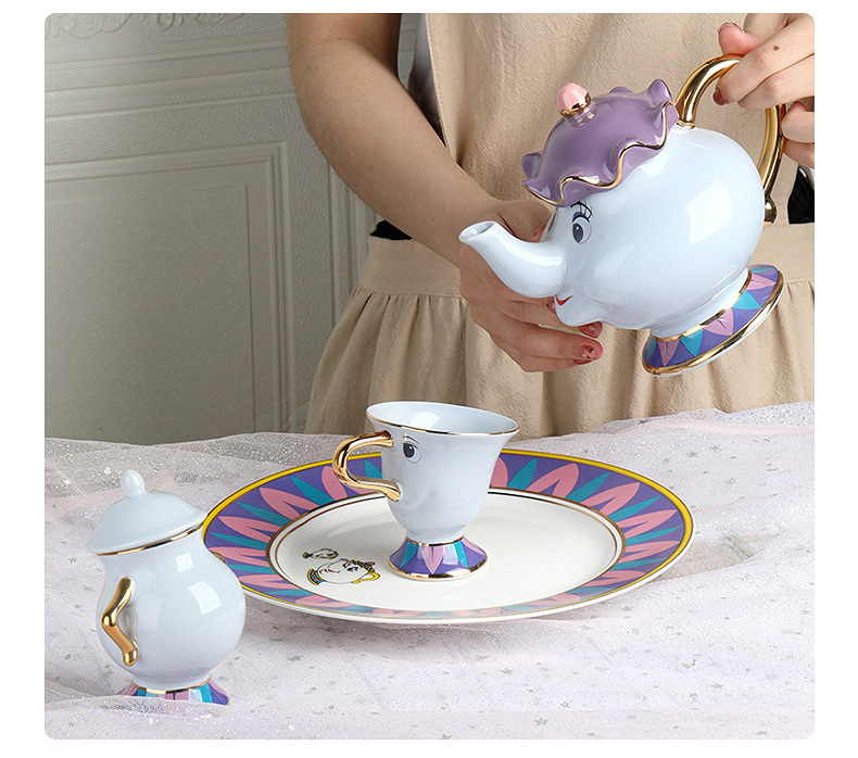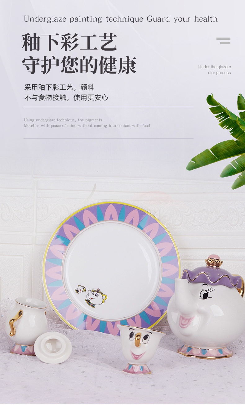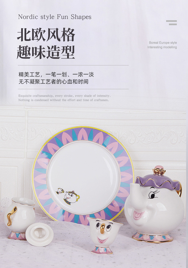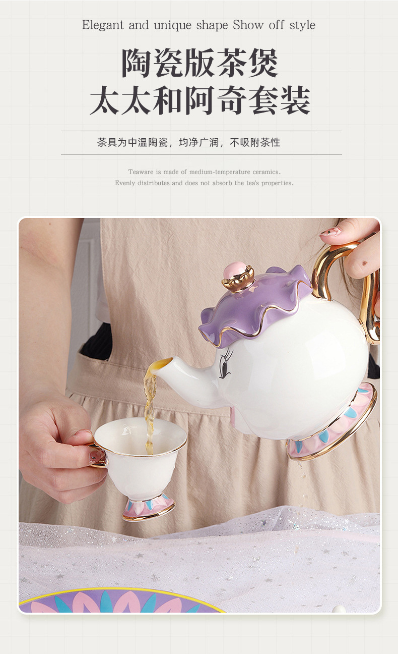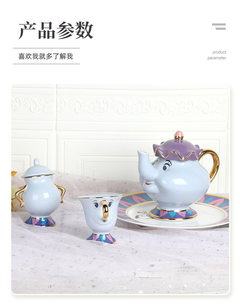 陶瓷茶具欧式美女与野兽茶煲太太阿奇茶壶套装大容量马克杯咖啡杯
