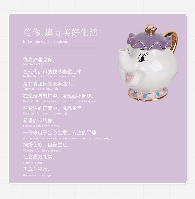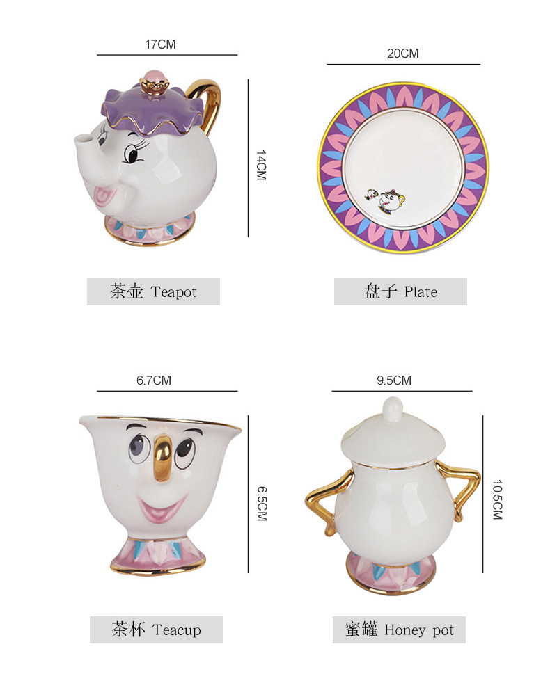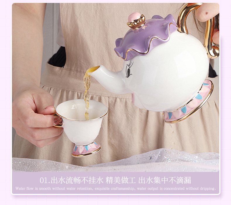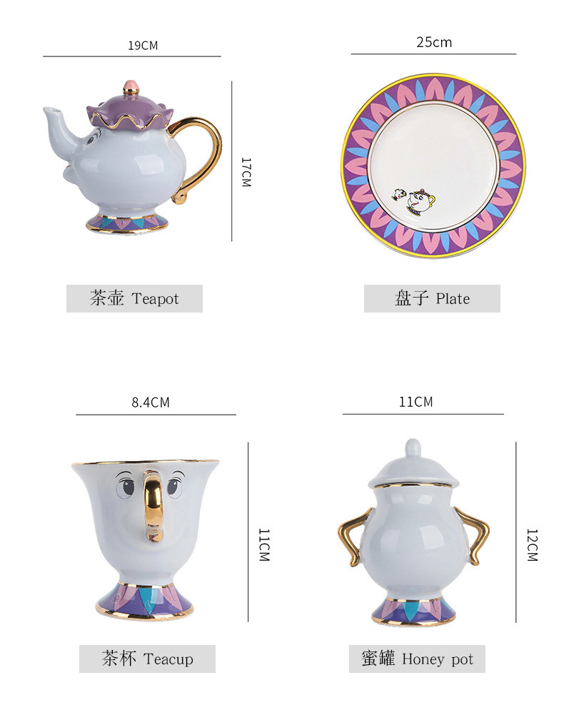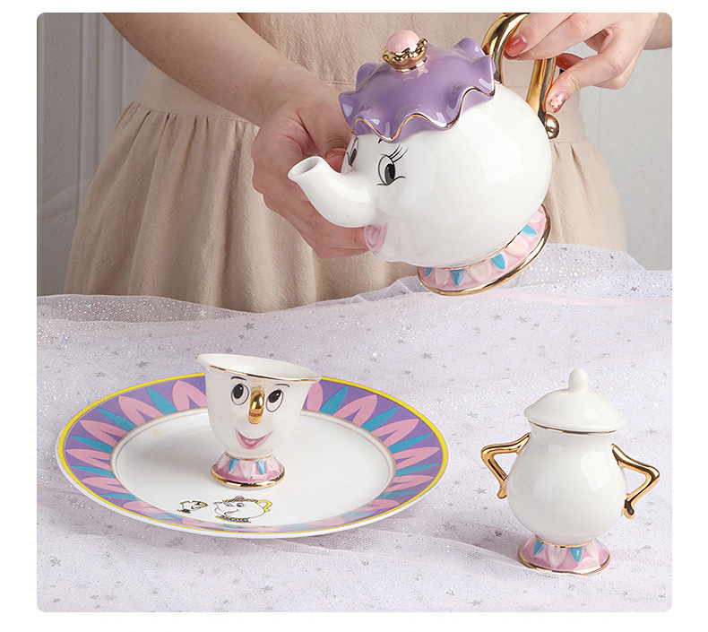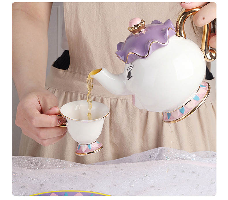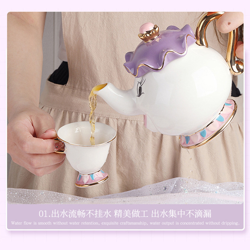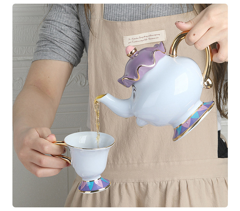 陶瓷茶具欧式美女与野兽茶煲太太阿奇茶壶套装大容量马克杯咖啡杯