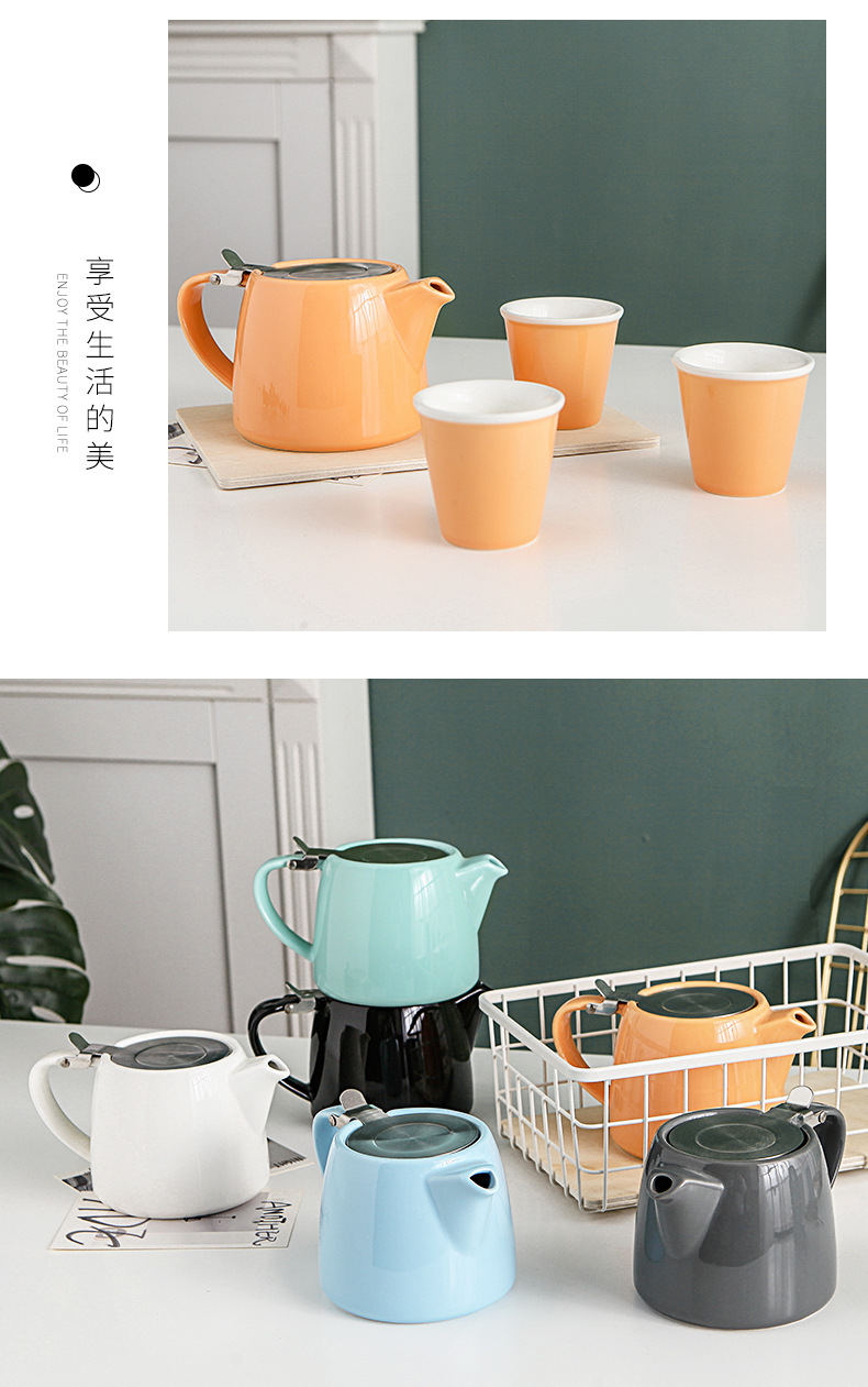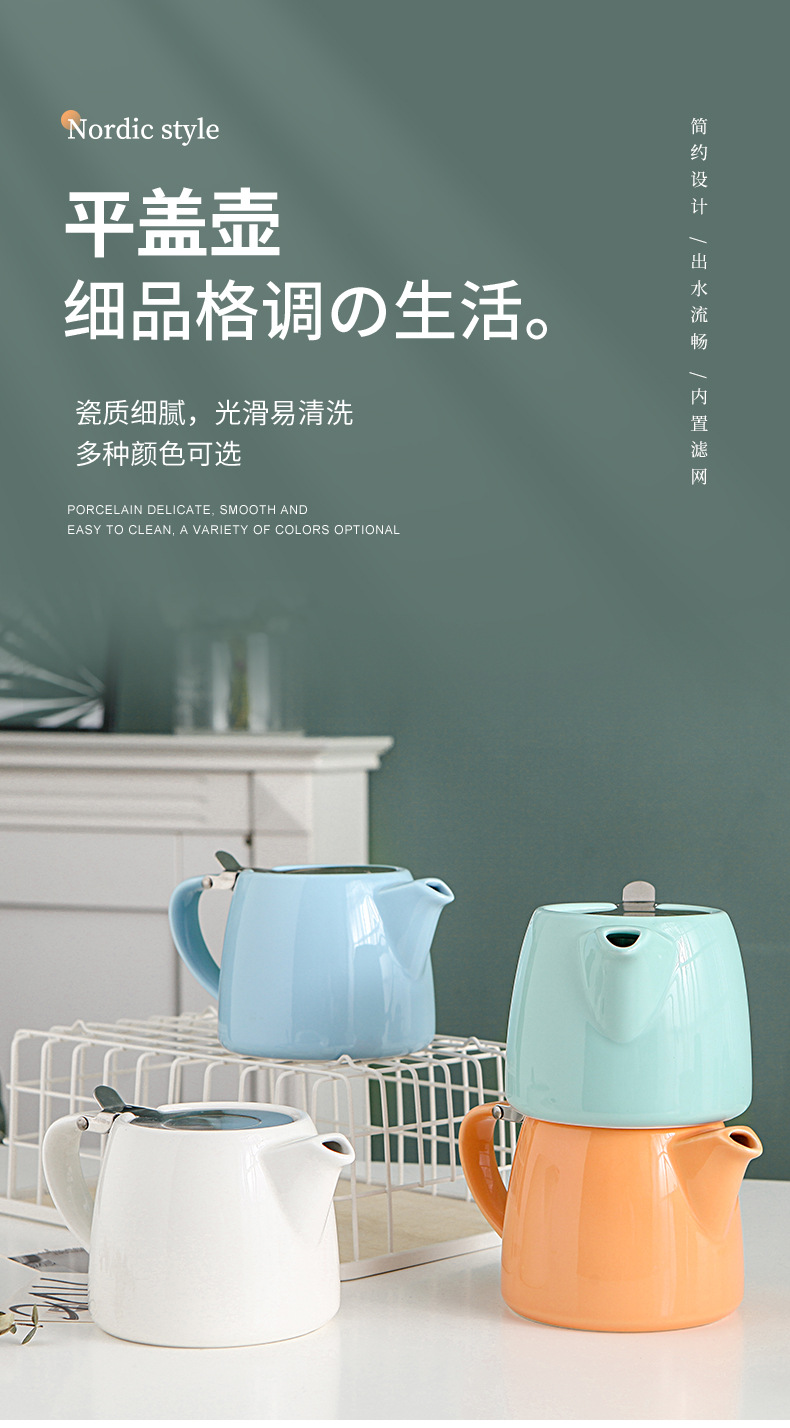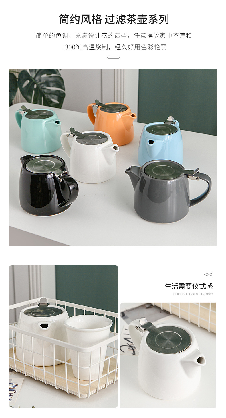 创意日式陶瓷茶壶过滤带滤网盖家用酒店手冲欧式咖啡壶简约花茶壶