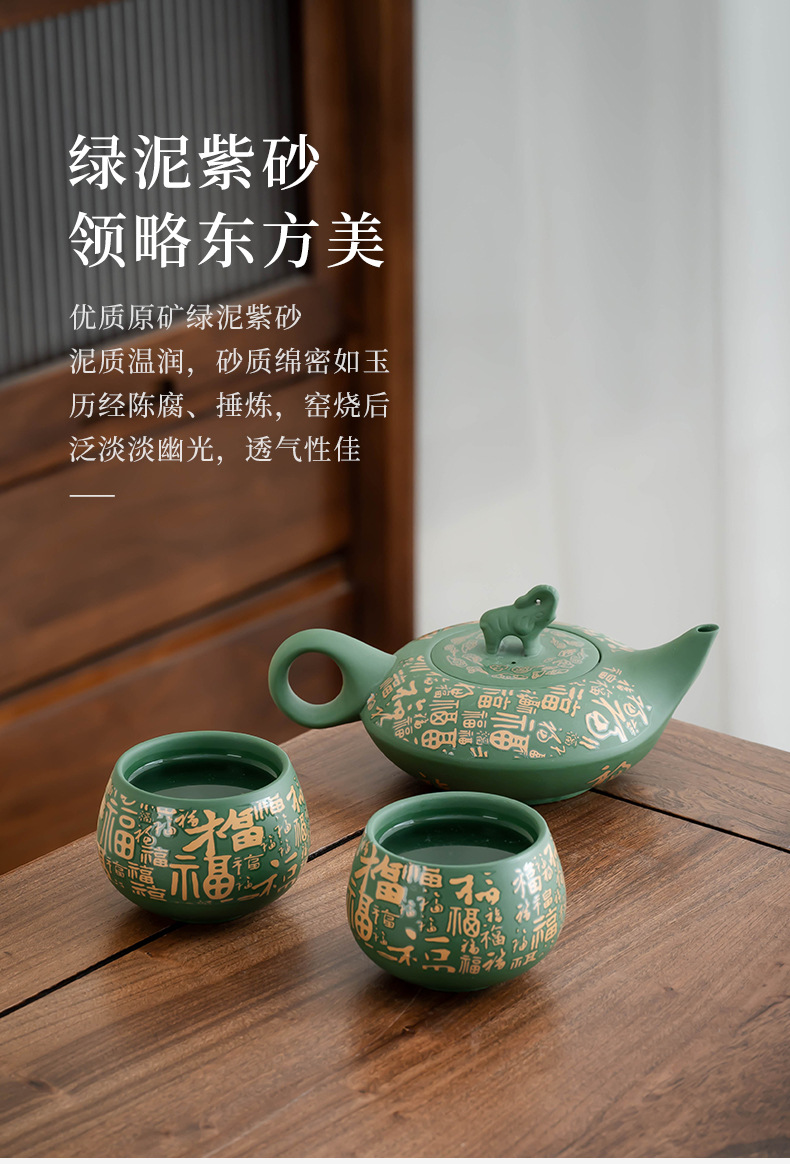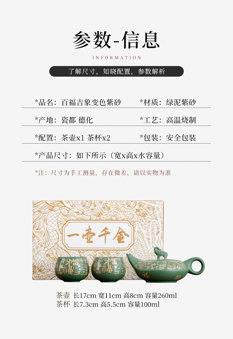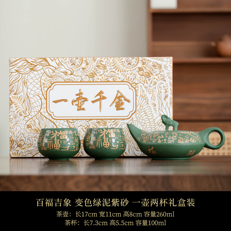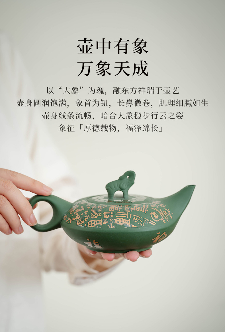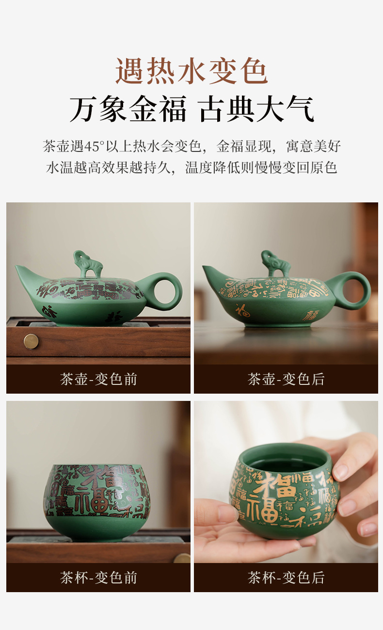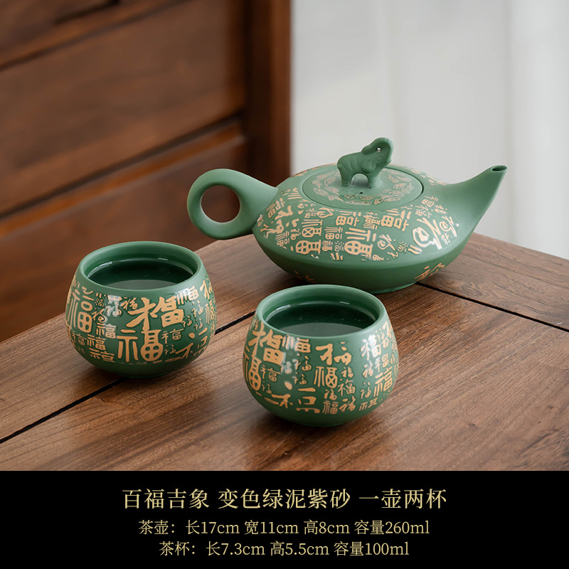 遇热变色百福吉象壶原矿绿泥紫砂壶高档凤鸣西施壶家用功夫茶具