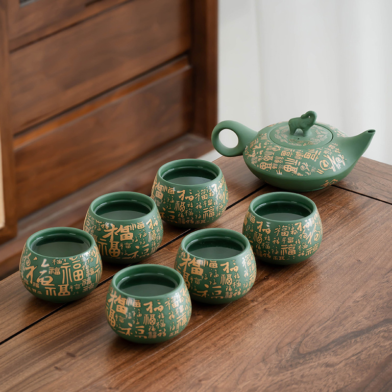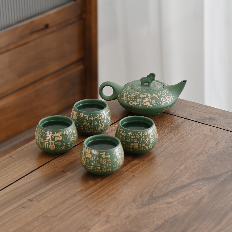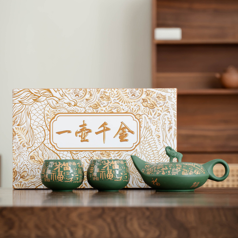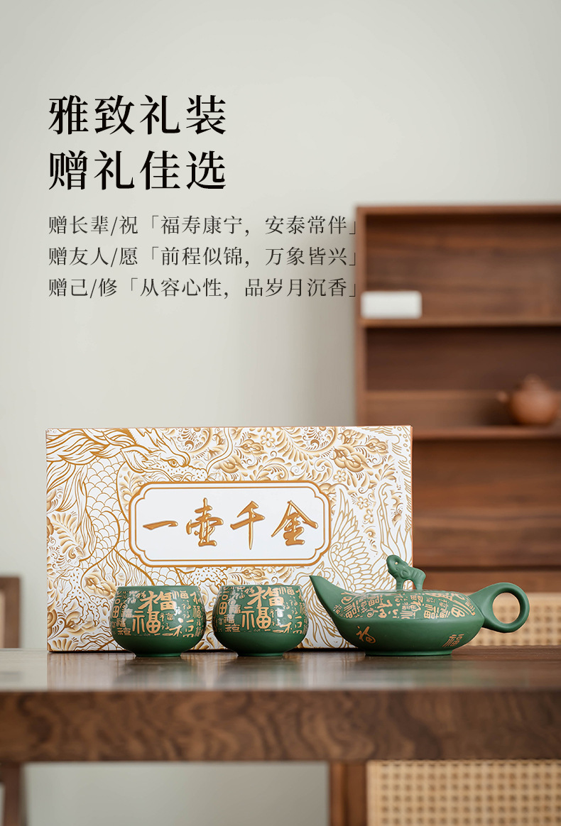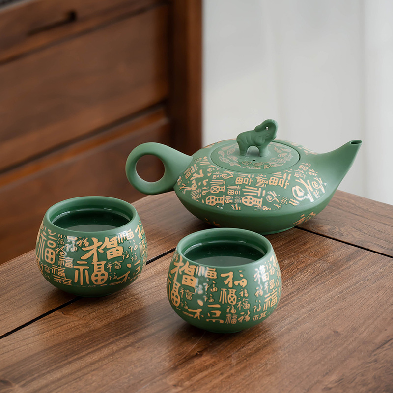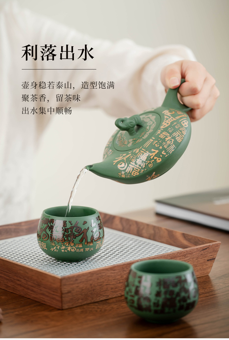 遇热变色百福吉象壶原矿绿泥紫砂壶高档凤鸣西施壶家用功夫茶具