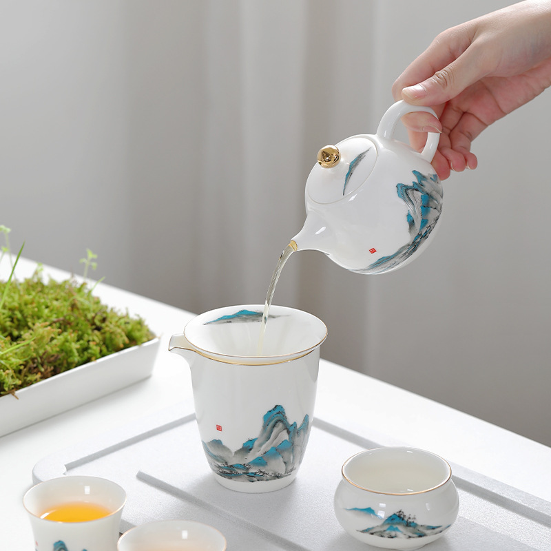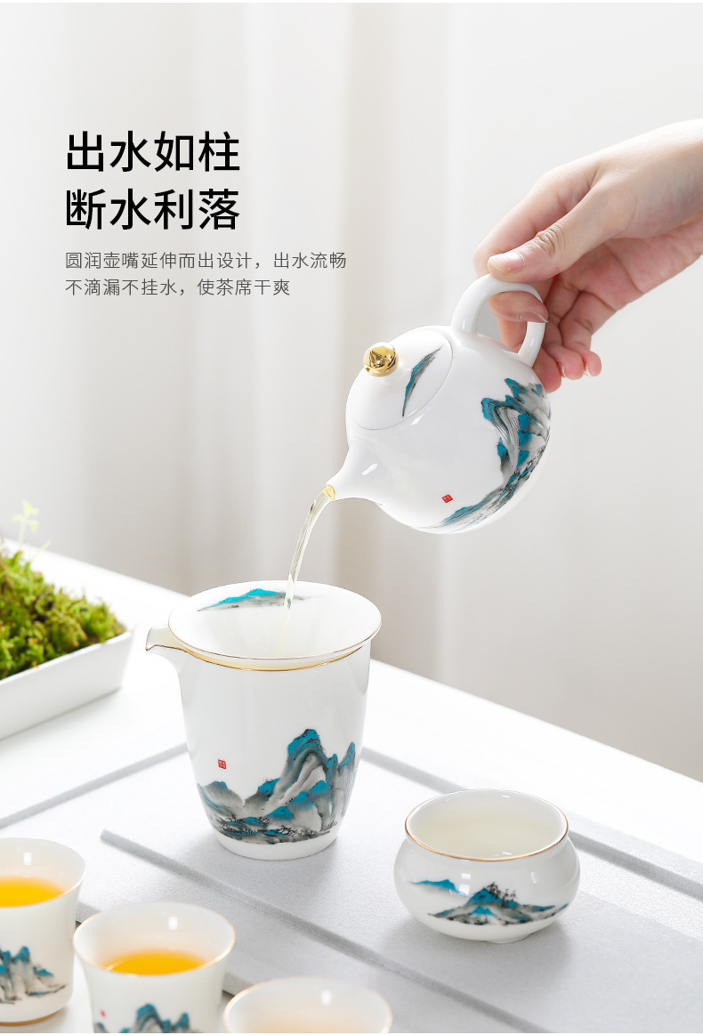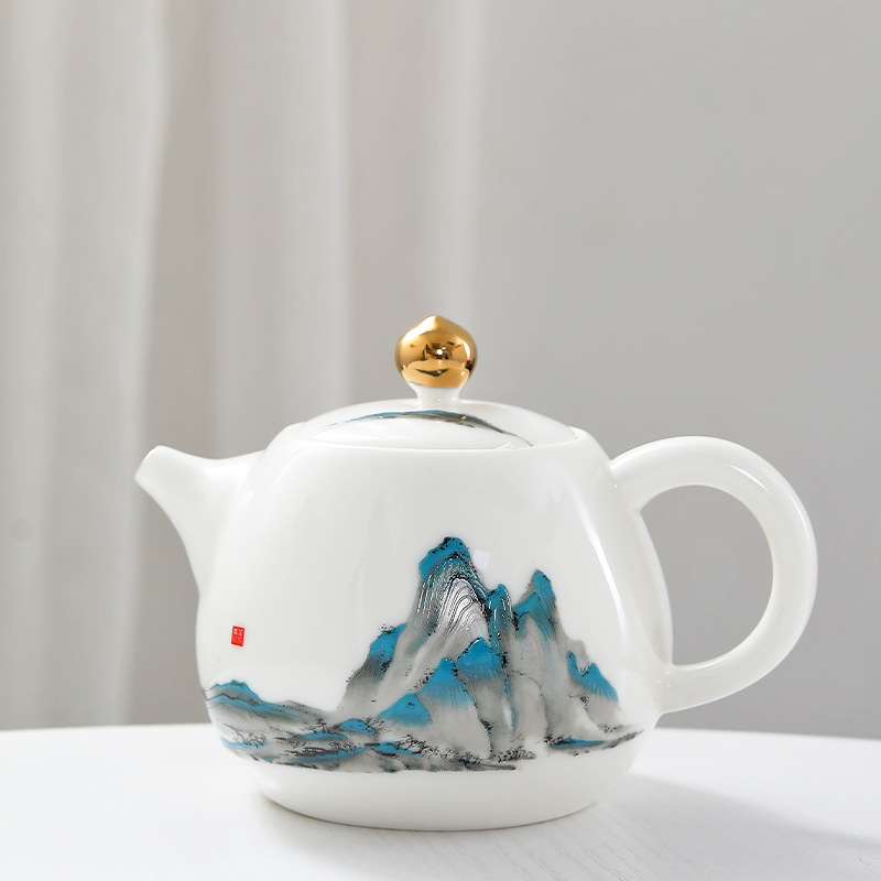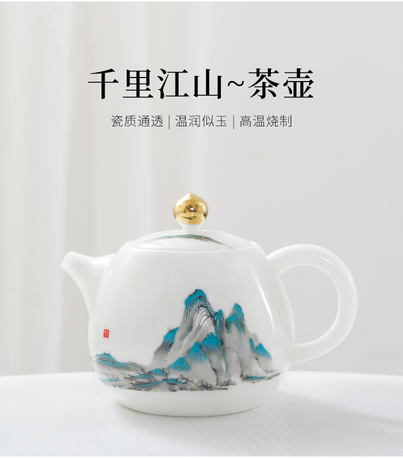 轻奢描金羊脂玉白瓷茶壶中式西施壶单个家用泡茶送礼文创礼品定制