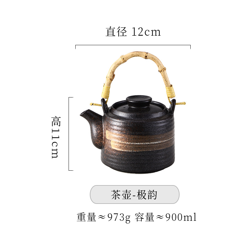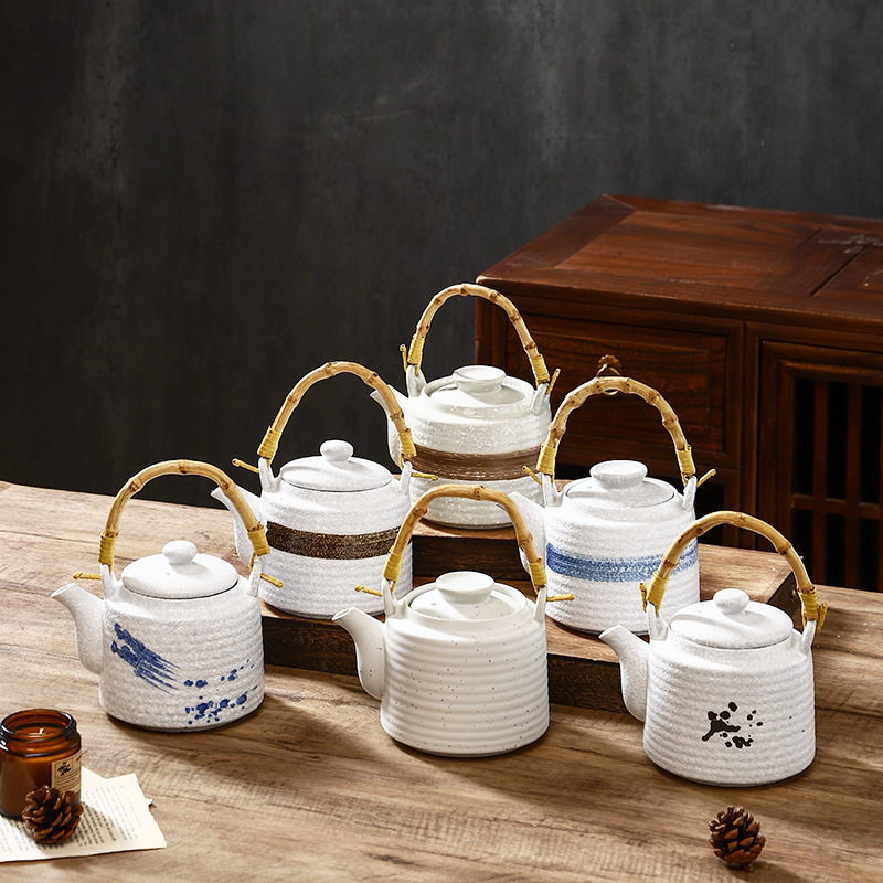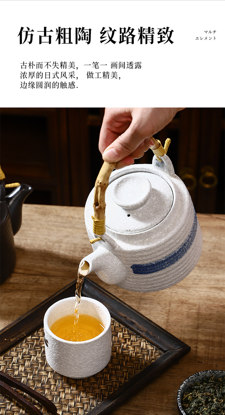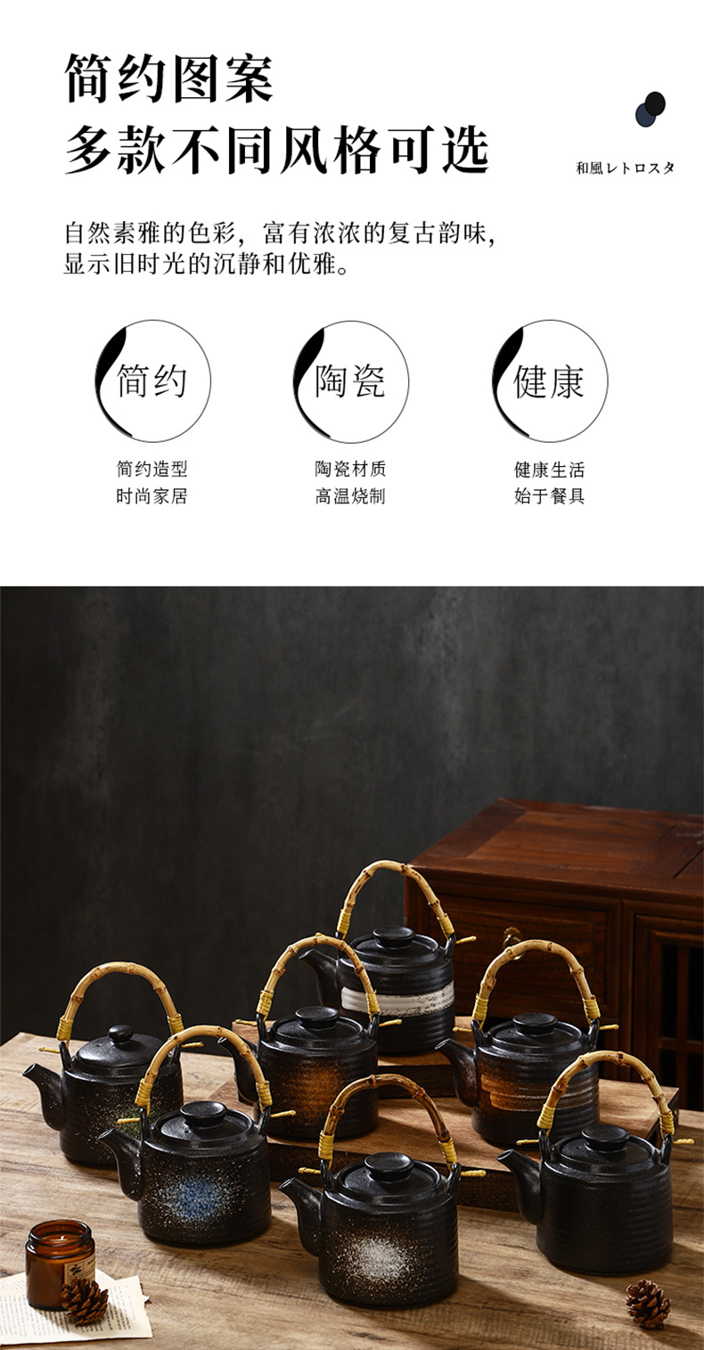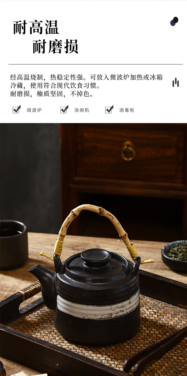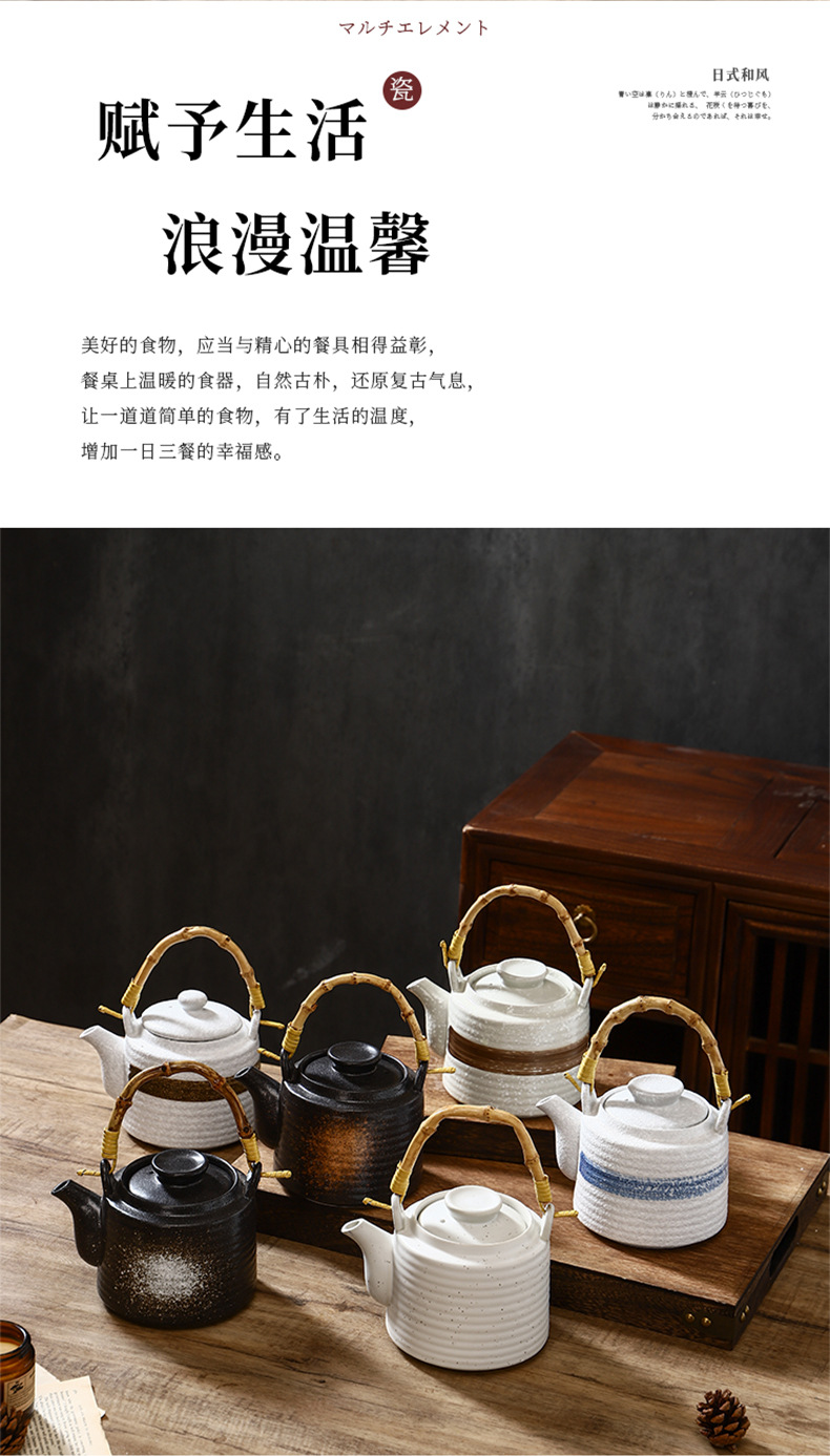 提梁壶日式复古陶瓷泡茶壶茶具家用套装水杯寿司料理店商用茶壶