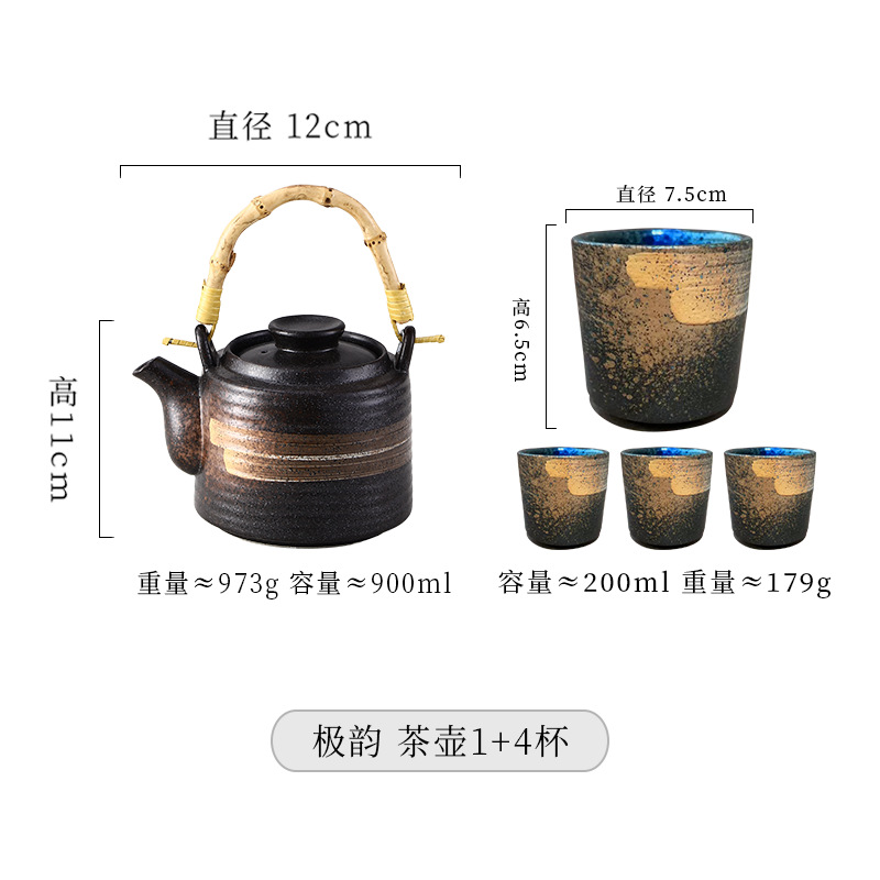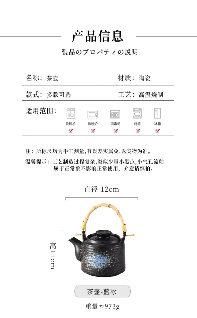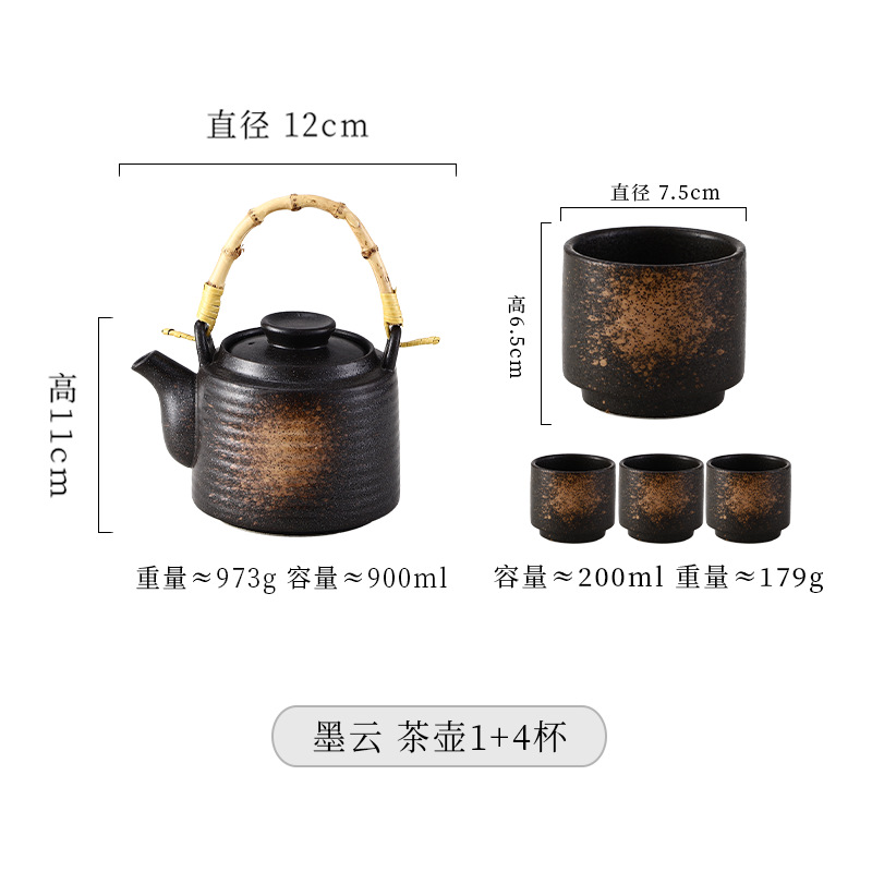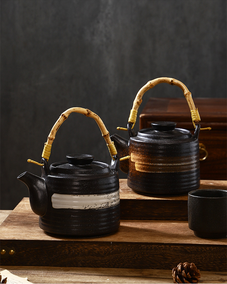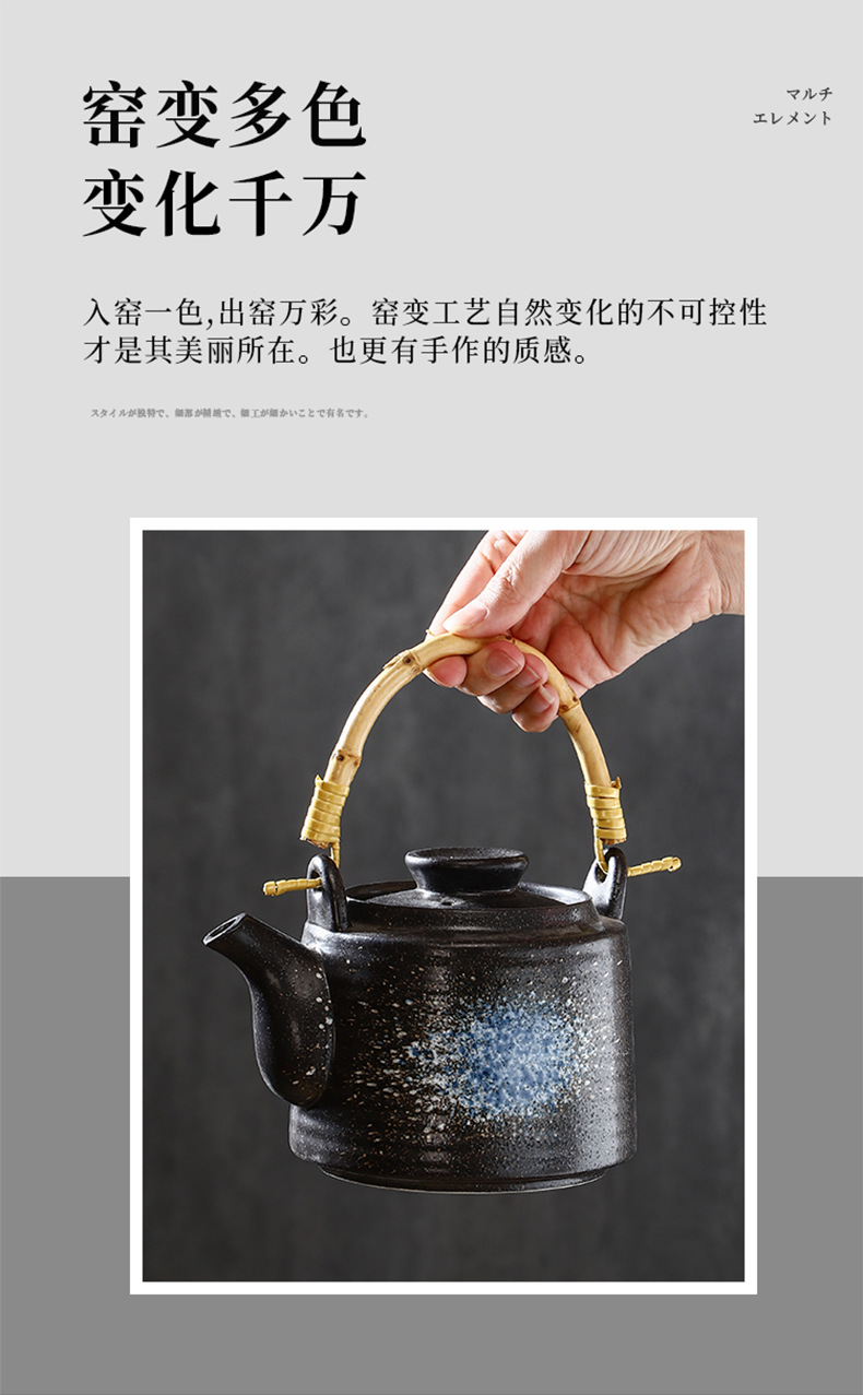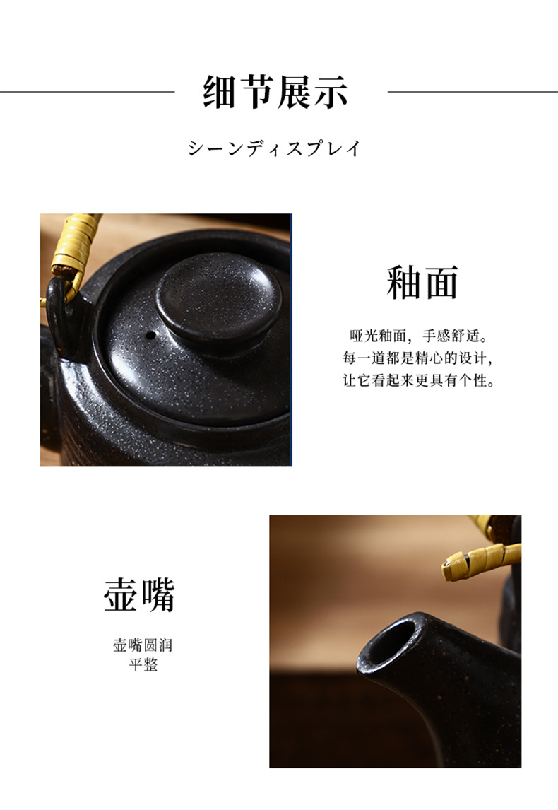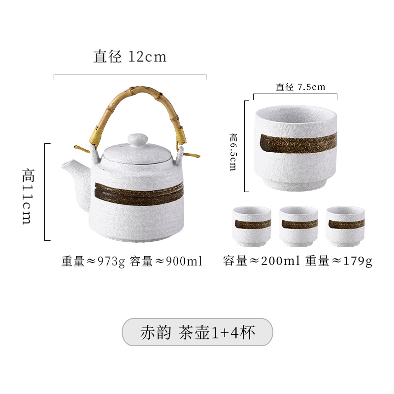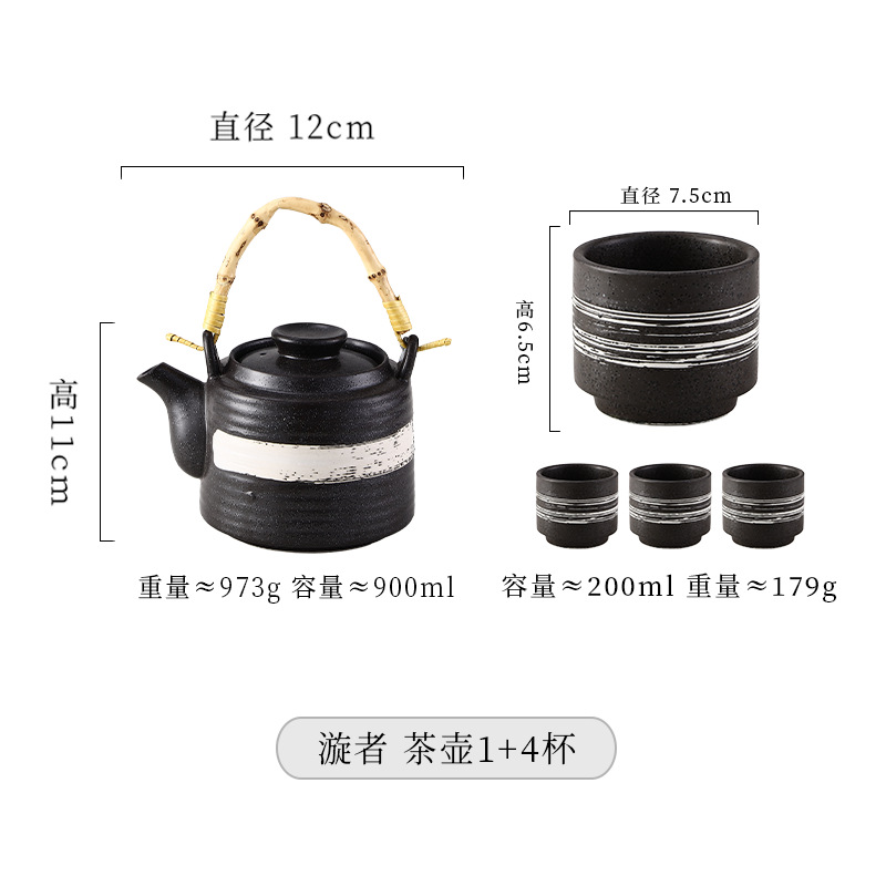 提梁壶日式复古陶瓷泡茶壶茶具家用套装水杯寿司料理店商用茶壶