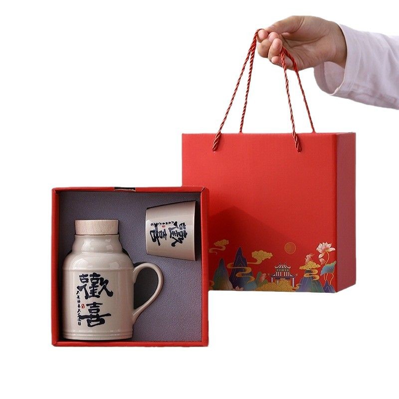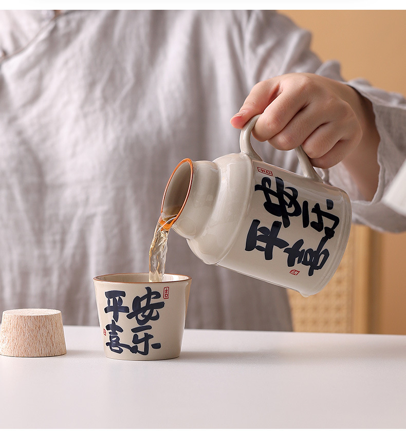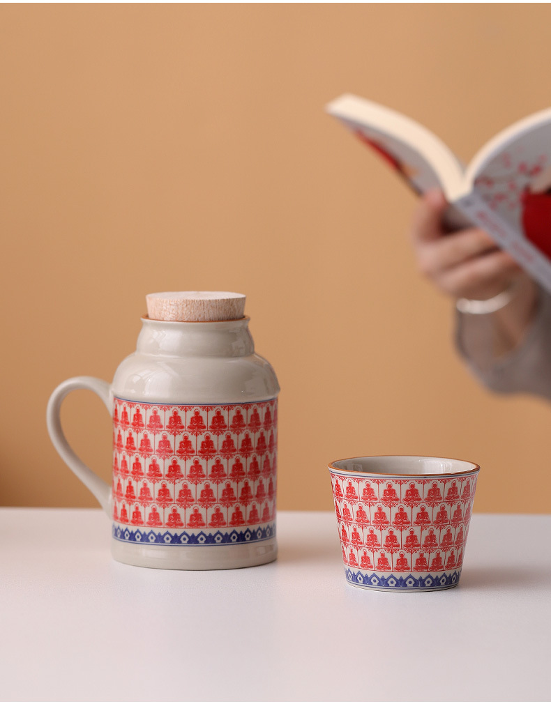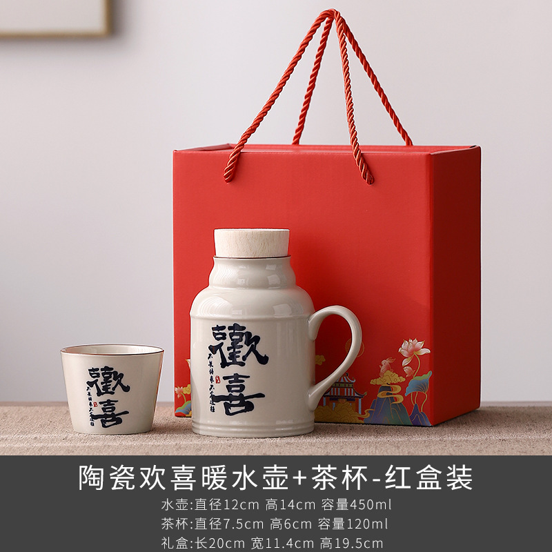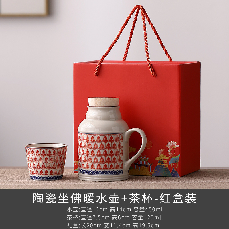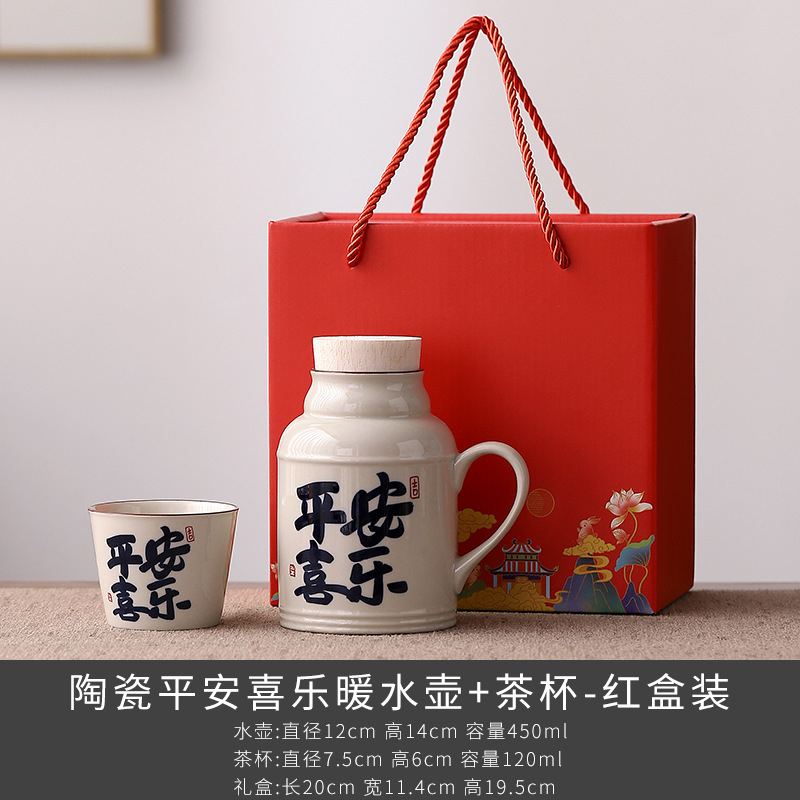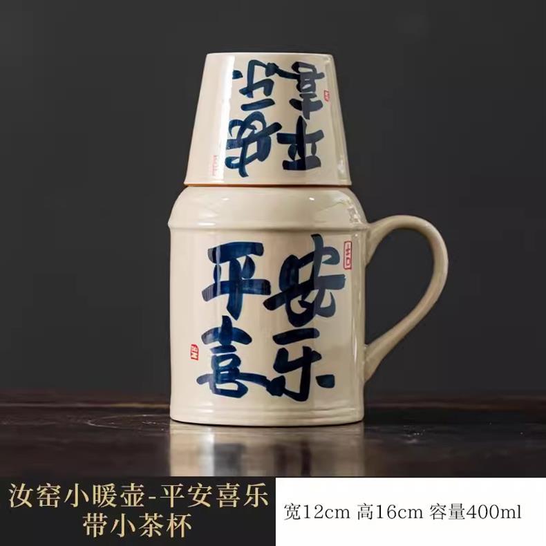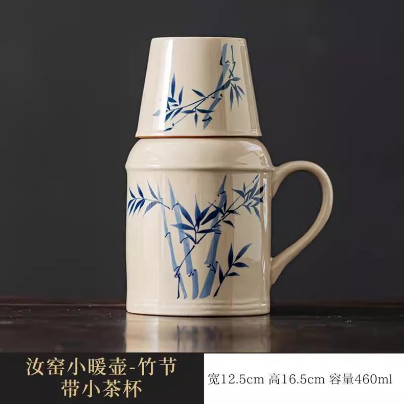 汝窑万花小暖壶家用带盖陶瓷马克杯办公室泡茶壶养生壶茶杯礼盒装