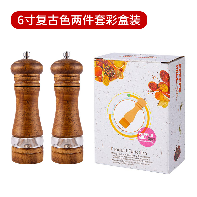 6寸手动胡椒研磨器 橡胶木亚克力陶瓷芯现磨胡椒粉调味研磨瓶