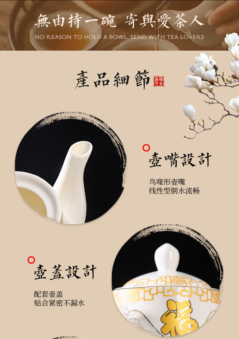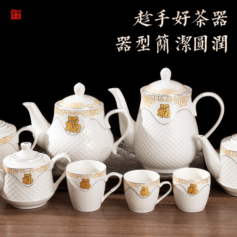 陶瓷茶壶单壶泡茶家用大号过滤冷水壶瓷凉开水壶待客套装批发