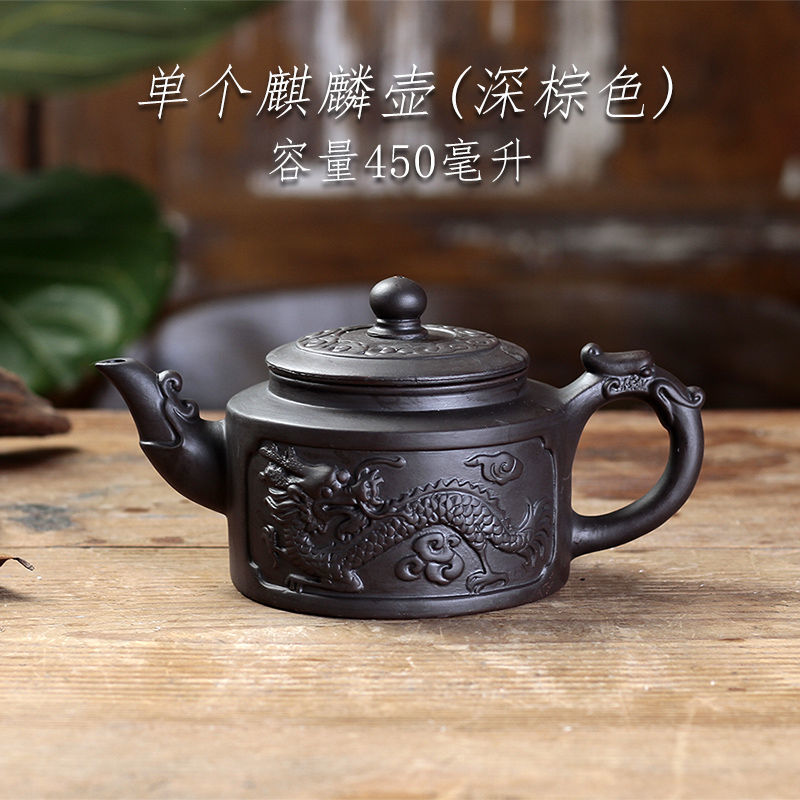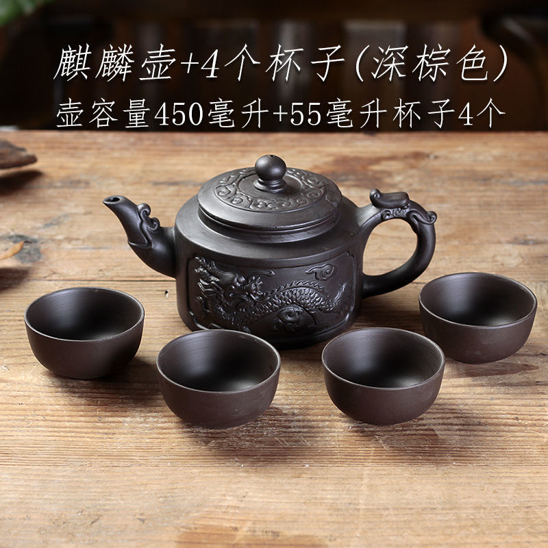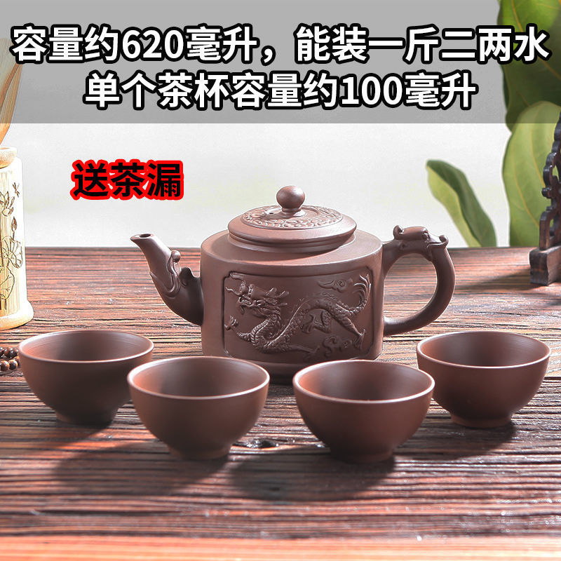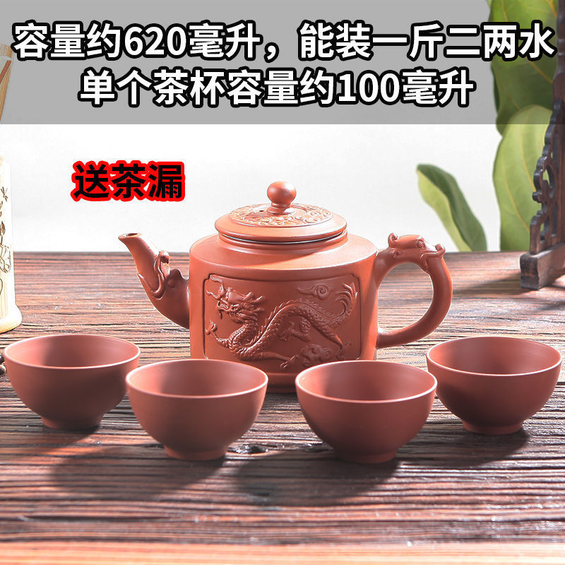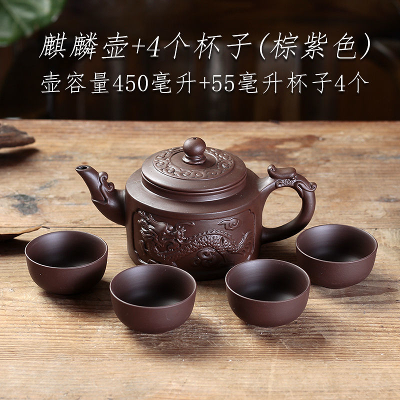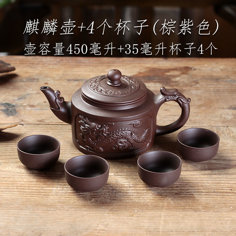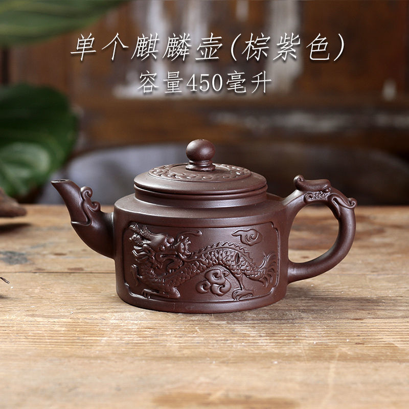 紫砂茶壶紫砂大容量大号紫砂壶家用功夫茶具杯套装宜兴朱泥麒麟壶