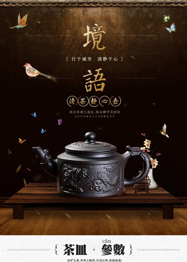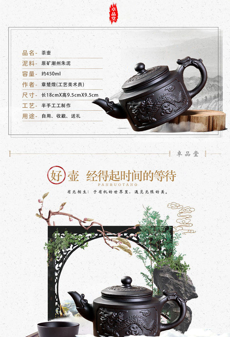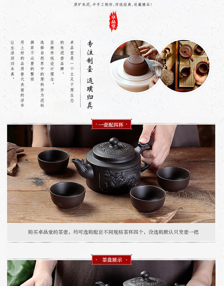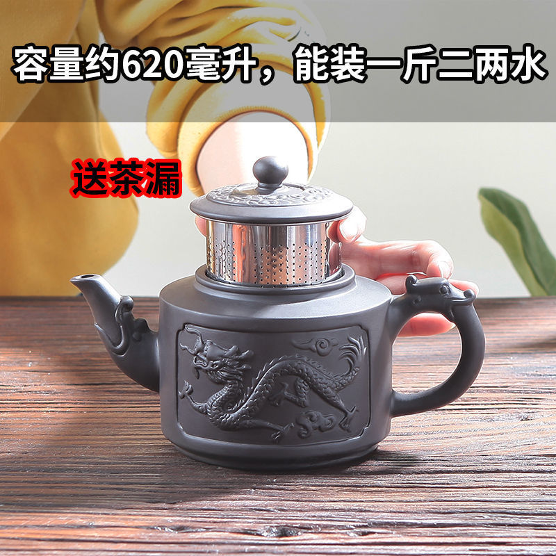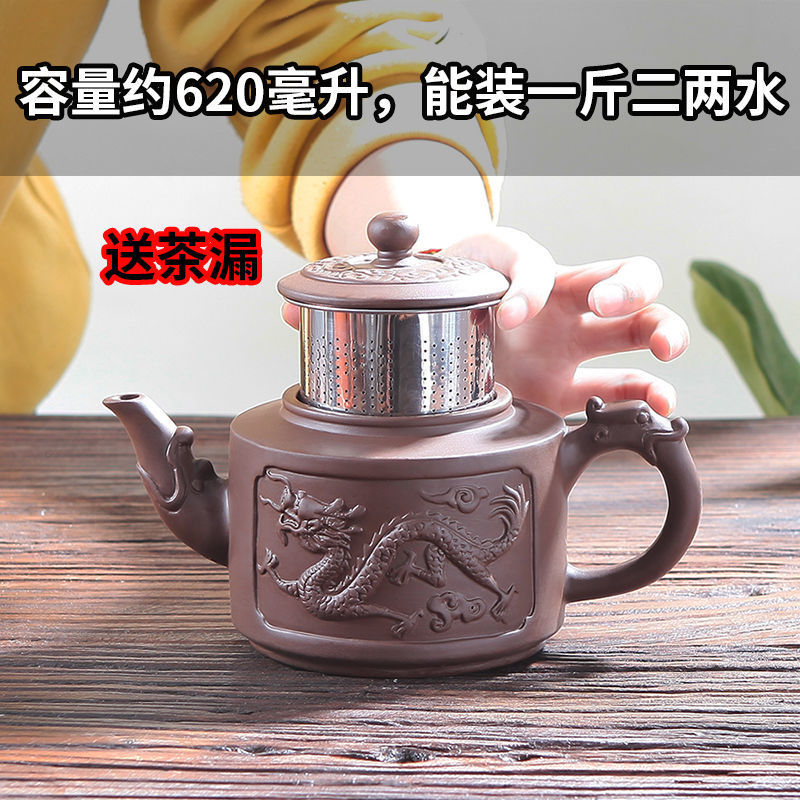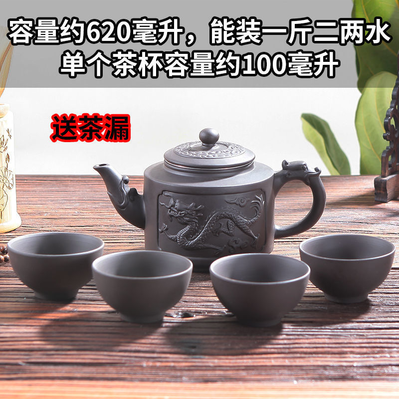 紫砂茶壶紫砂大容量大号紫砂壶家用功夫茶具杯套装宜兴朱泥麒麟壶